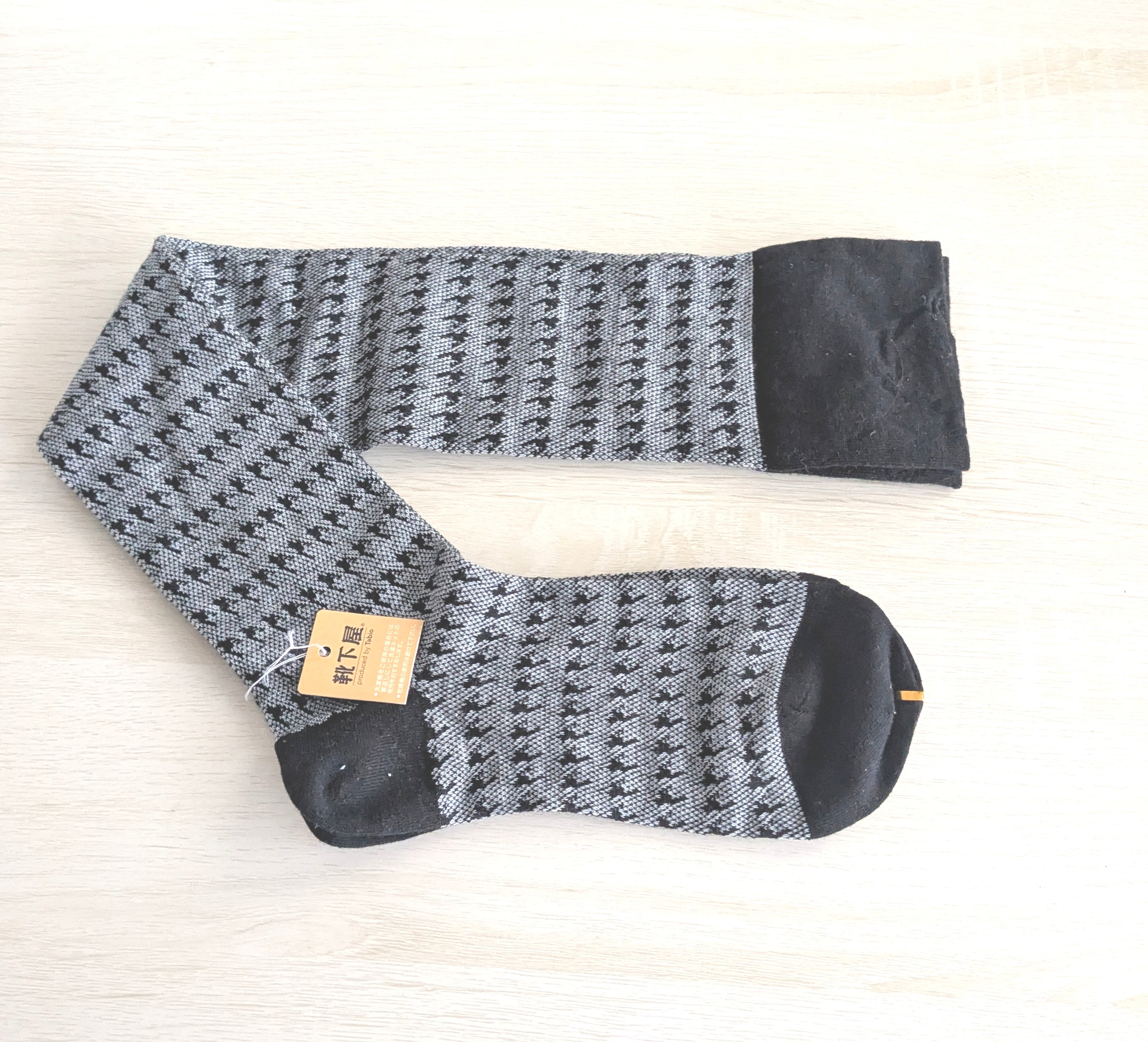 新品、未使用品 靴下屋 レディースニーハイソックス 千鳥格子 グレー&ブラック 22cm〜24cm