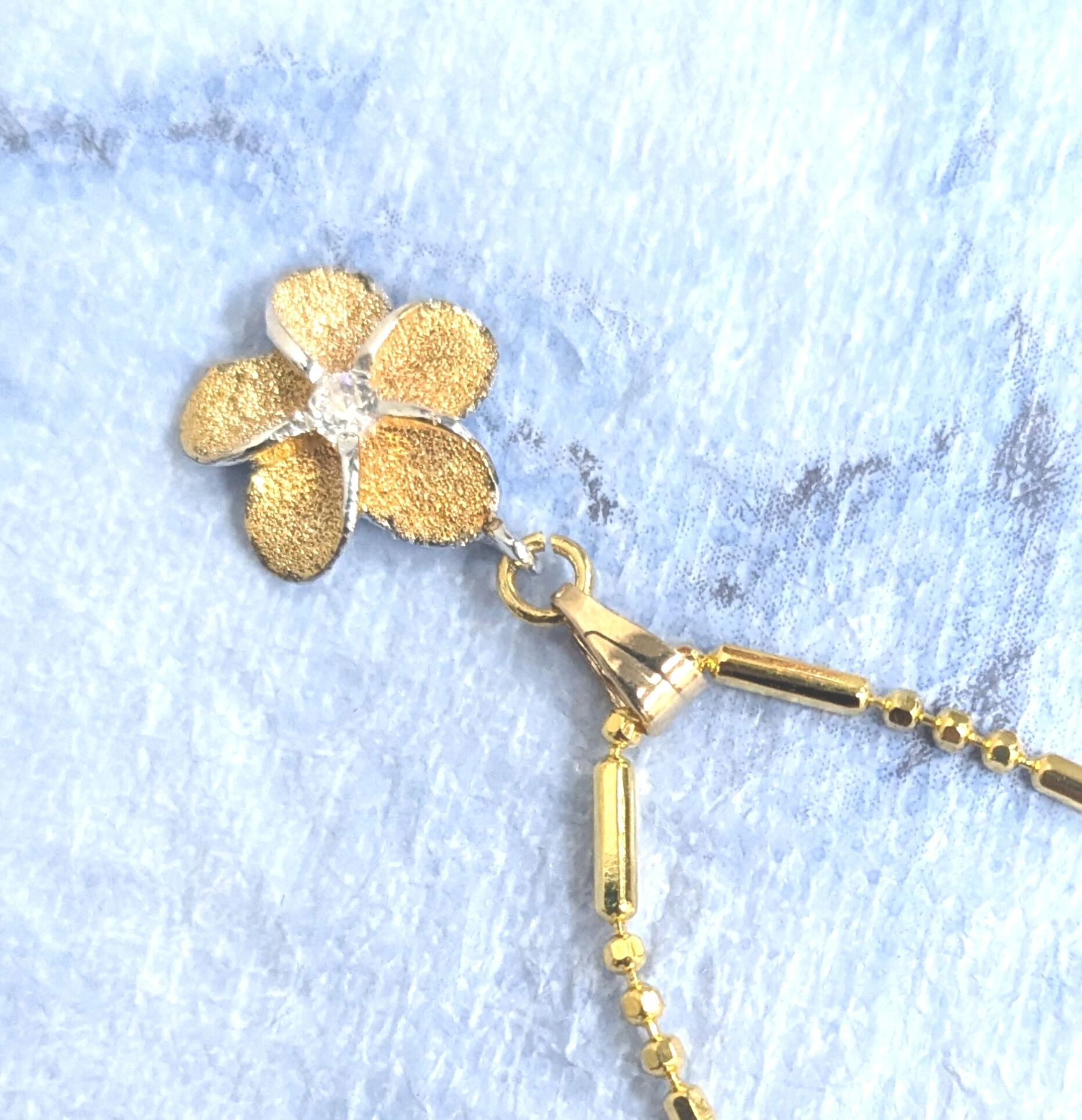 ハワイアンネックレス オレンジゴールドカラー プルメリア&CZ P-671