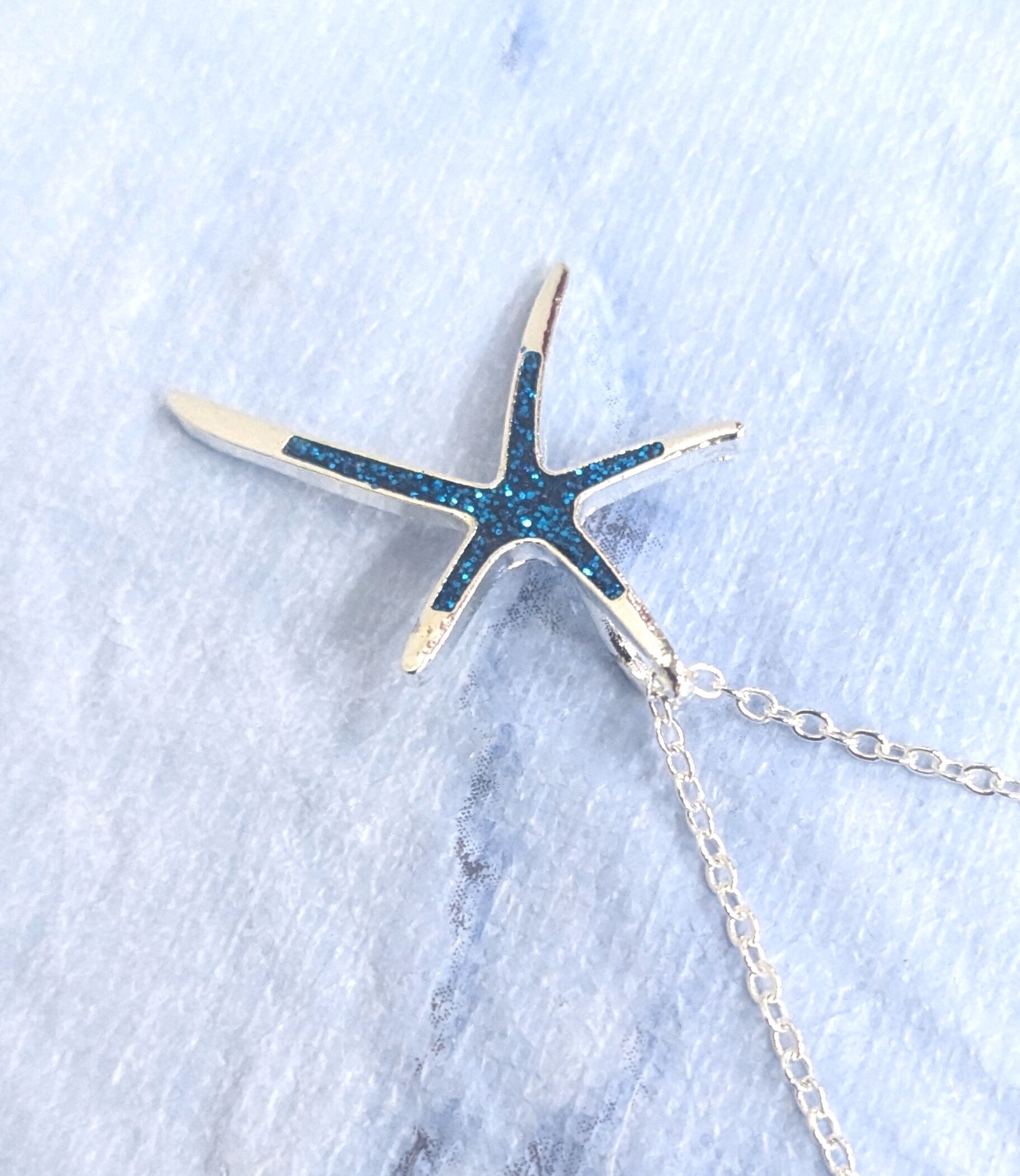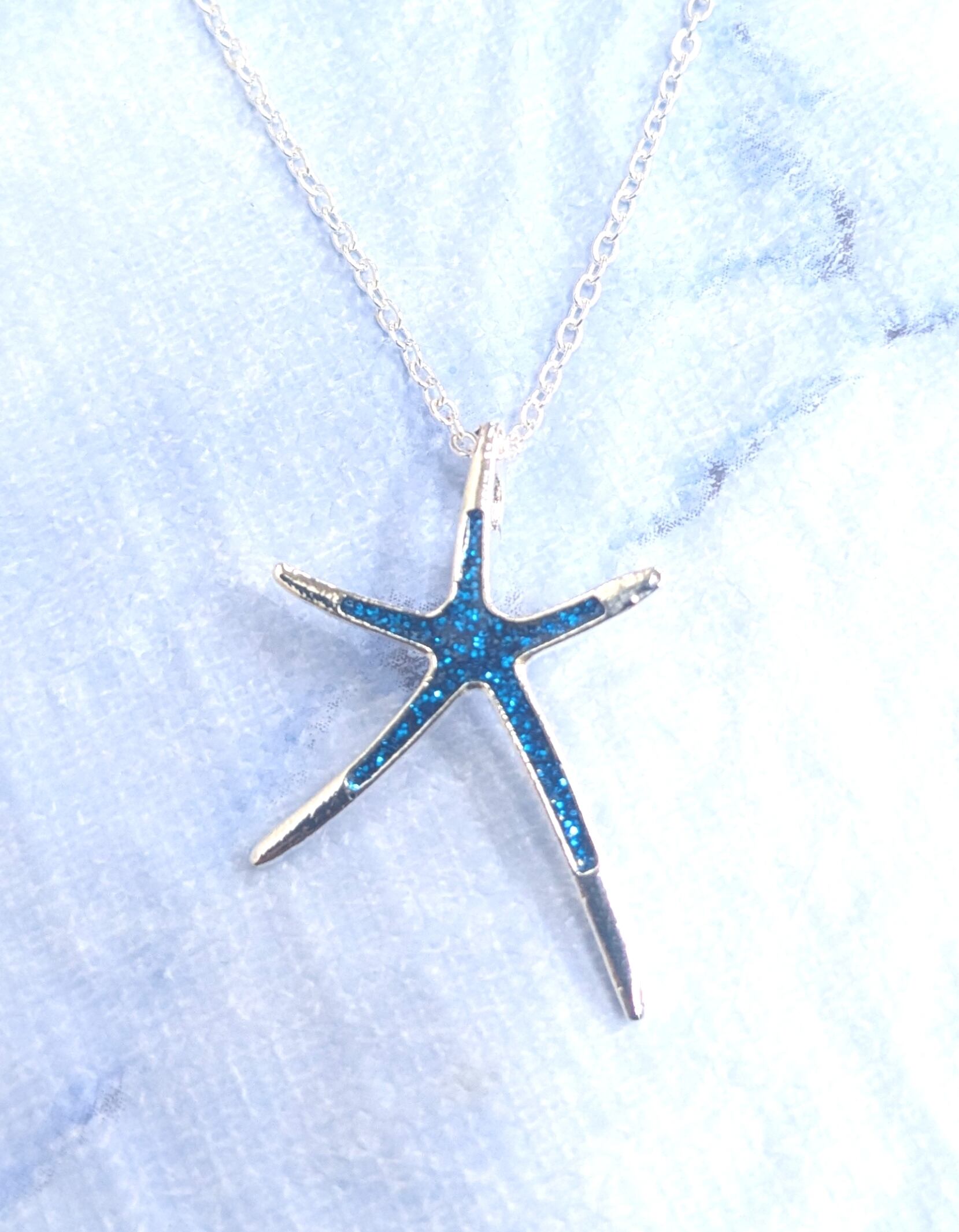 ハワイアンネックレス シルバー&ディープブルー カラー スターフィッシュ M-112