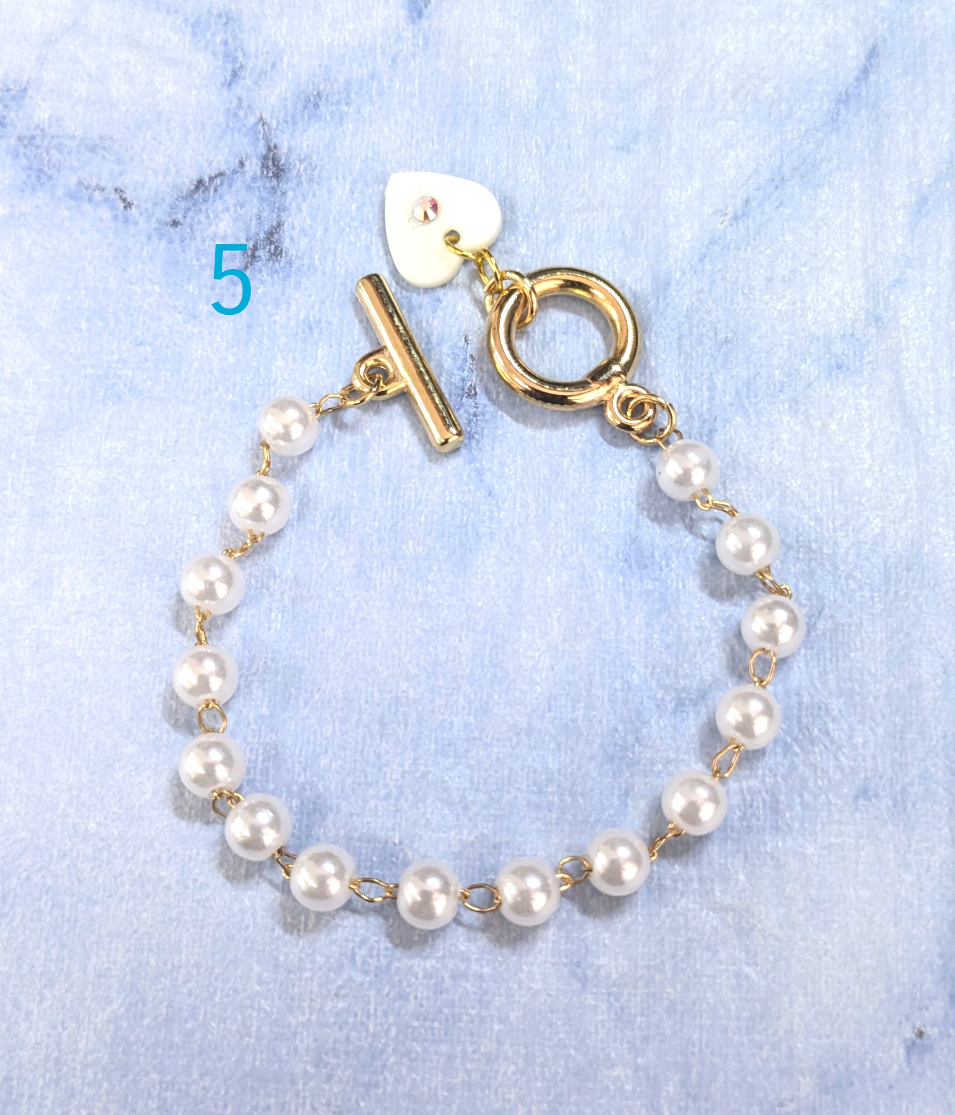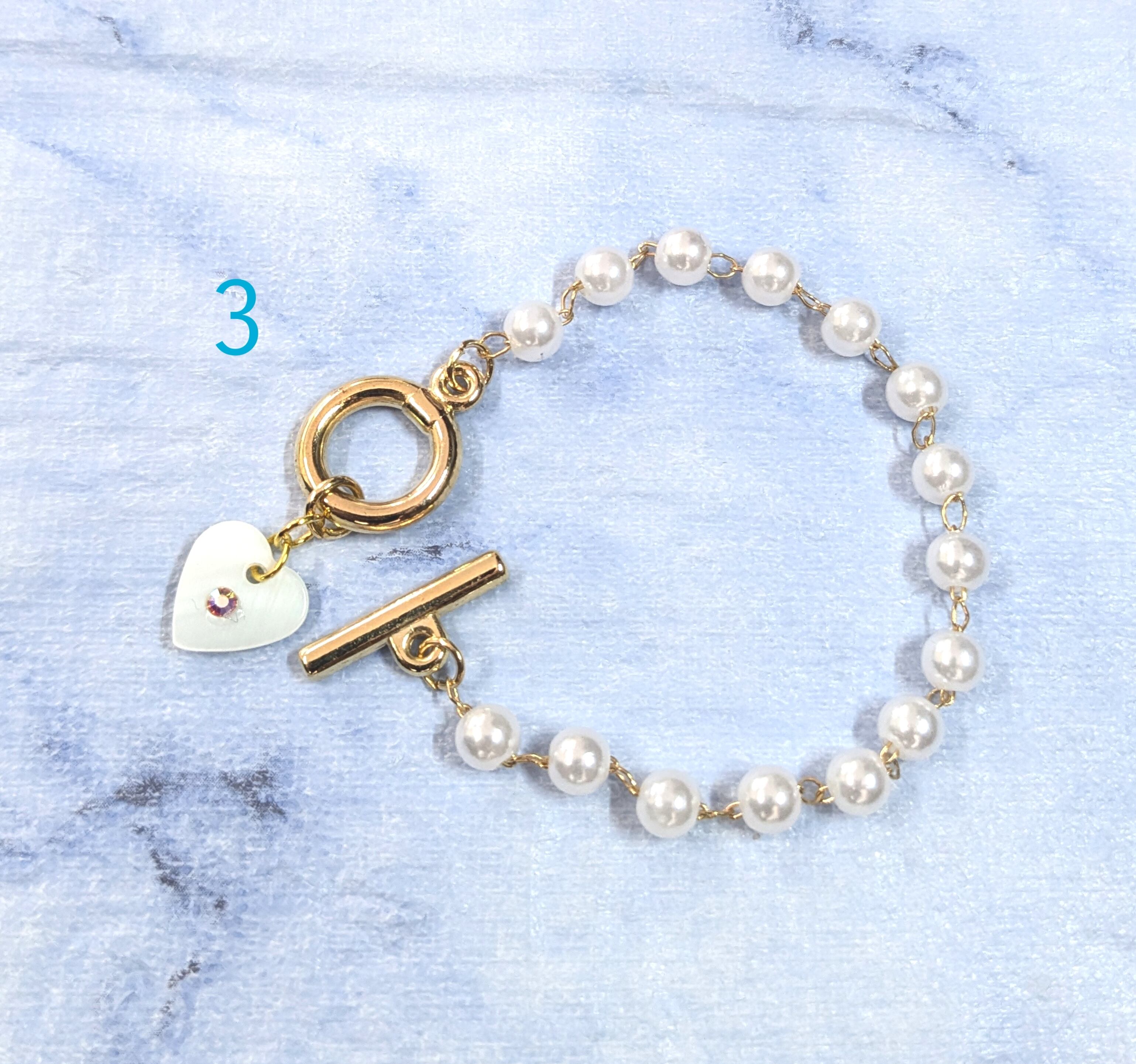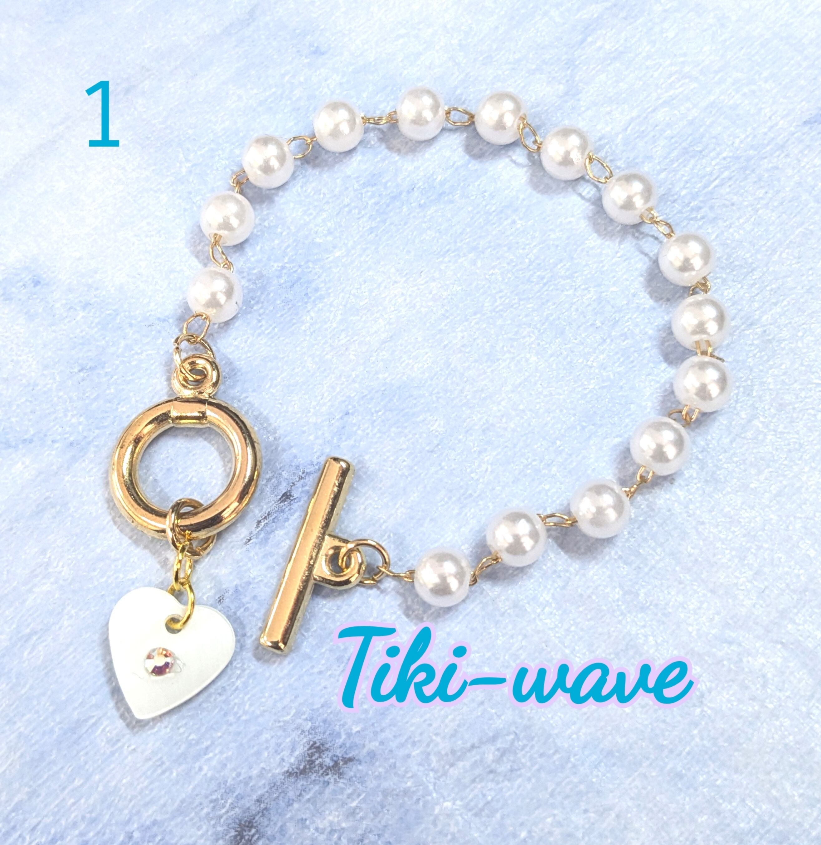 ハワイアンデザインブレス 天然ハートシェル&パールボール クリアカラーCZ R-436
