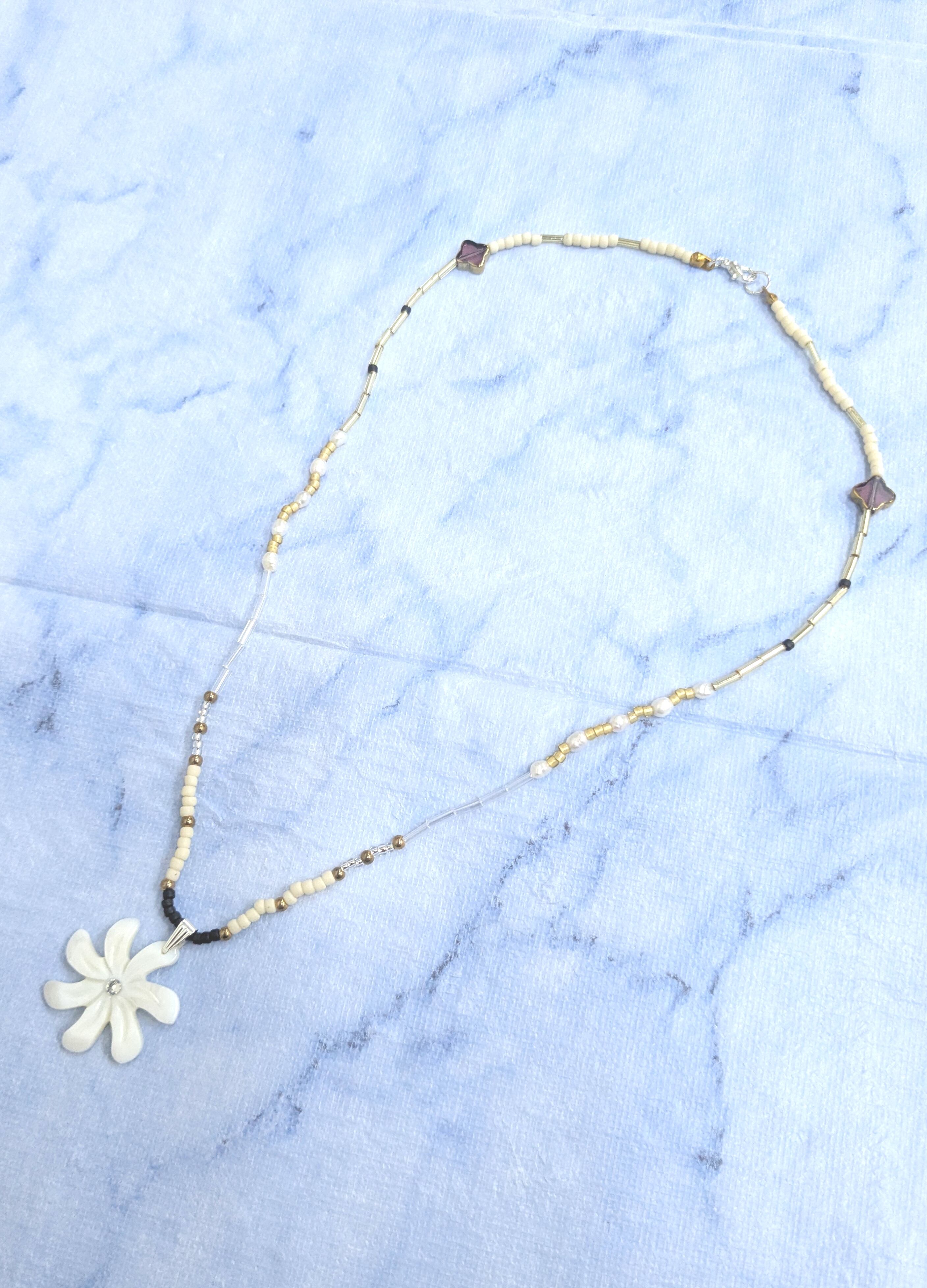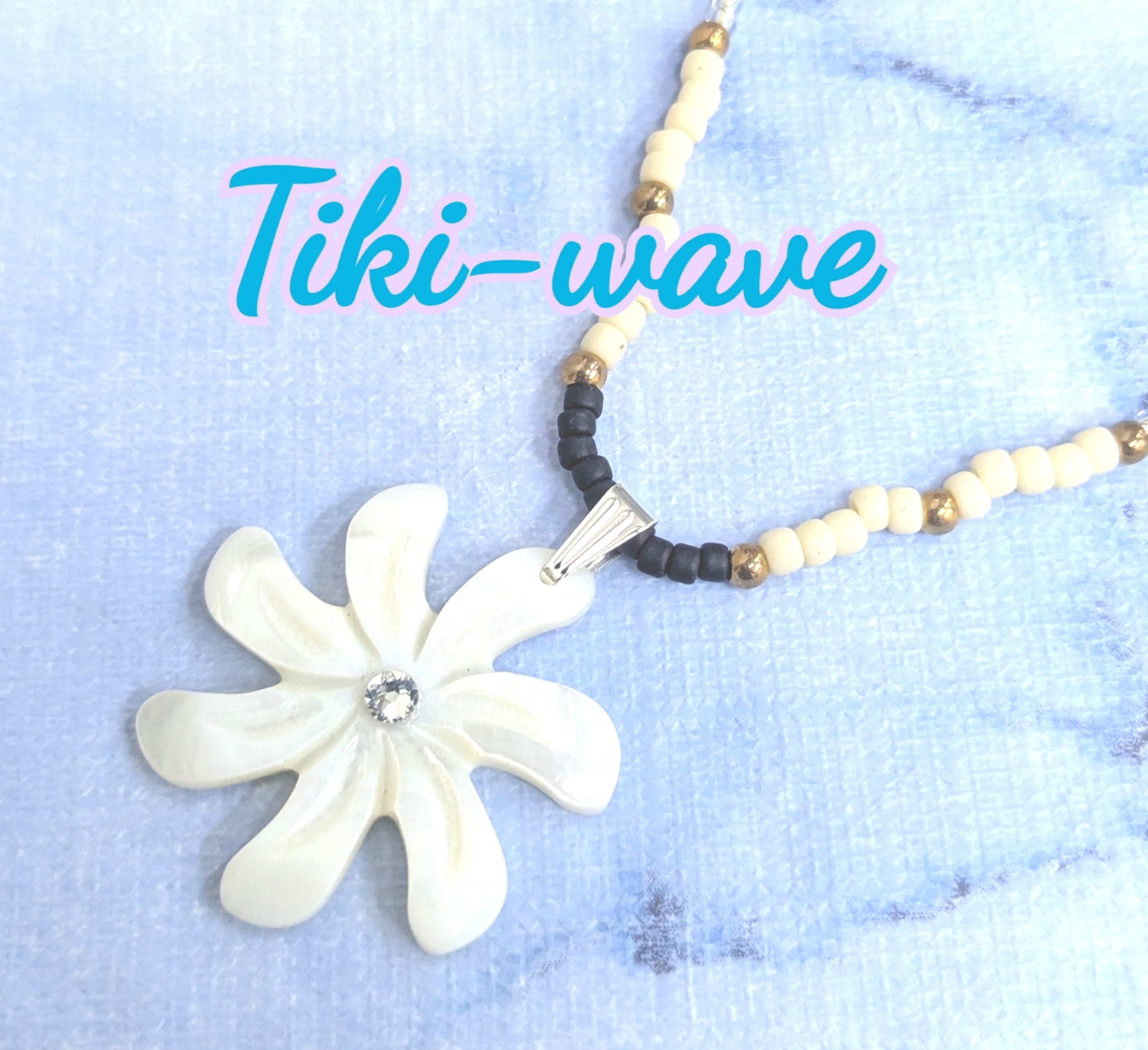 ハワイアンネックレス 白蝶貝 天然シェル ティアレ& パールビーズ T-219
