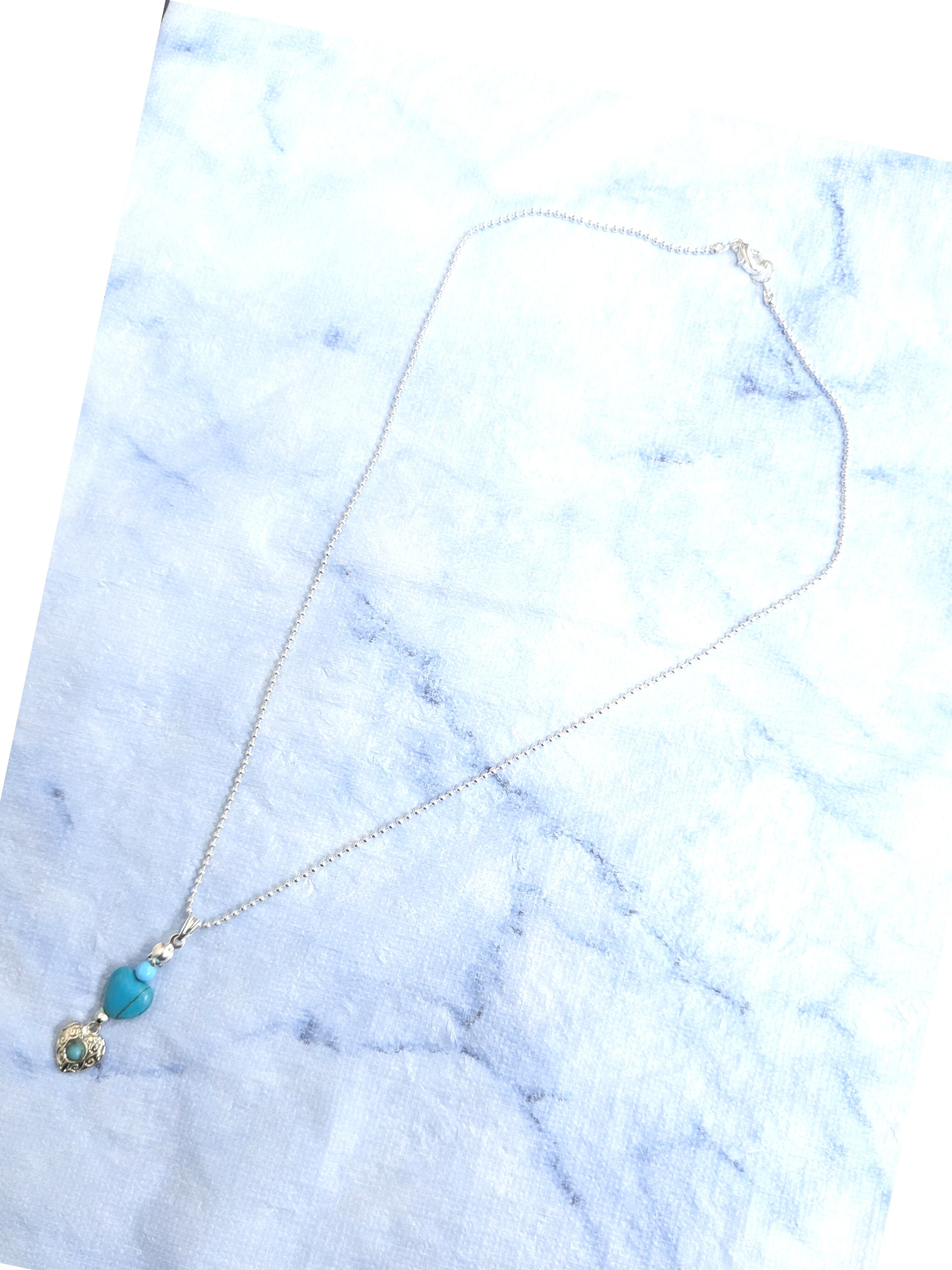 ハワイアンネックレス ブルーカラーターコイズ 2連ハート T-931