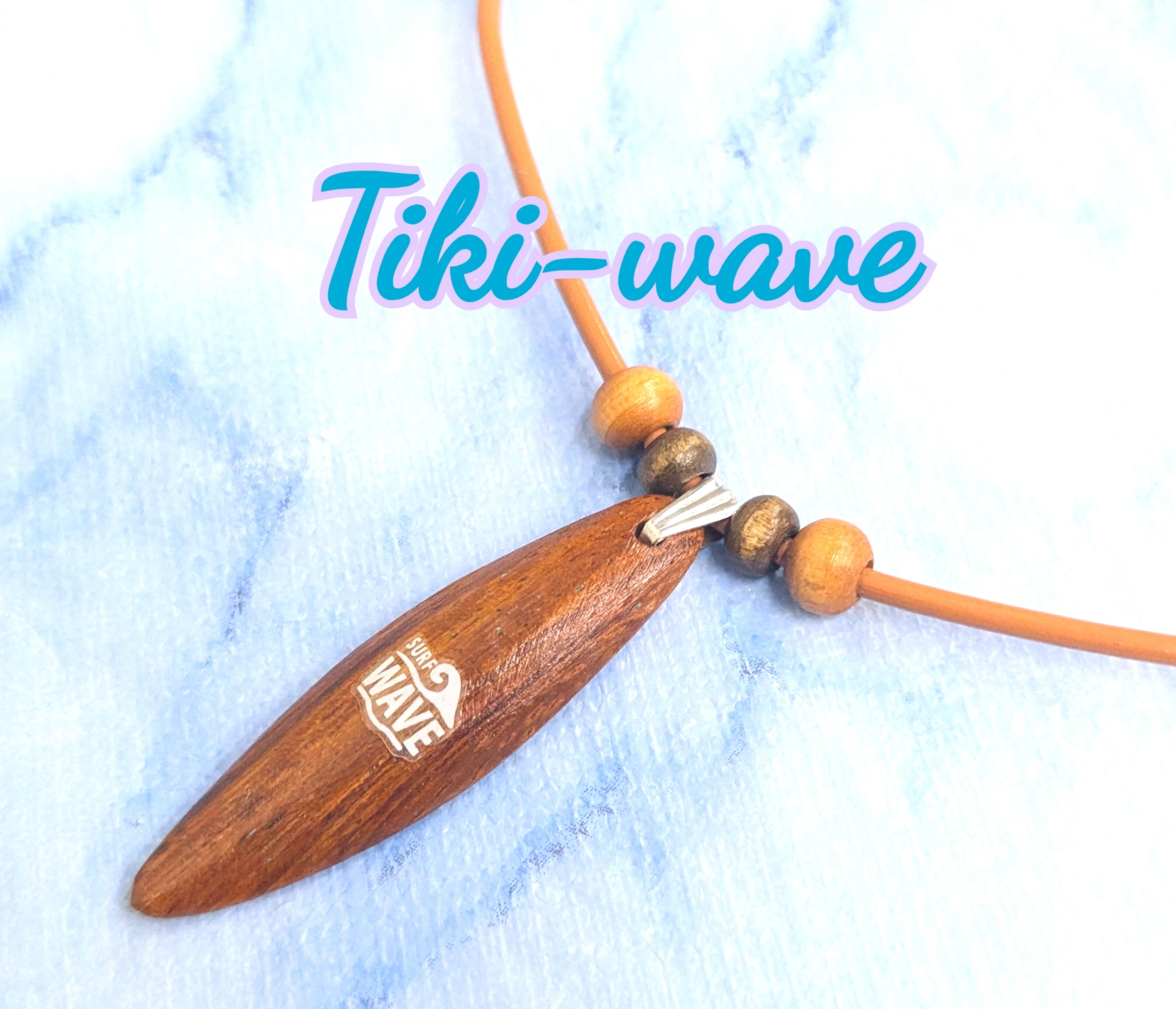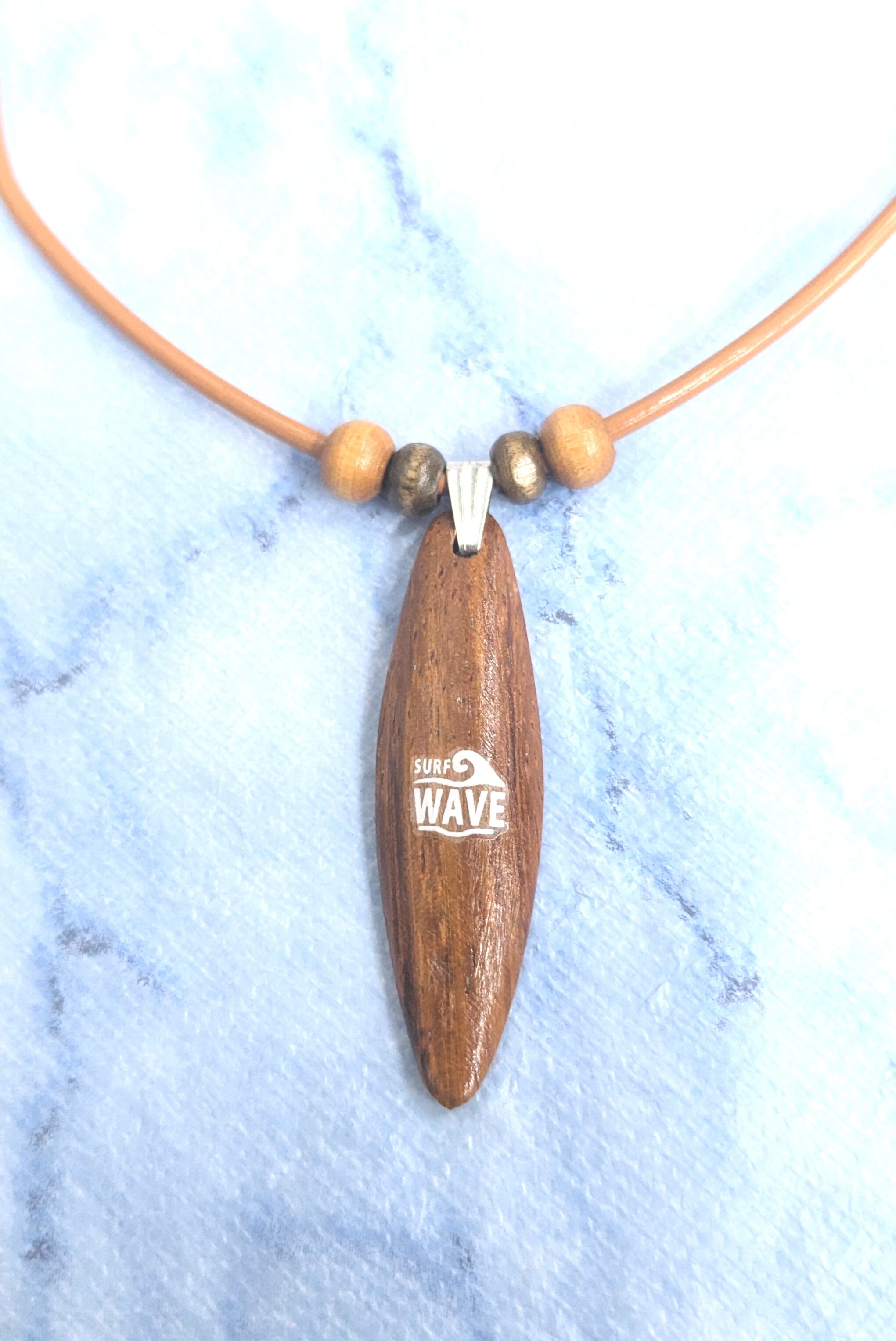 ハワイアンネックレス ナチュラルウッド サーフボード Wave デザイン B-384