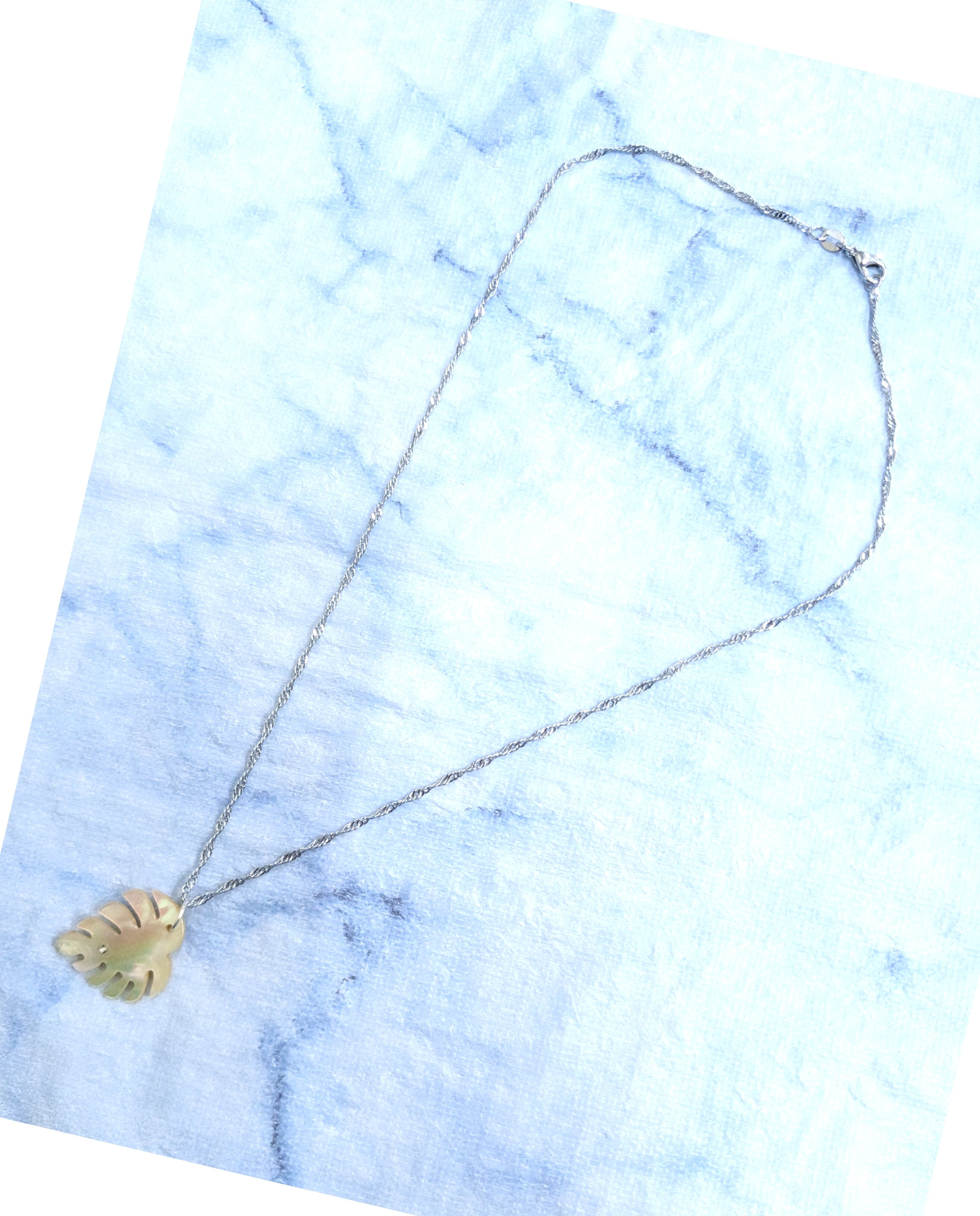 ハワイアンネックレス 天然シェル 夜光貝モンステラ &シルバー925 M-538