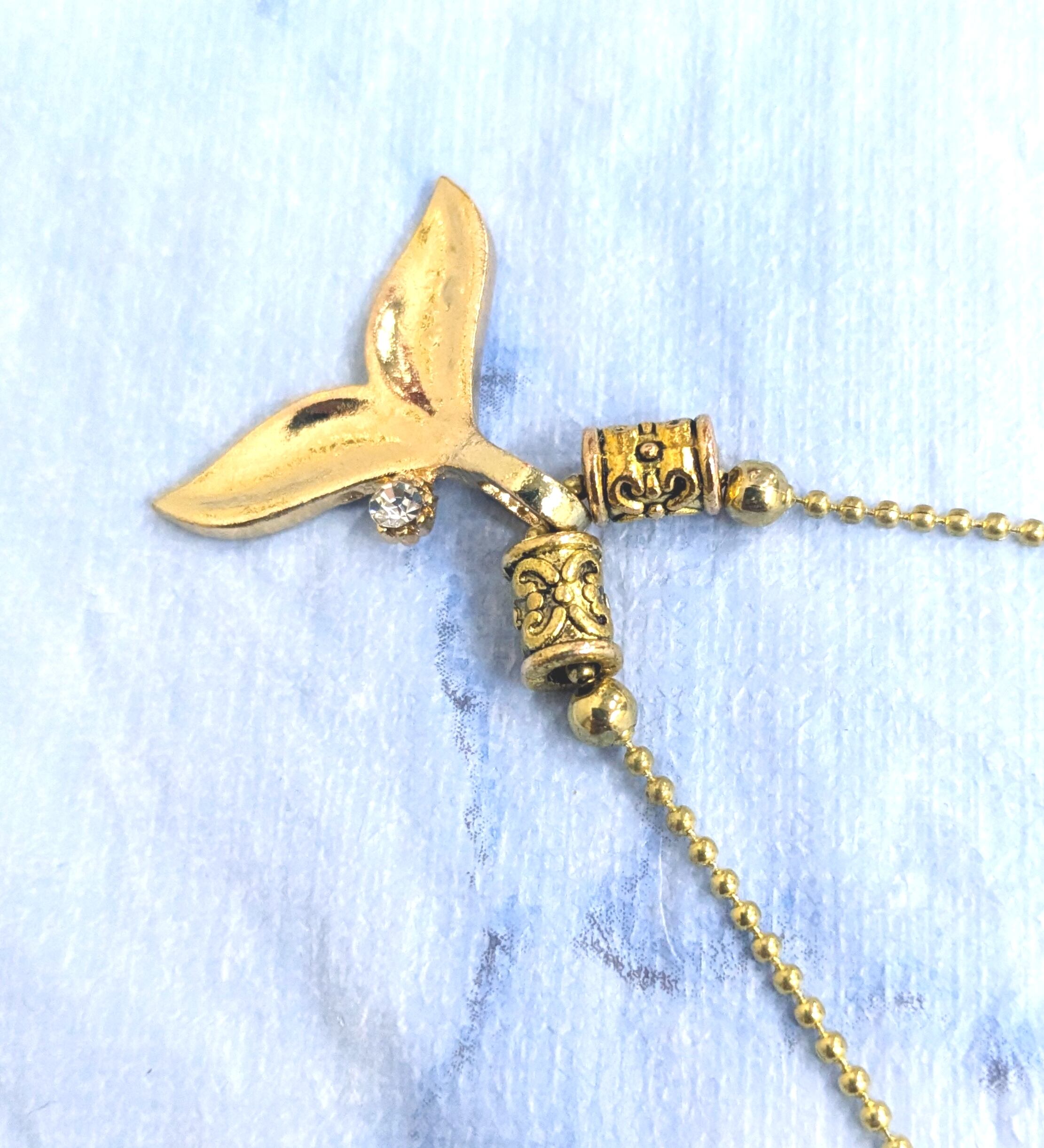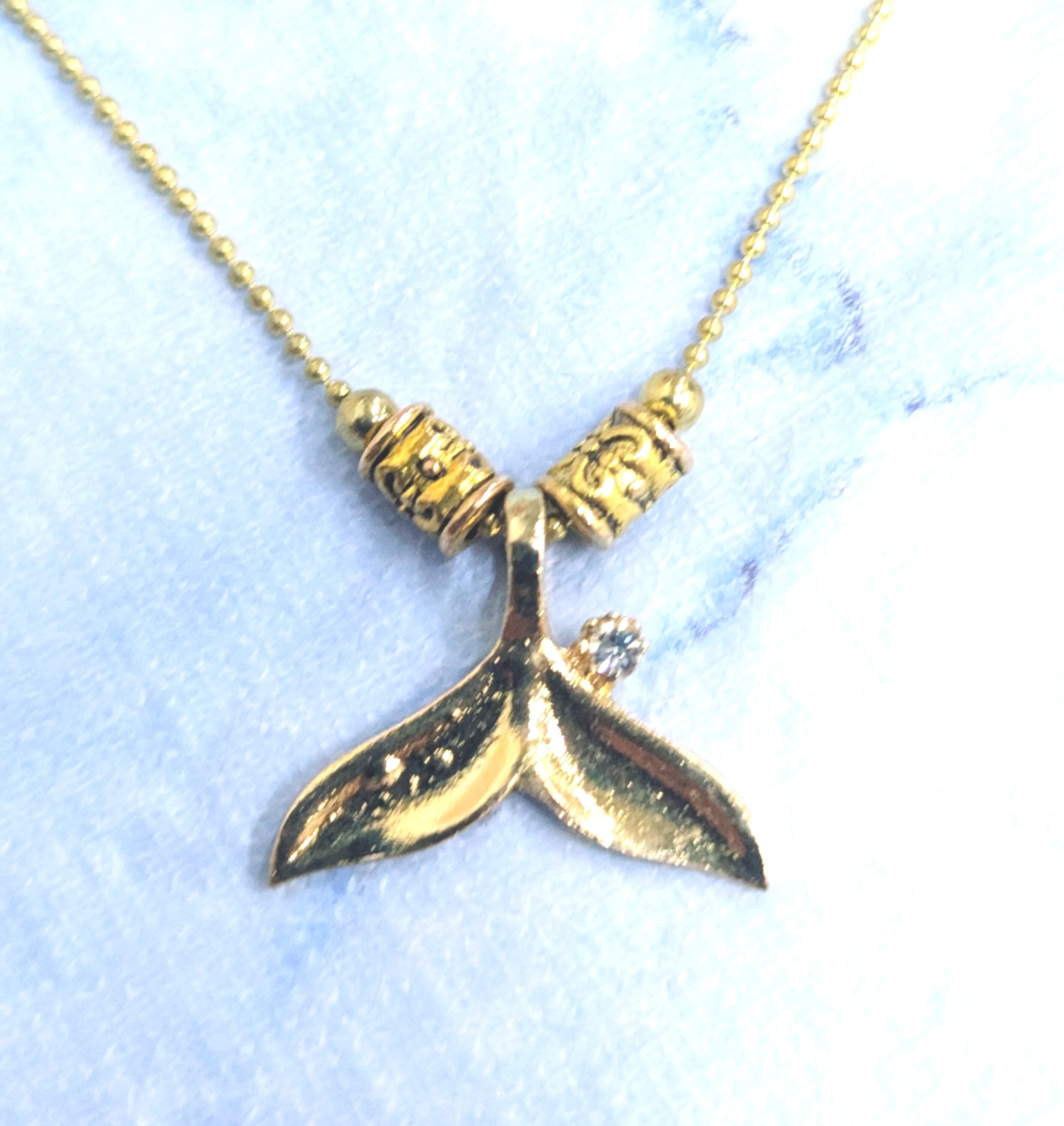 ハワイアンネックレス ゴールドホエールテール & スワロCZ D-248