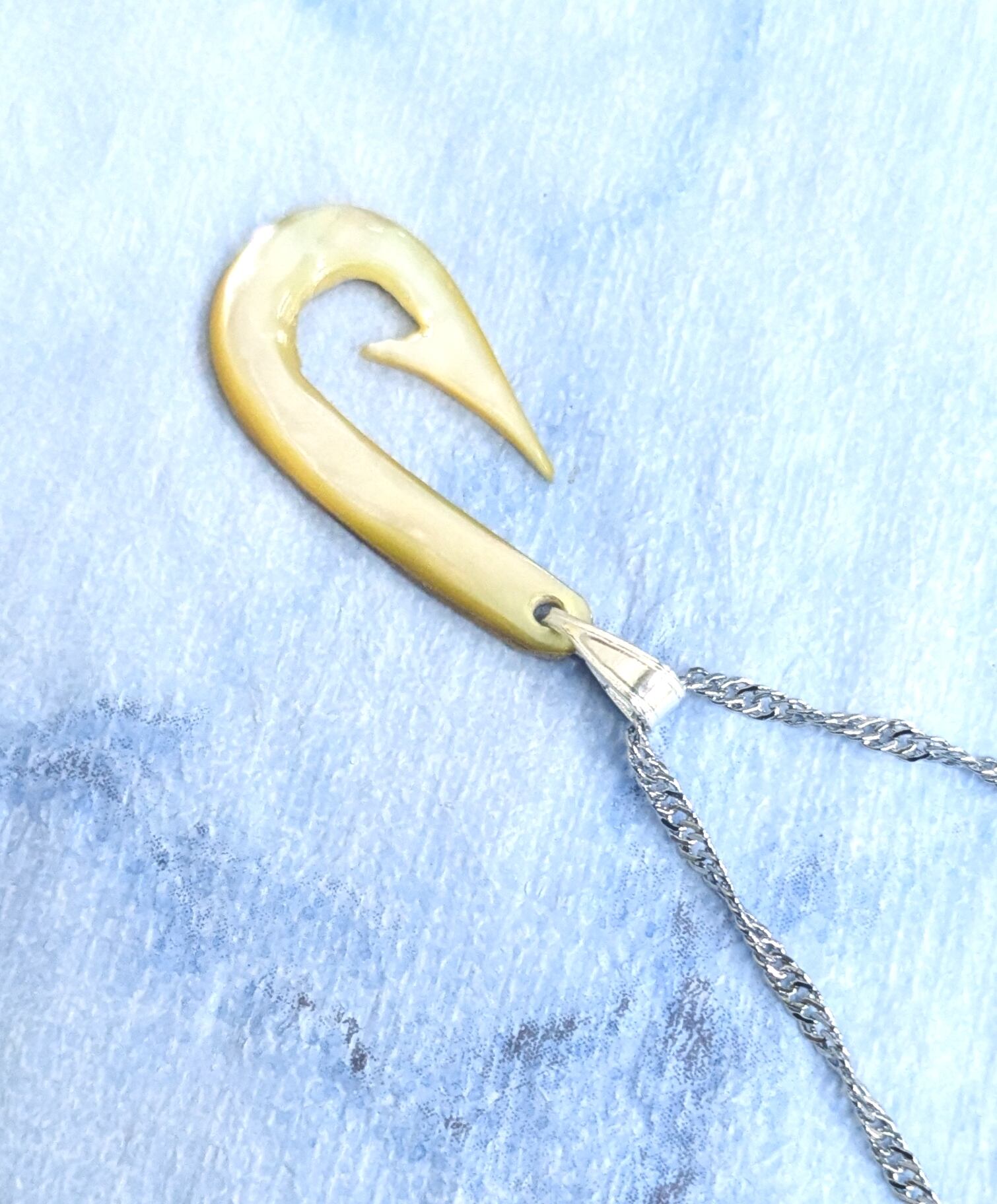 ハワイアンネックレス 夜光貝 フィッシュフック& シルバー925チェーン F-127
