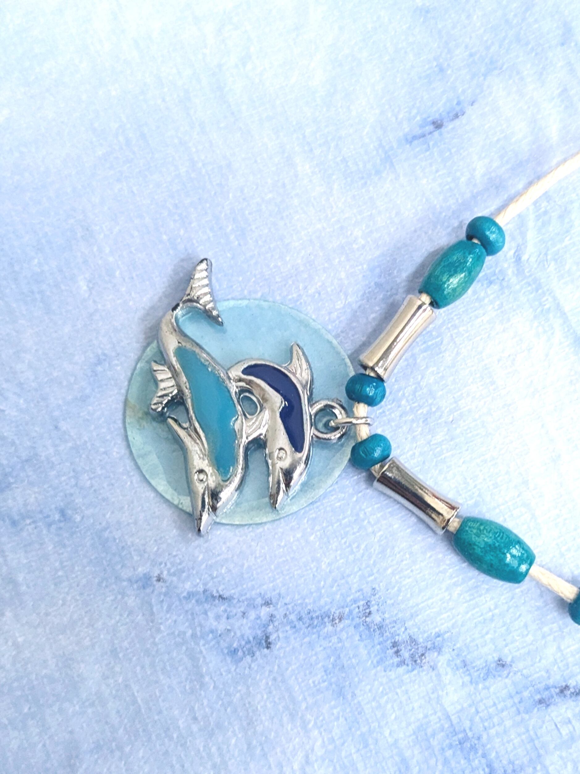 ハワイアンネックレス ツインブルードルフィン &ライトブルーシェル D-249