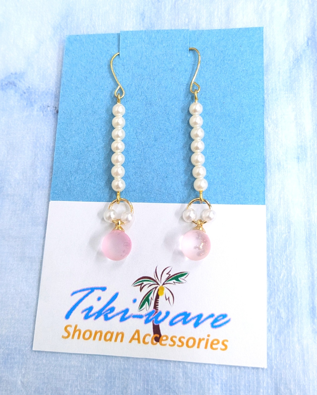 ハワイアンピアス ライトピンク クリスタルボール &ホワイトパール A-235