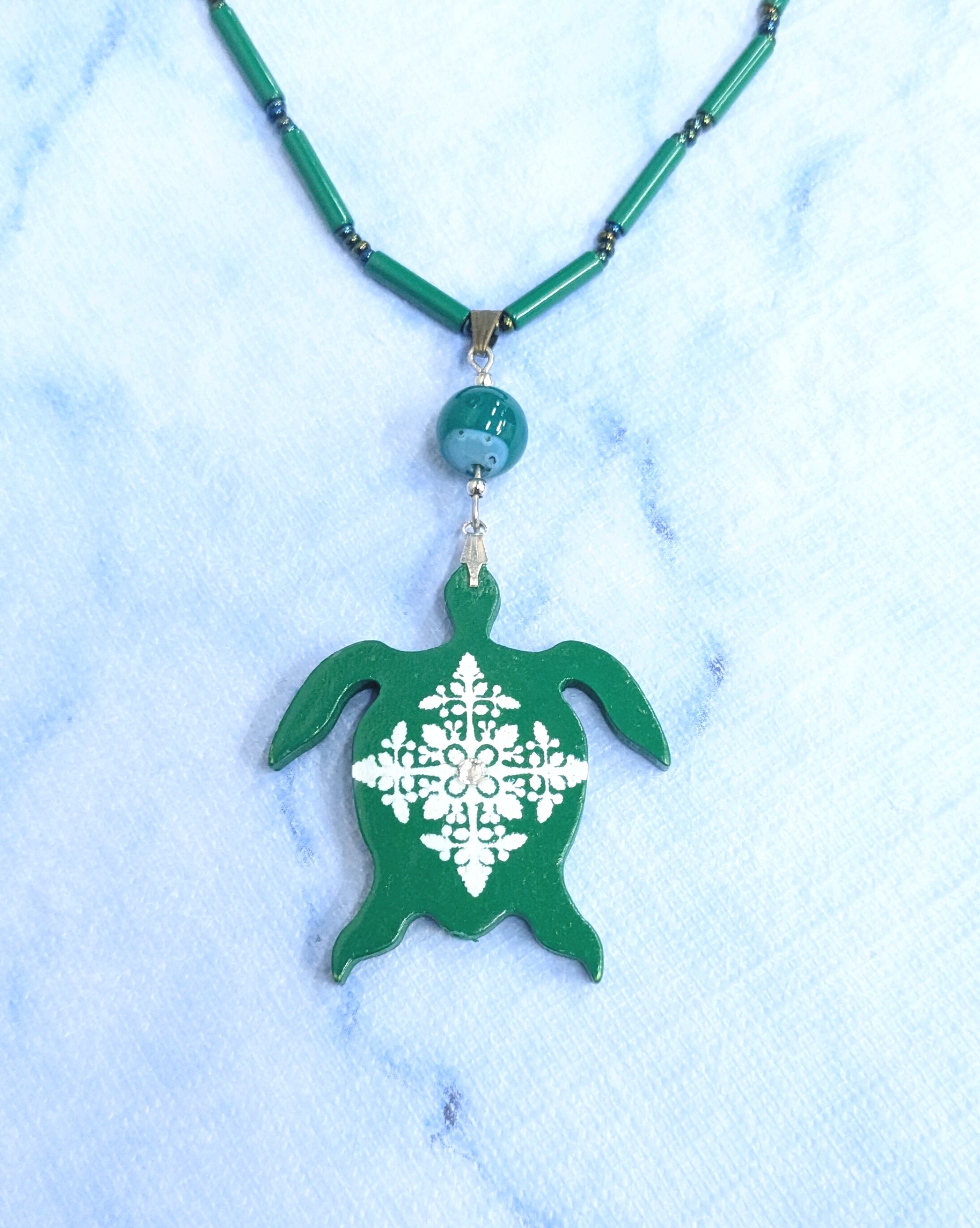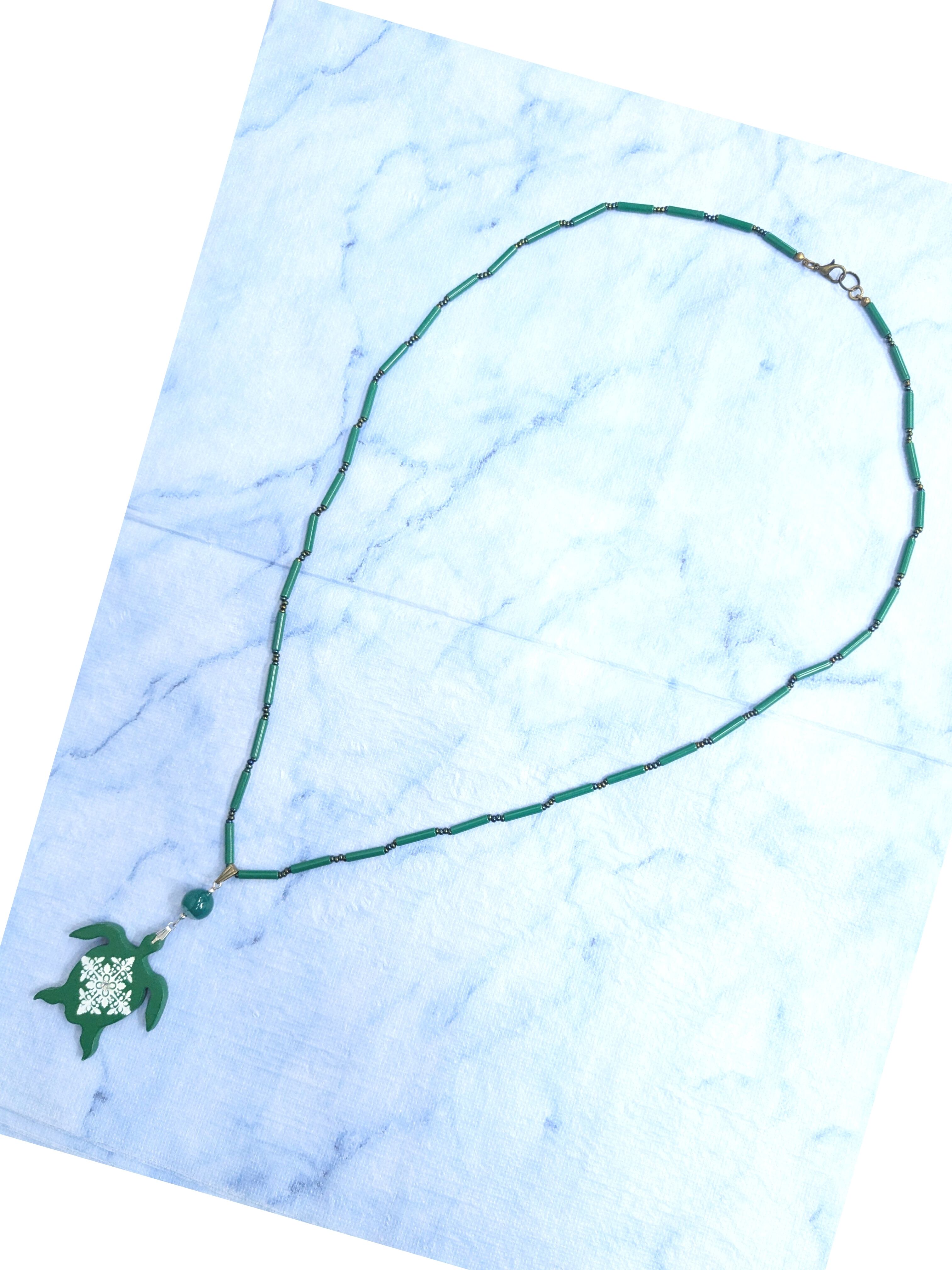 ハワイアンネックレス 天然ウッド グリーンカラー ホヌ&ジェイド ビーズライン H-217