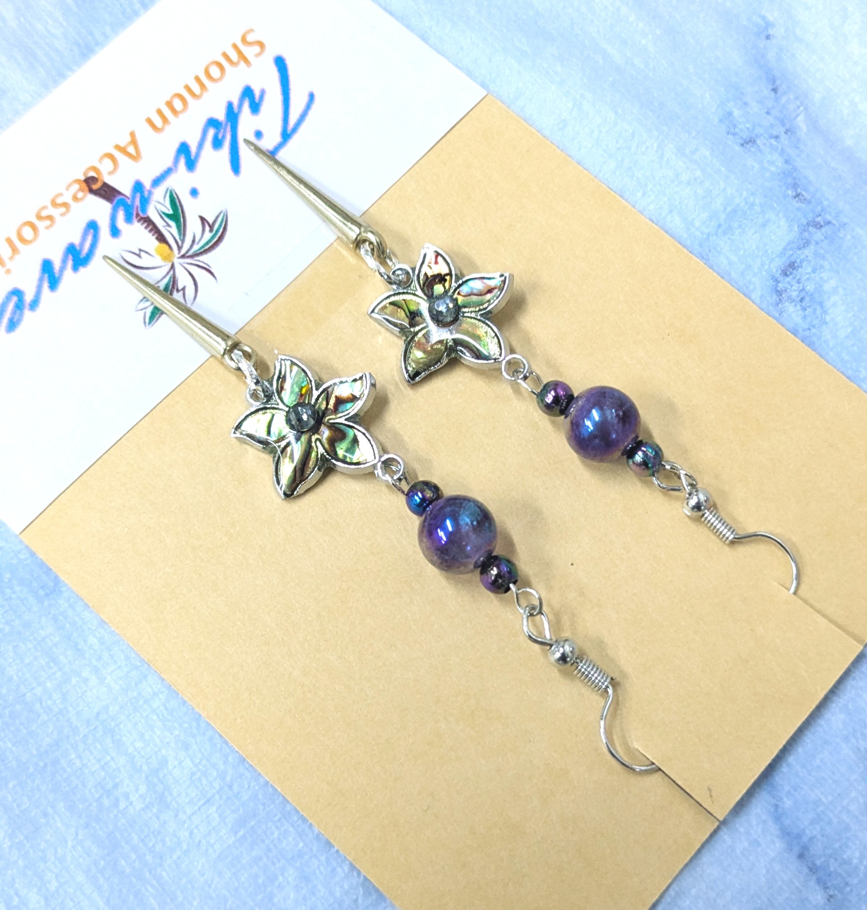 ハワイアンピアス パウアシェル プルメリア & オーロラクオーツ A-238