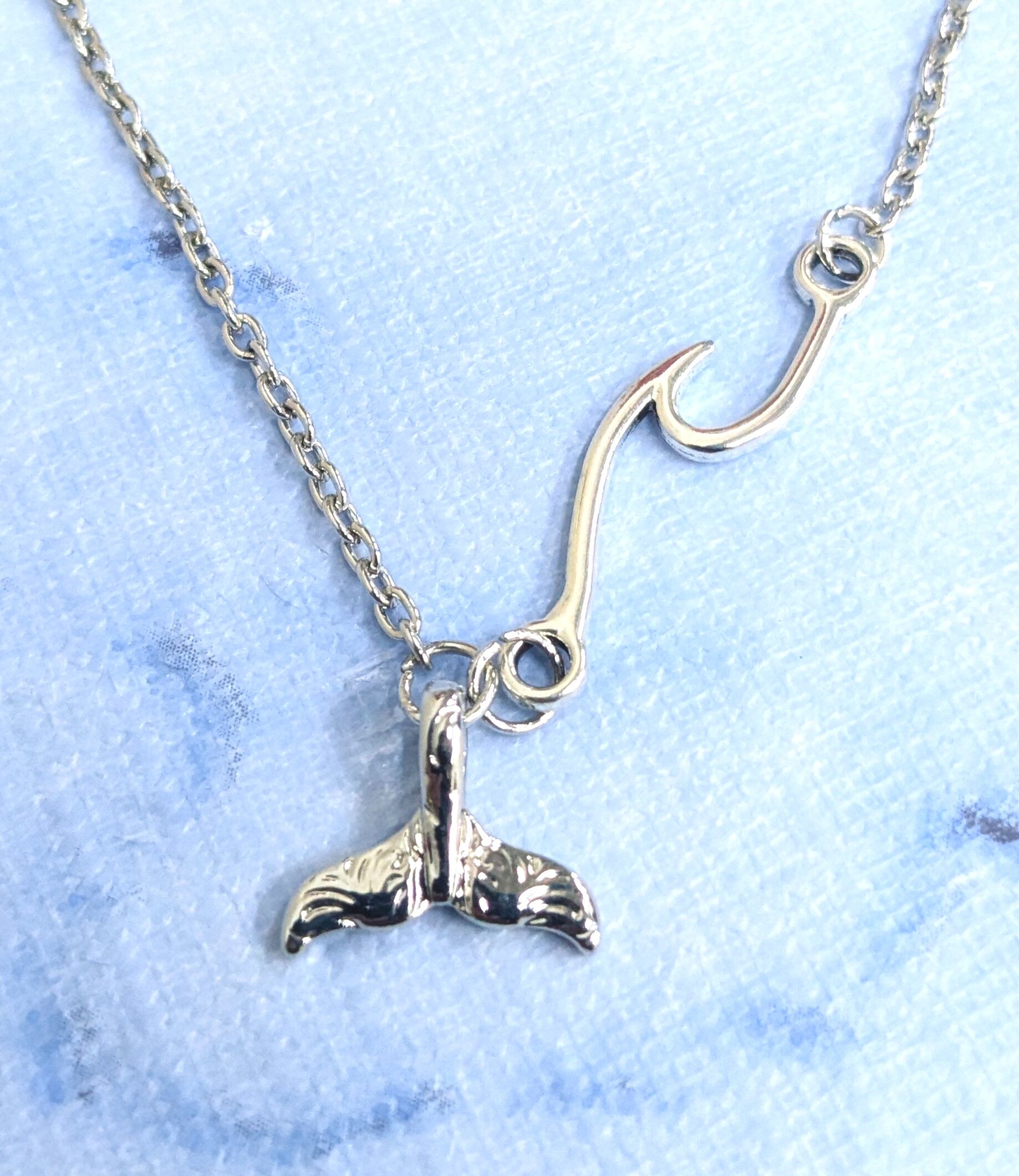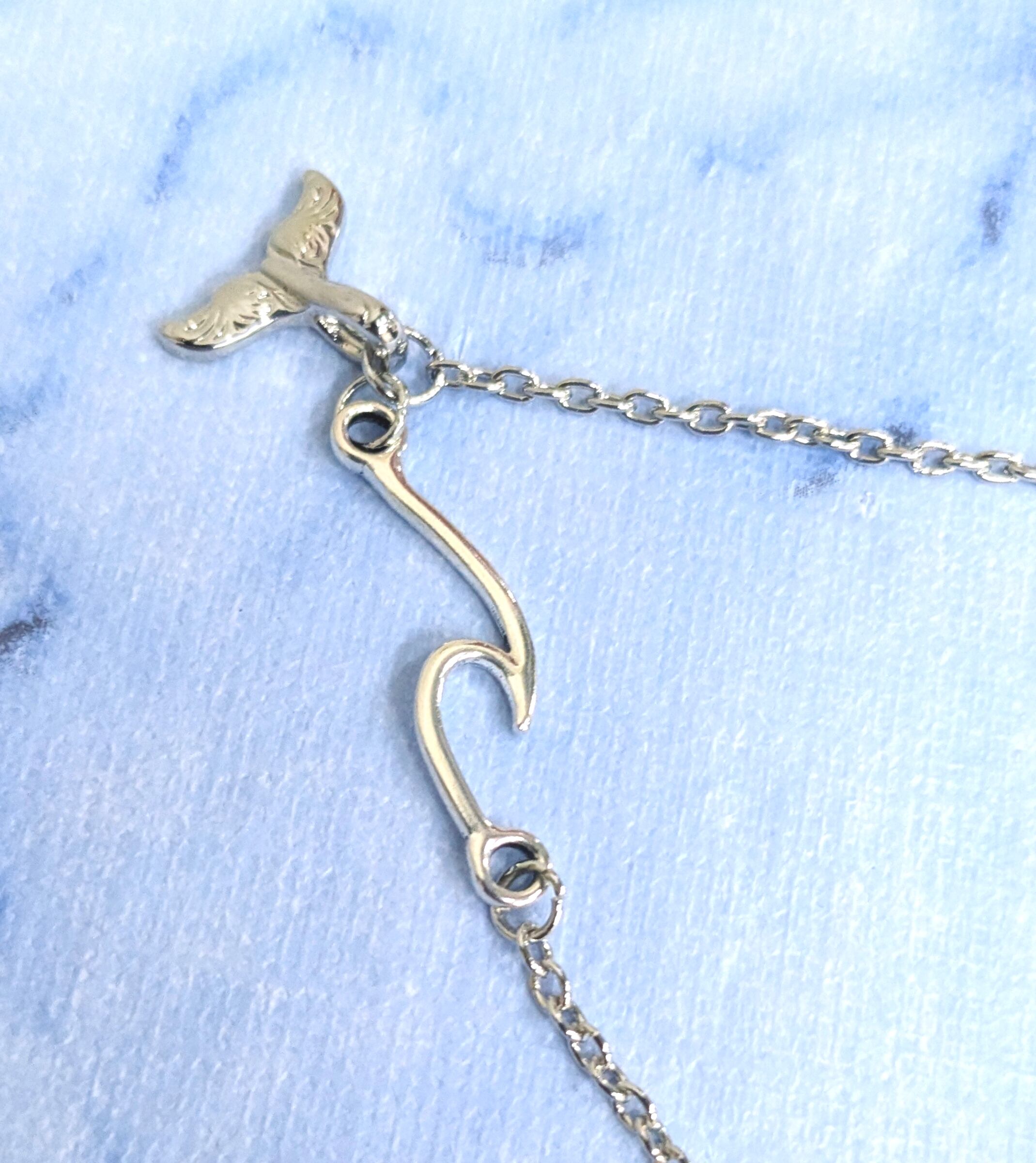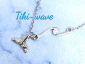 ハワイアンネックレス シルバーカラー カービング ホエールテール & ウエーブ D-250