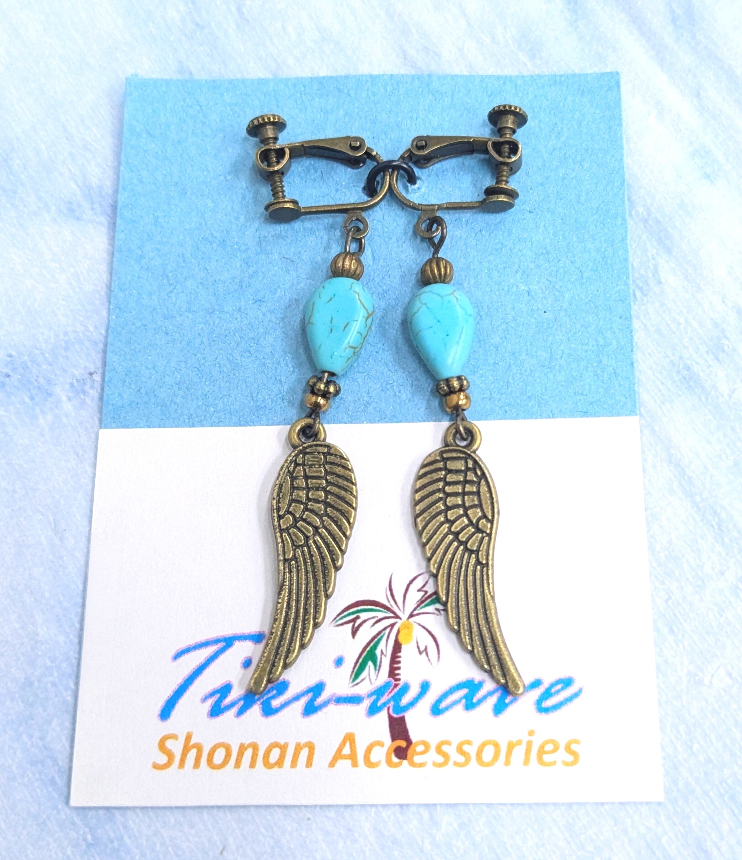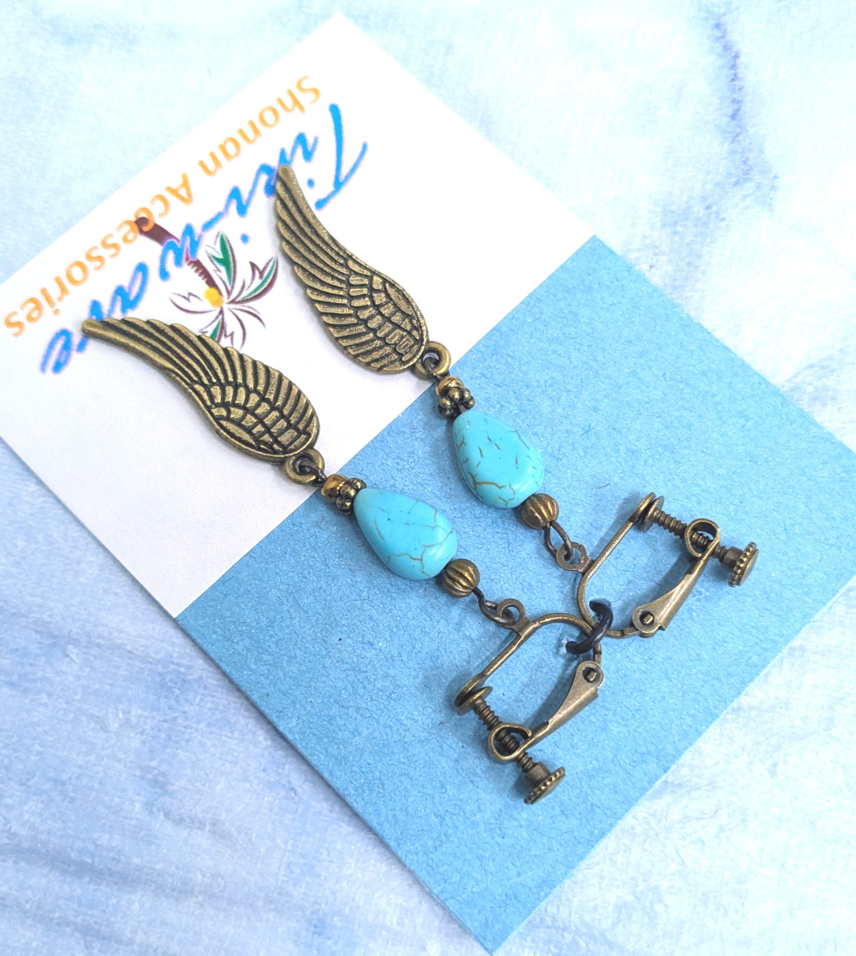 ファッションイヤリング クラシックゴールドウイング & ブルーターコイズ A-379