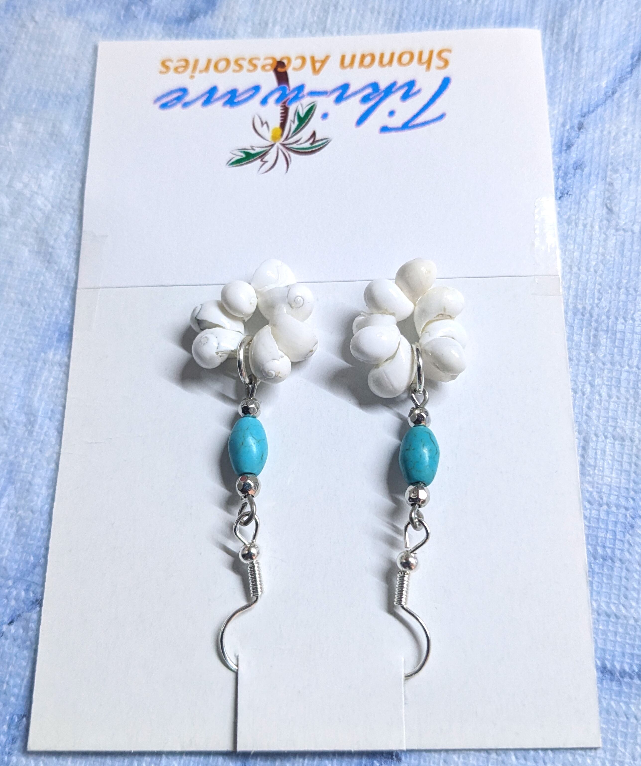 ハワイアンピアス ホワイトモンゴシェル& ターコイズ A-241