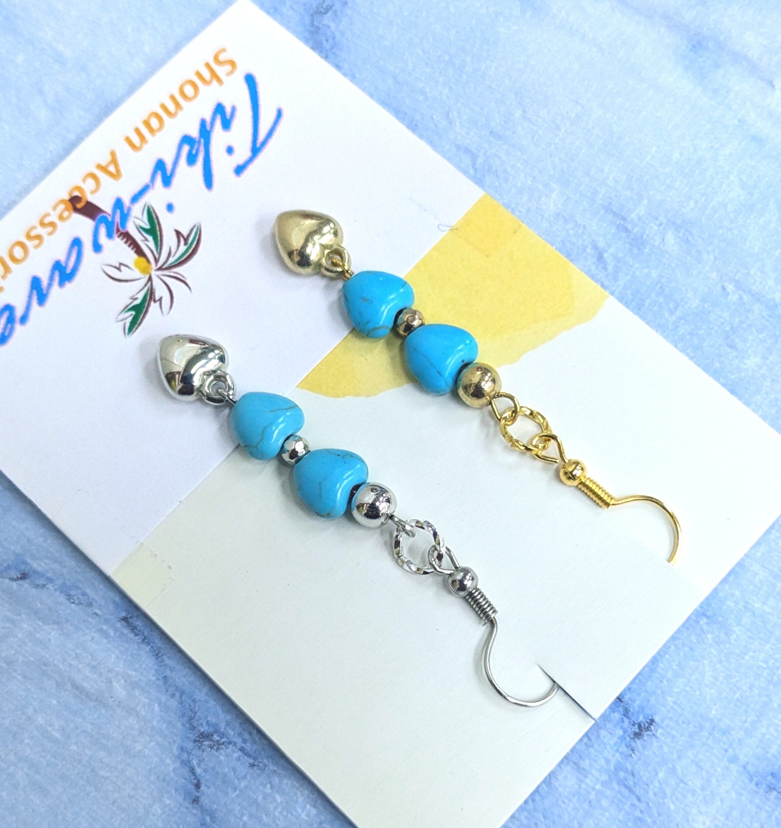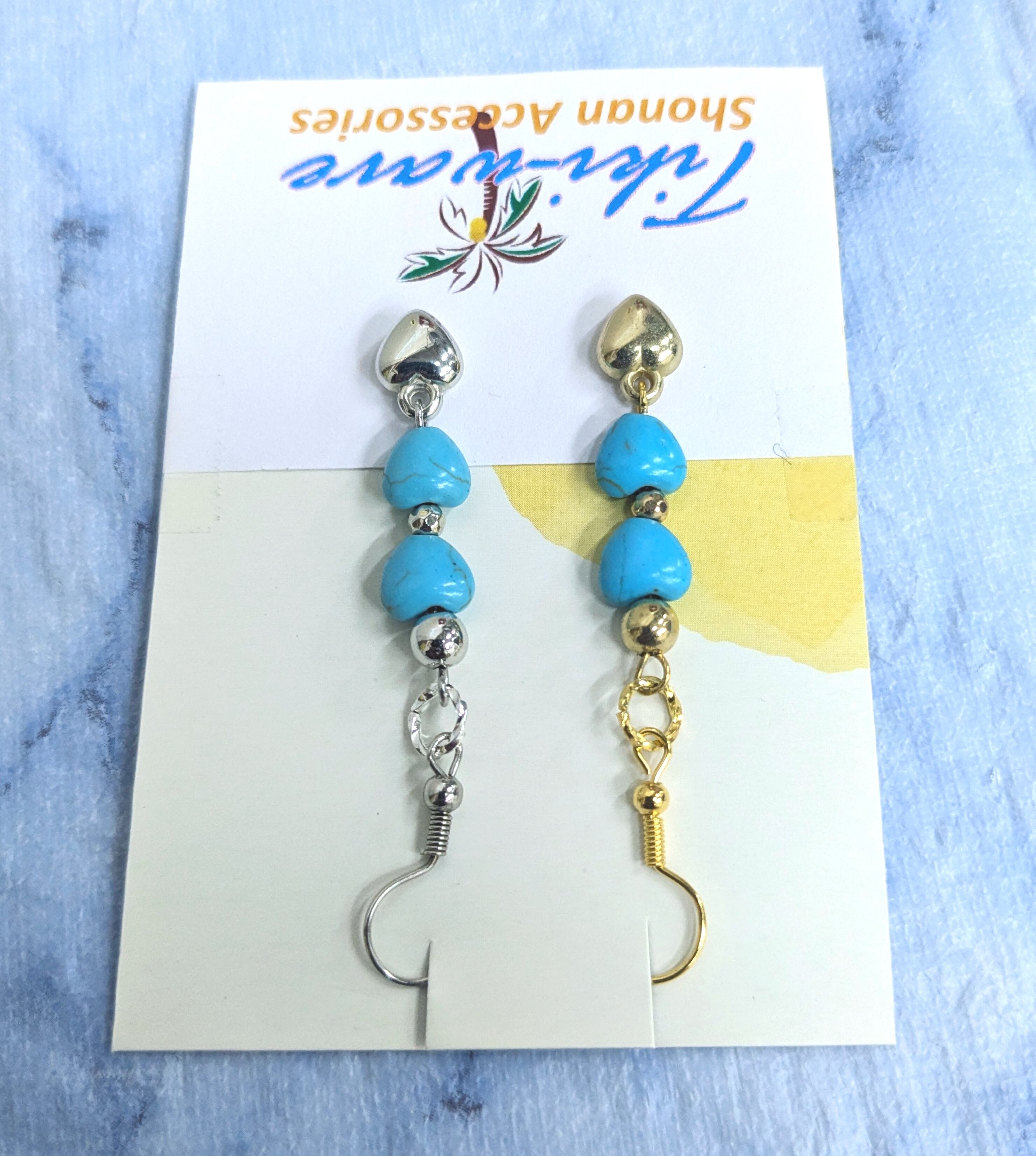 ファッションピアス シルバー&ゴールドカラー ハートデザインターコイズ A-380