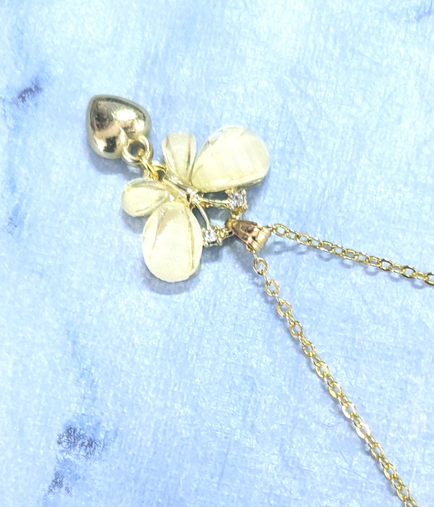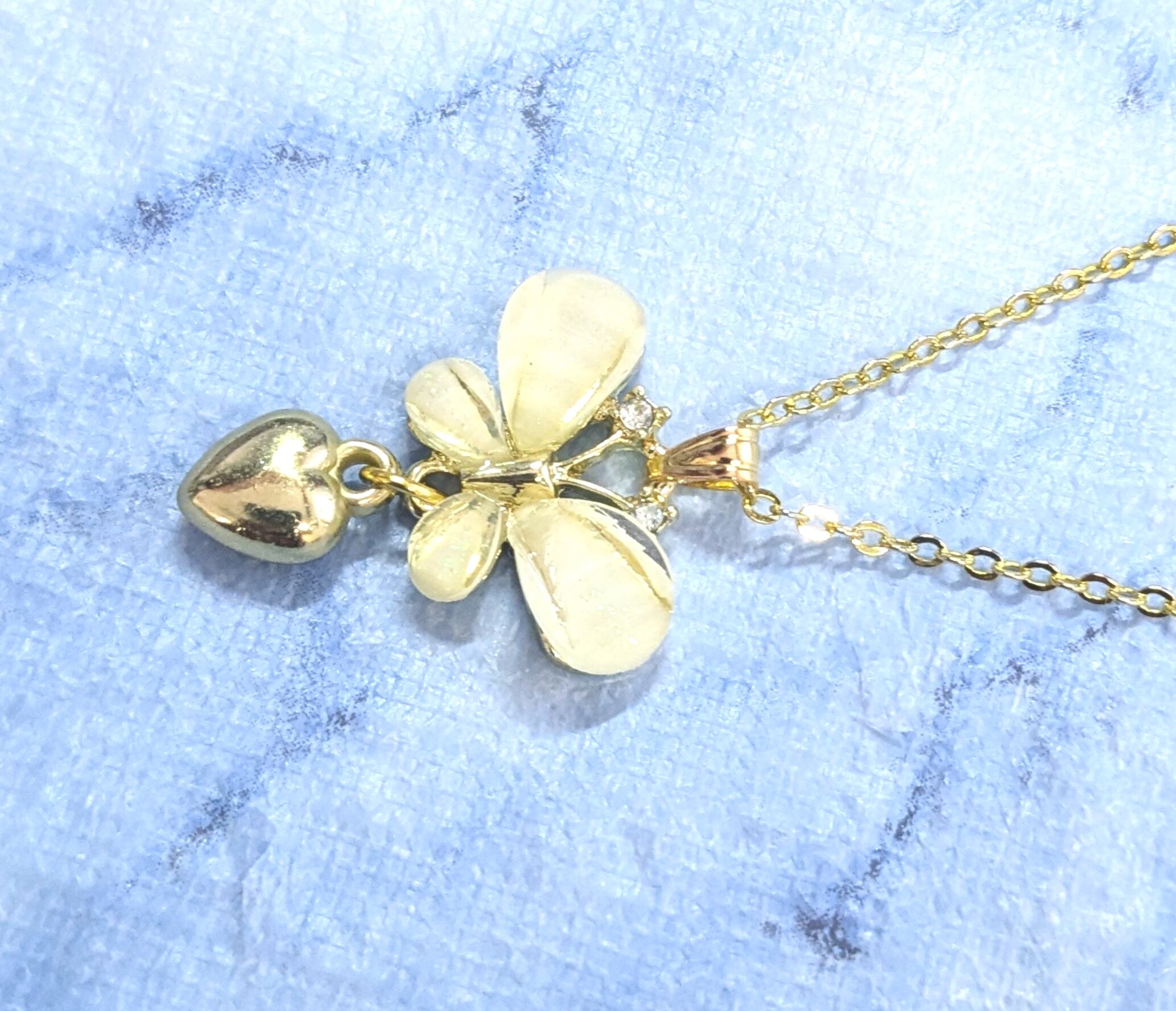 レディースネックレス ゴールドカラー ハート& バタフライ 蝶デザイン L-869