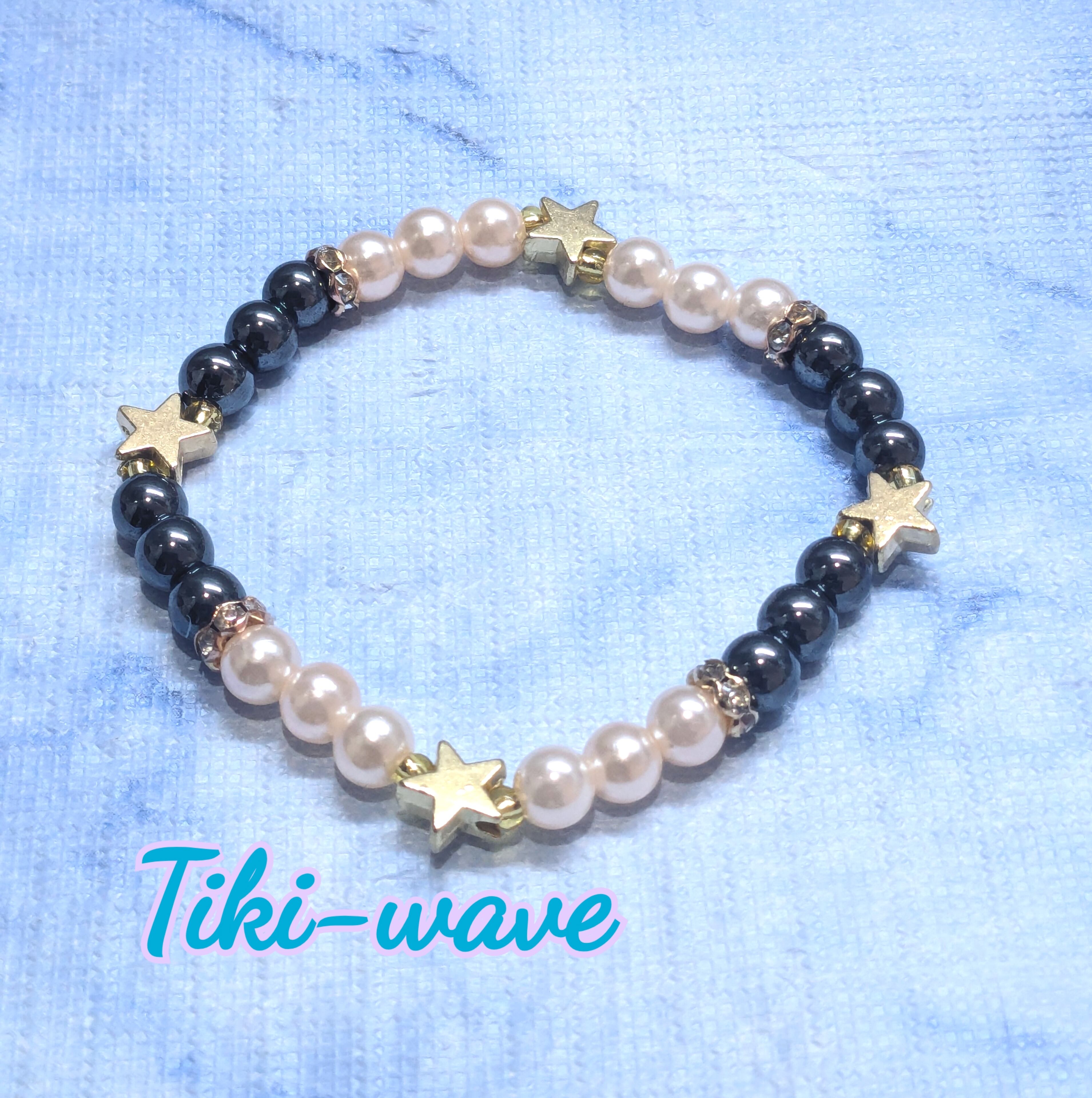 レディースブレス ライトピンクパール & ヘマタイト ゴールドスター M-530