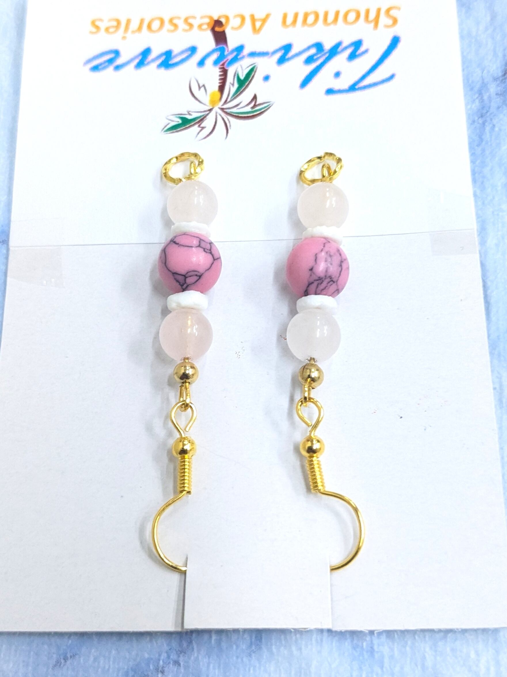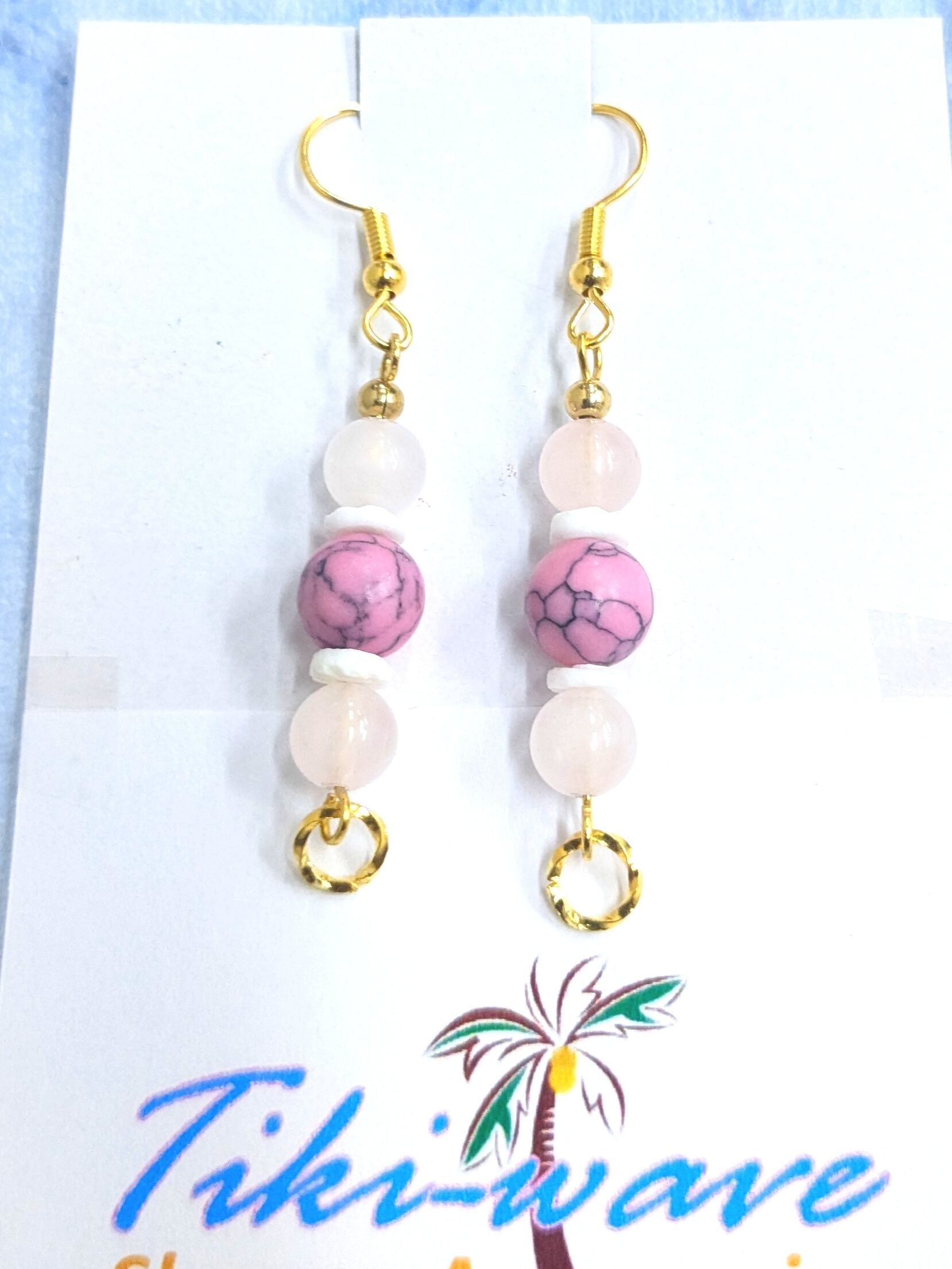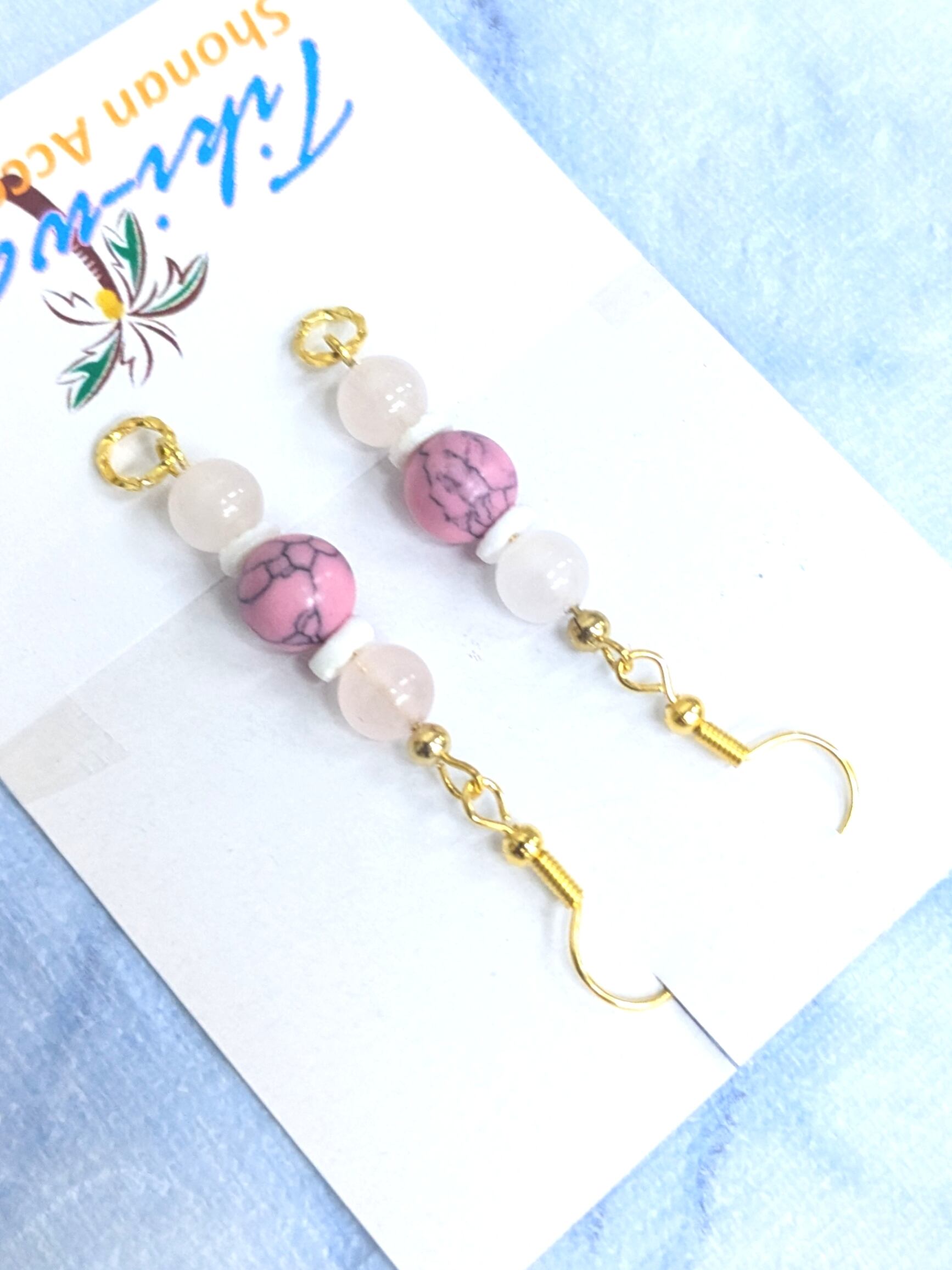 ストーンイヤリング ピンクターコイズボール& ローズクォーツ A-386