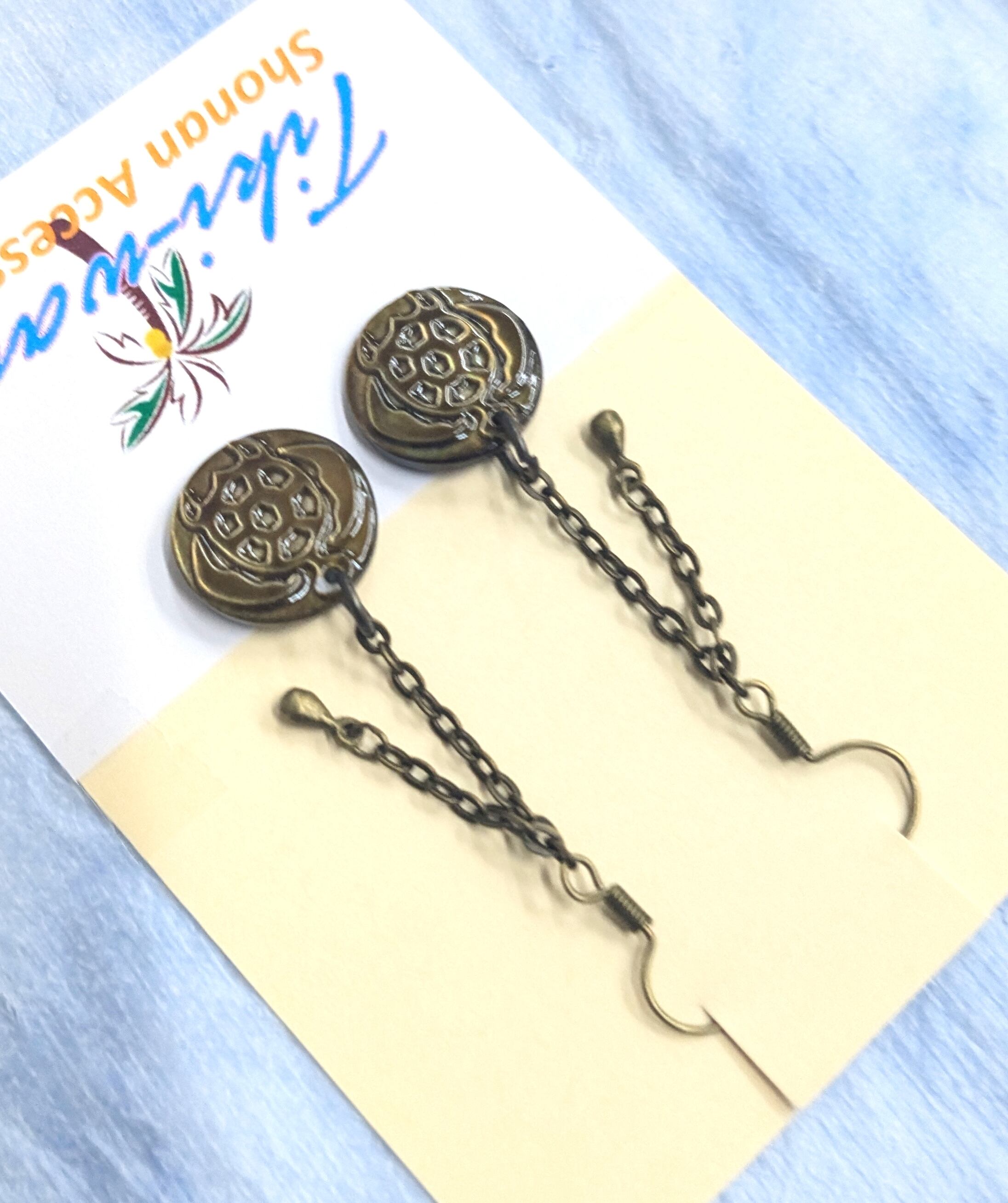 ハワイアンピアス 金古美カラーナチュラルシェル サークルホヌ&チェーン A-254