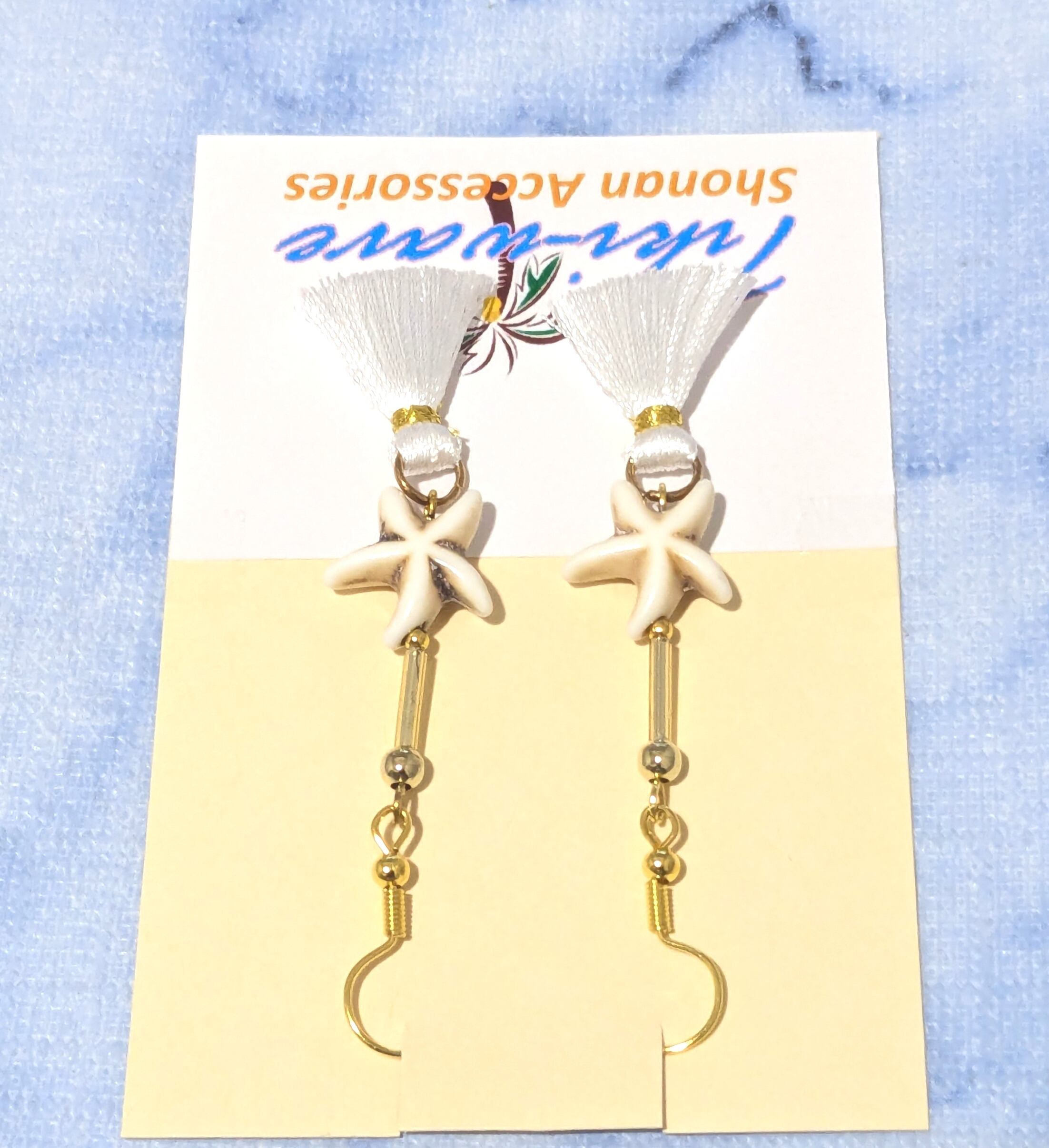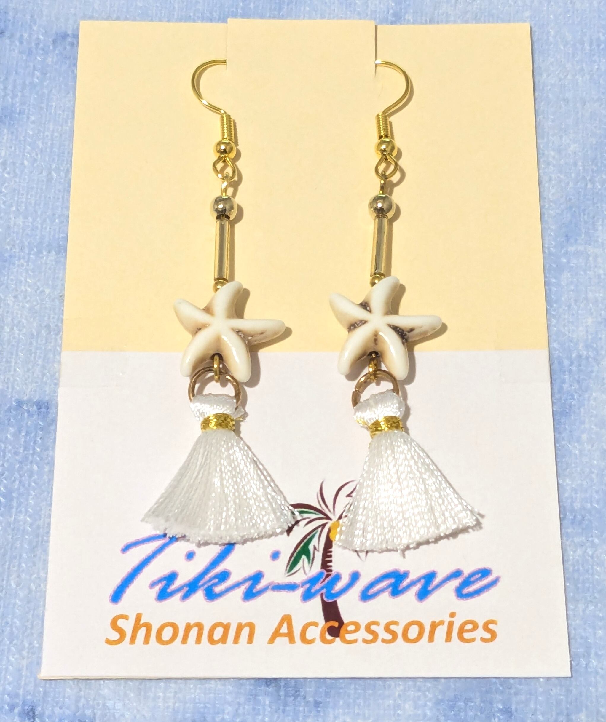 ハワイアンピアス ホワイトターコイズ スターフィッシュ &ホワイトフリンジ A-256