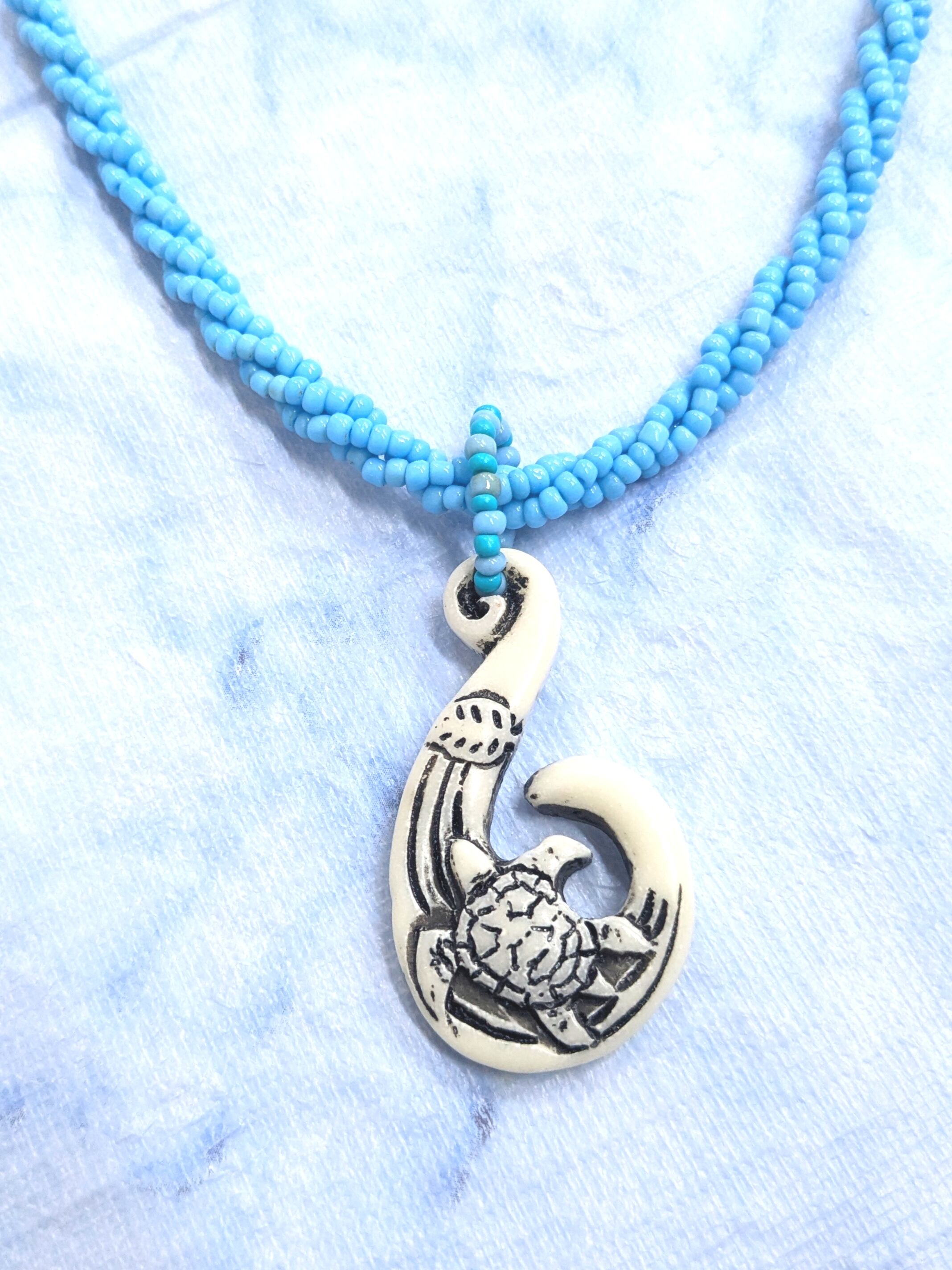 ハワイアンネックレス ホワイトカラー ボーン フィッシュフック&ホヌ F-129