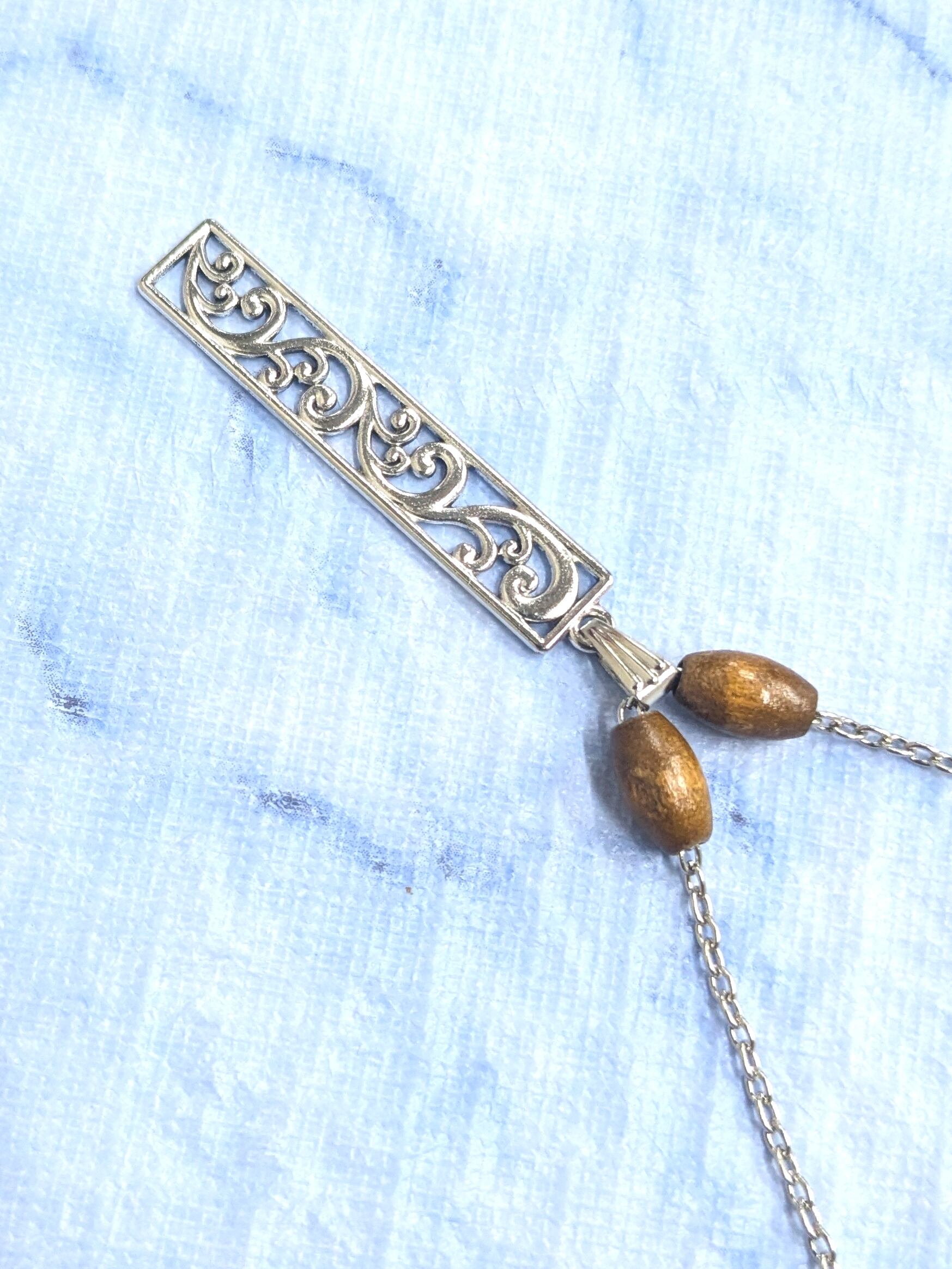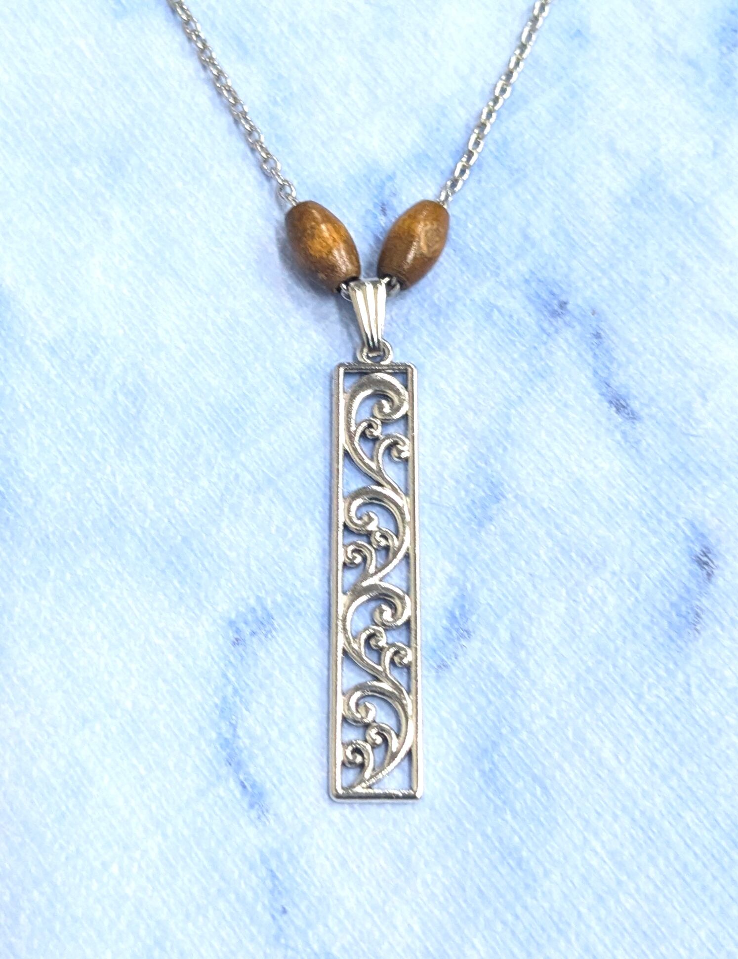 ハワイアンネックレス シルバーカラーウエーブ デザインスクエアプレート Y-812