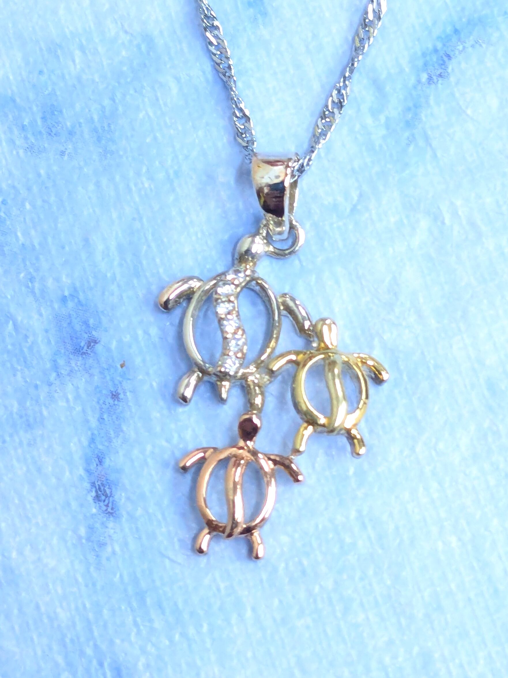 ハワイアンネックレス シルバー925 ホヌ シルバー&ゴールド &ピンクゴールド 3カラー H-223