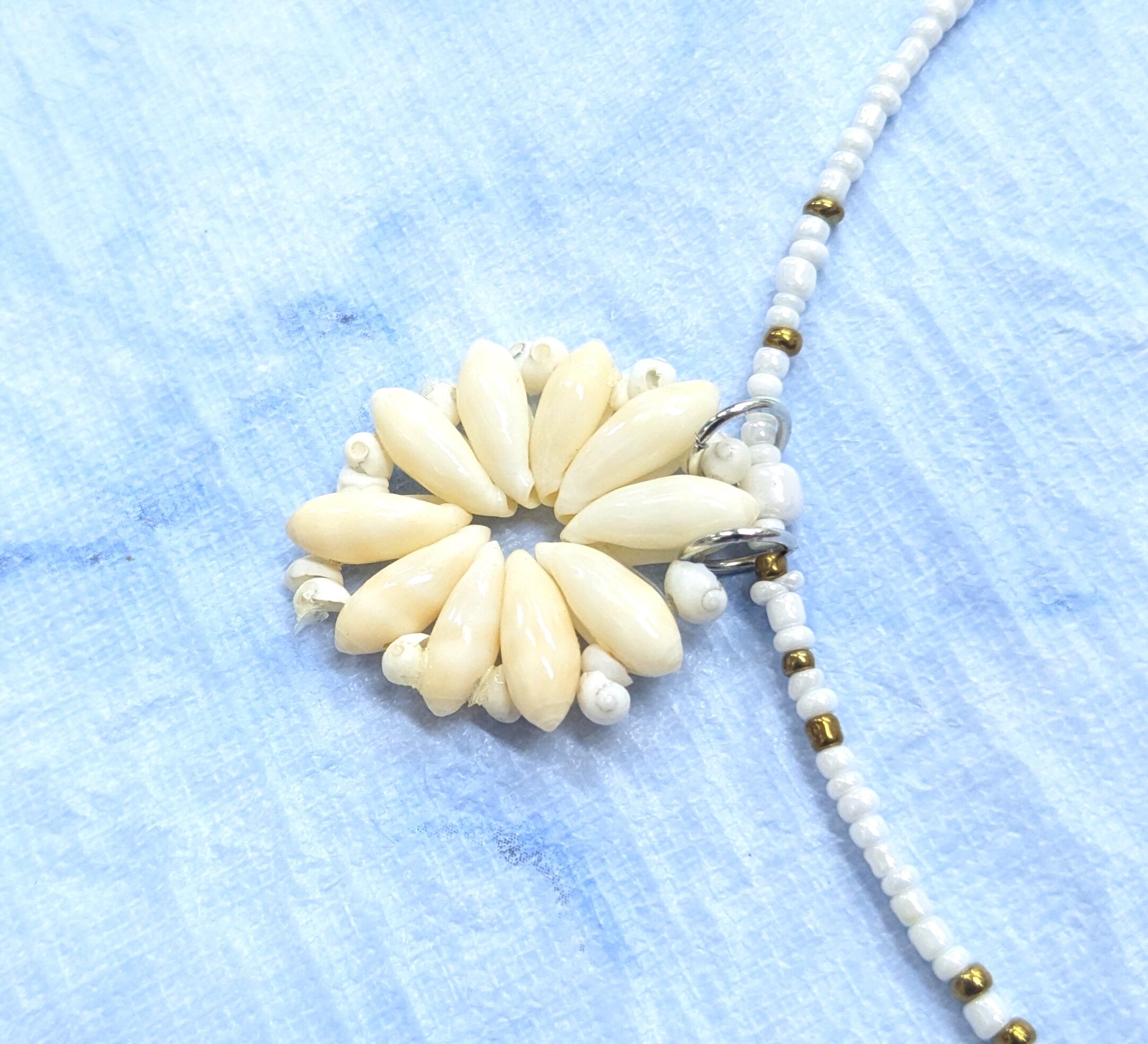 ハワイアンネックレス 天然シェル 巻き貝 & モンゴシェル ホワイトビーズ S-394