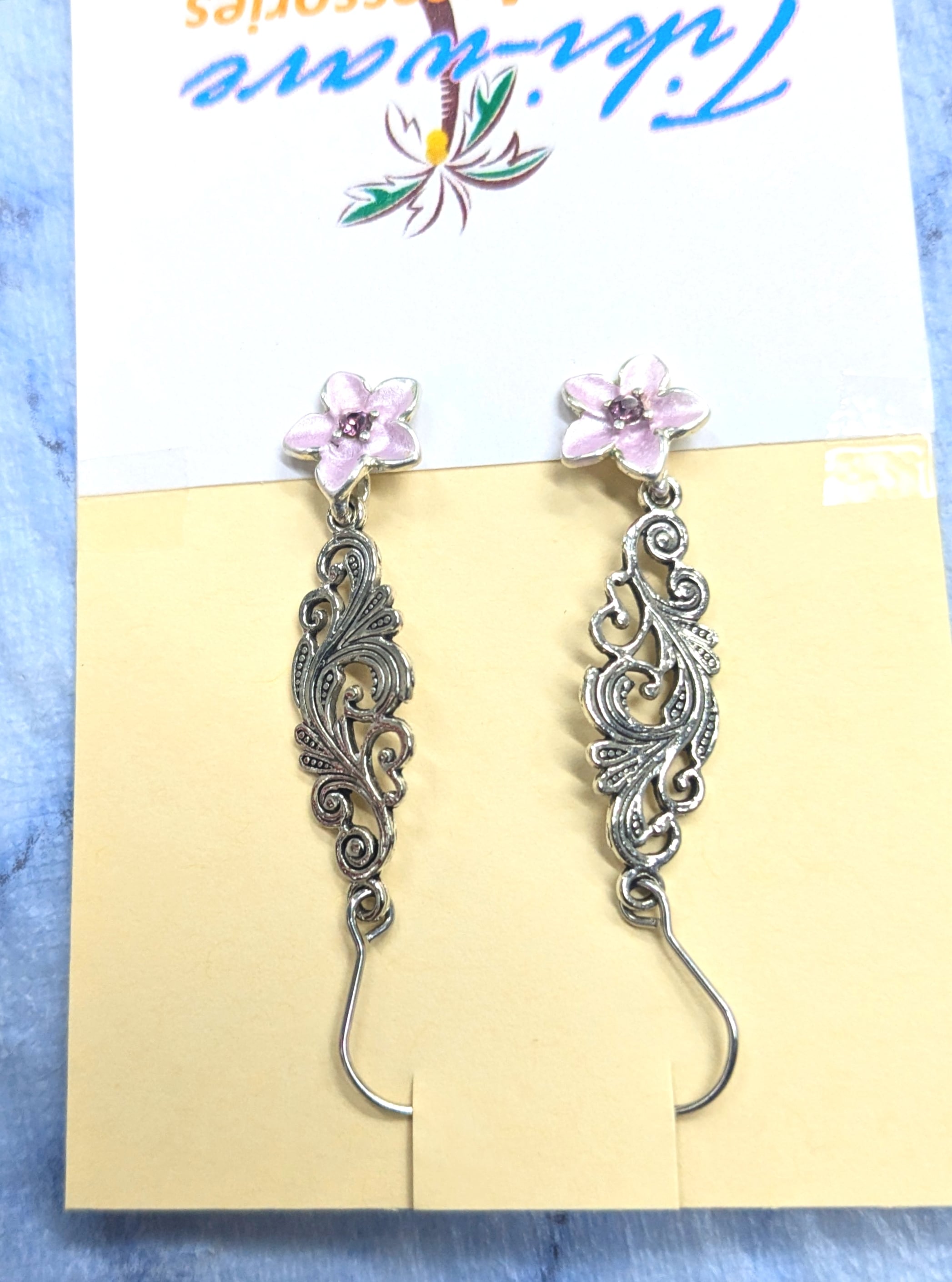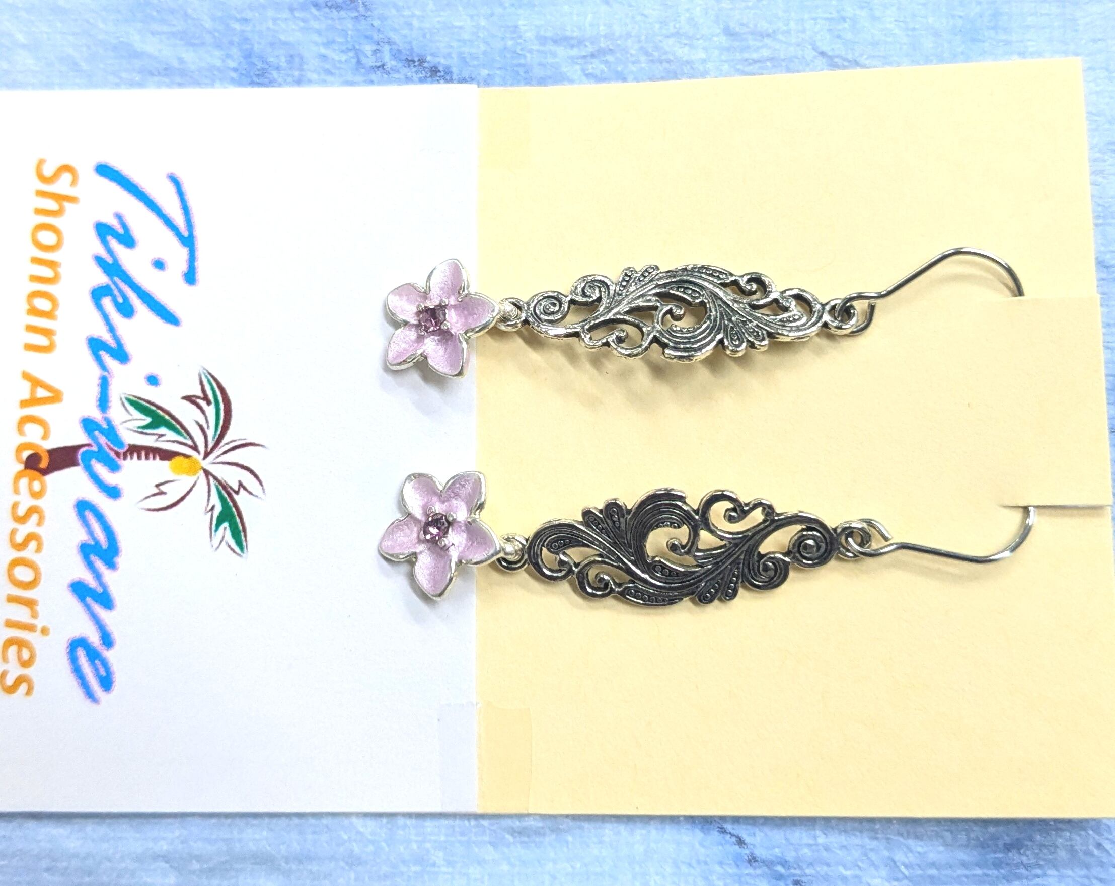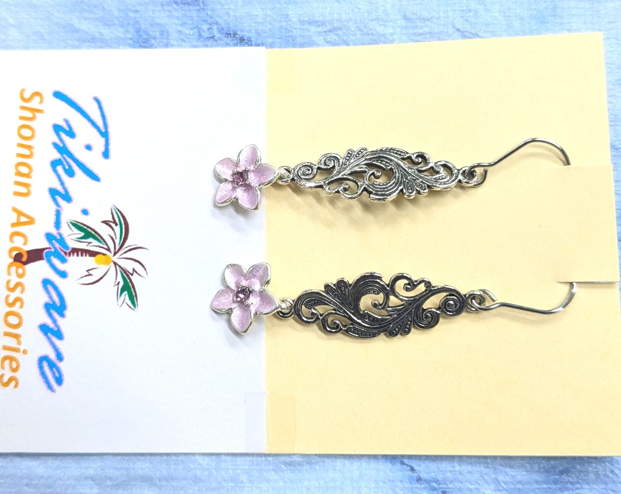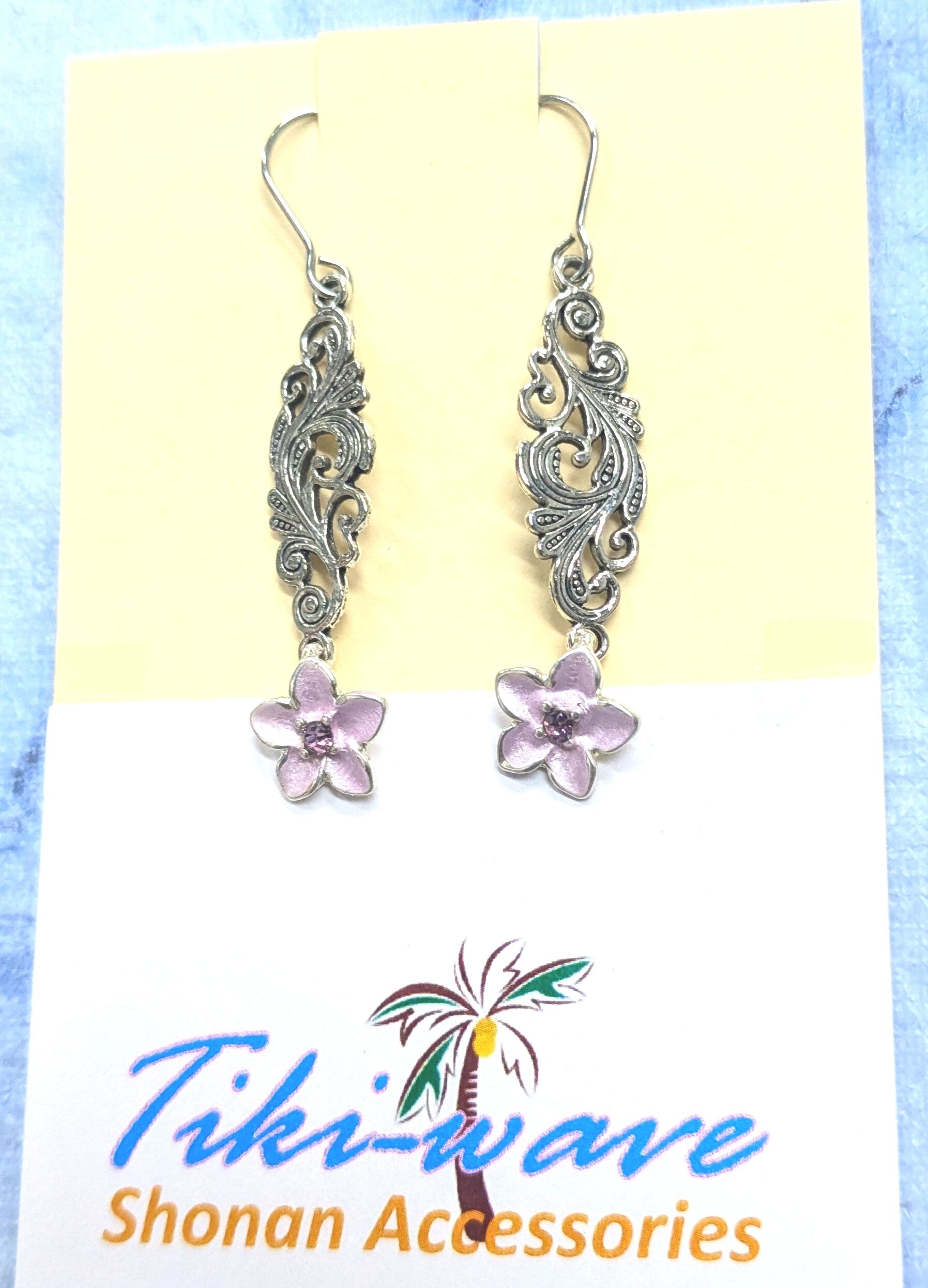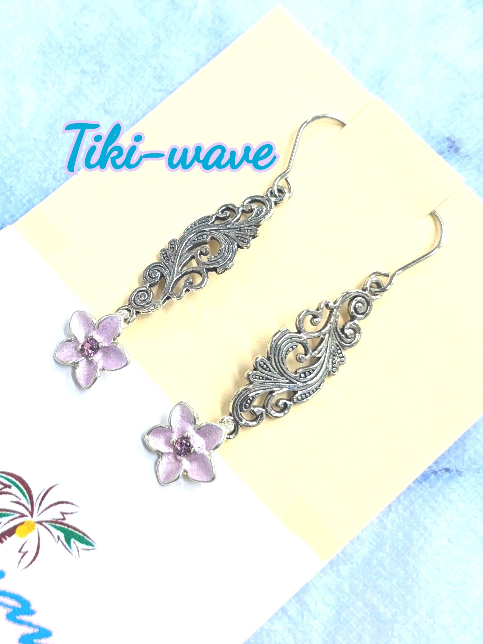 ハワイアンピアス ラベンダーカラープルメリア & シルバーウエーブプレート A-263