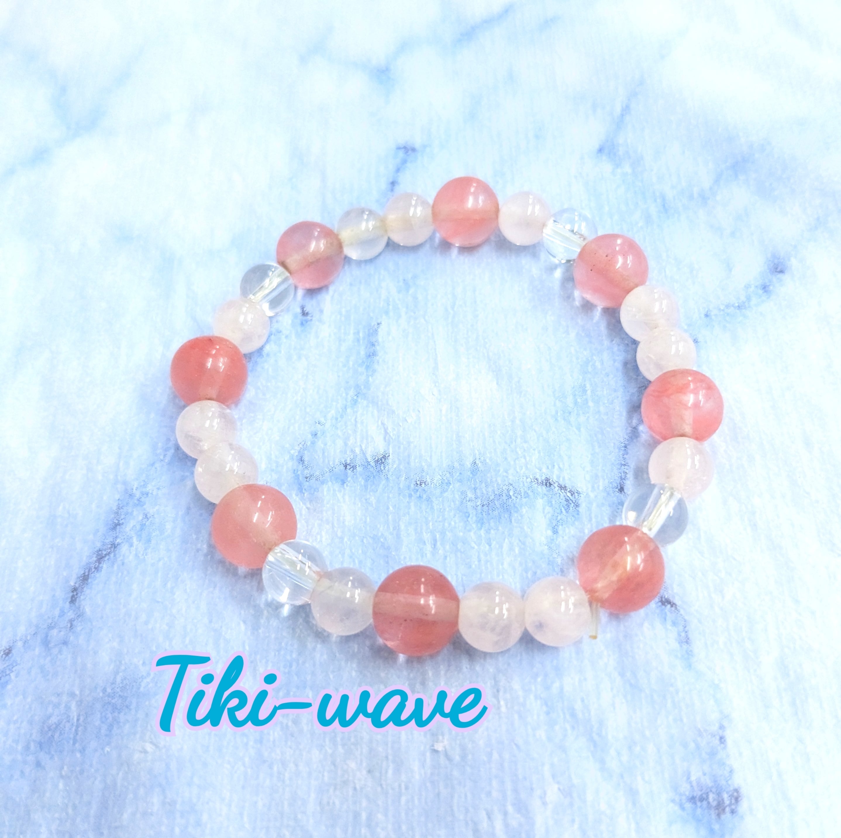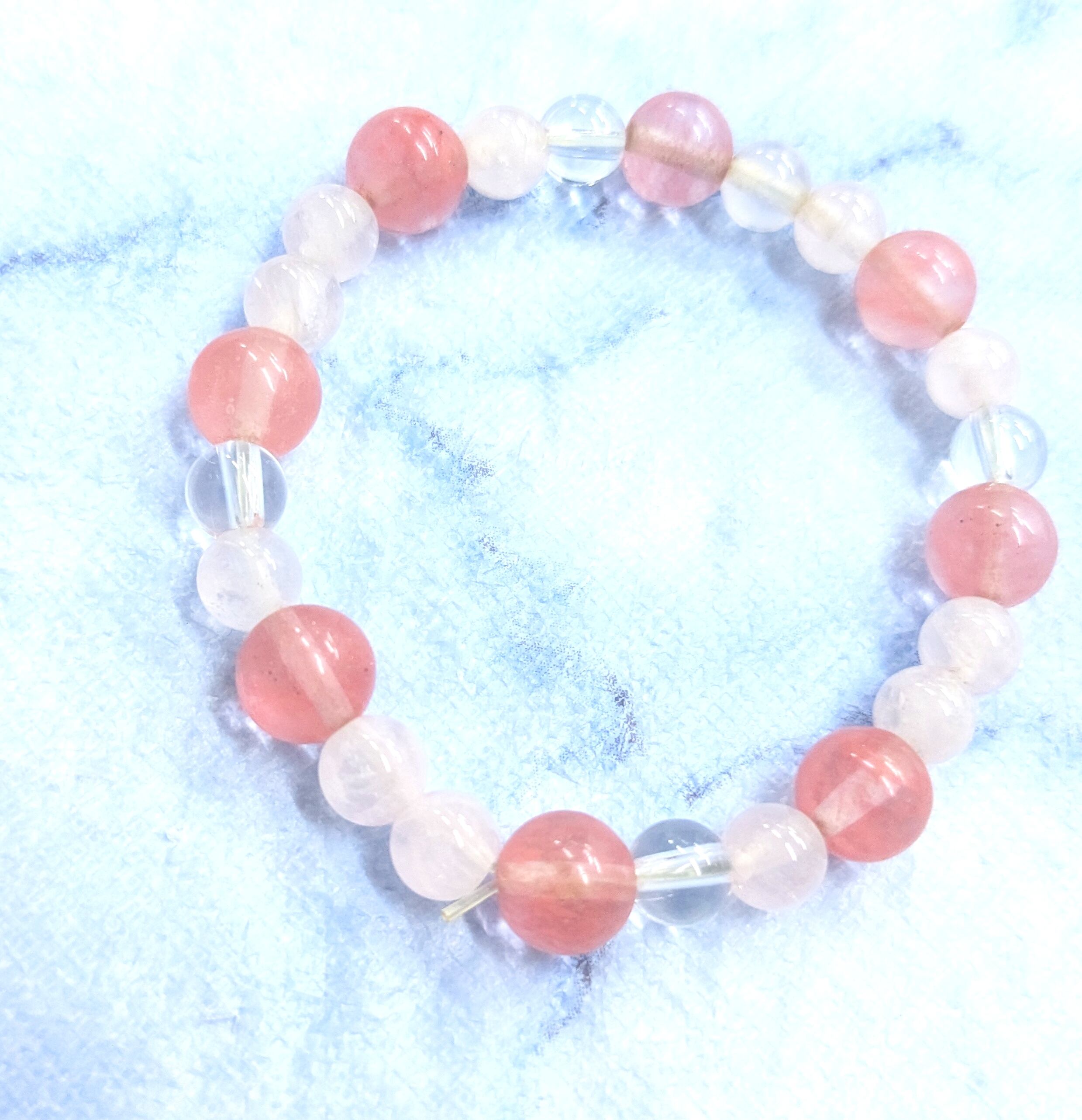 レディースブレス チェリークオーツ & ローズクォーツ クリアクリスタル M-531