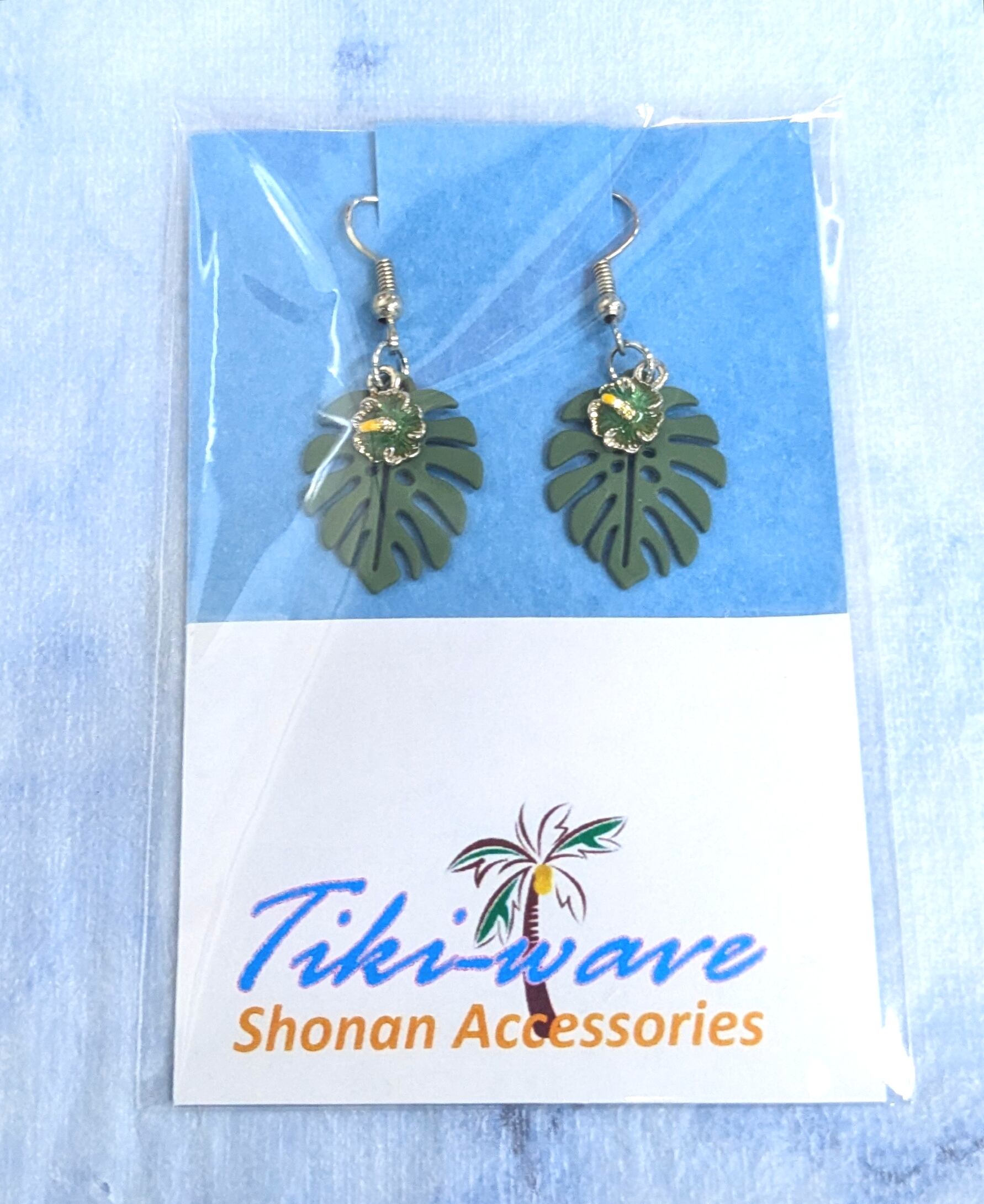 ハワイアンピアス グリーンカラー モンステラ & ハイビスカス A-264