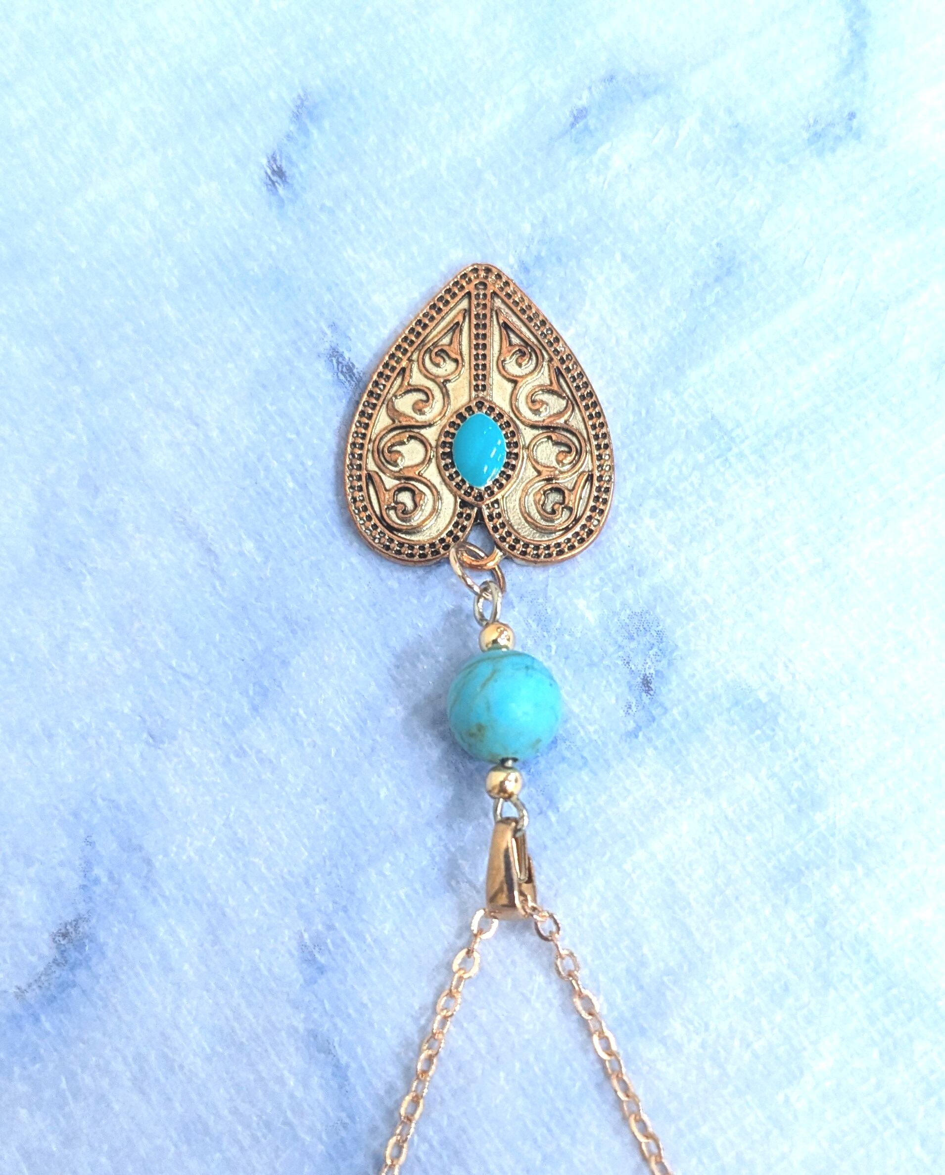 レディースネックレス ピンクゴールド ハート & ブルーターコイズ T-941