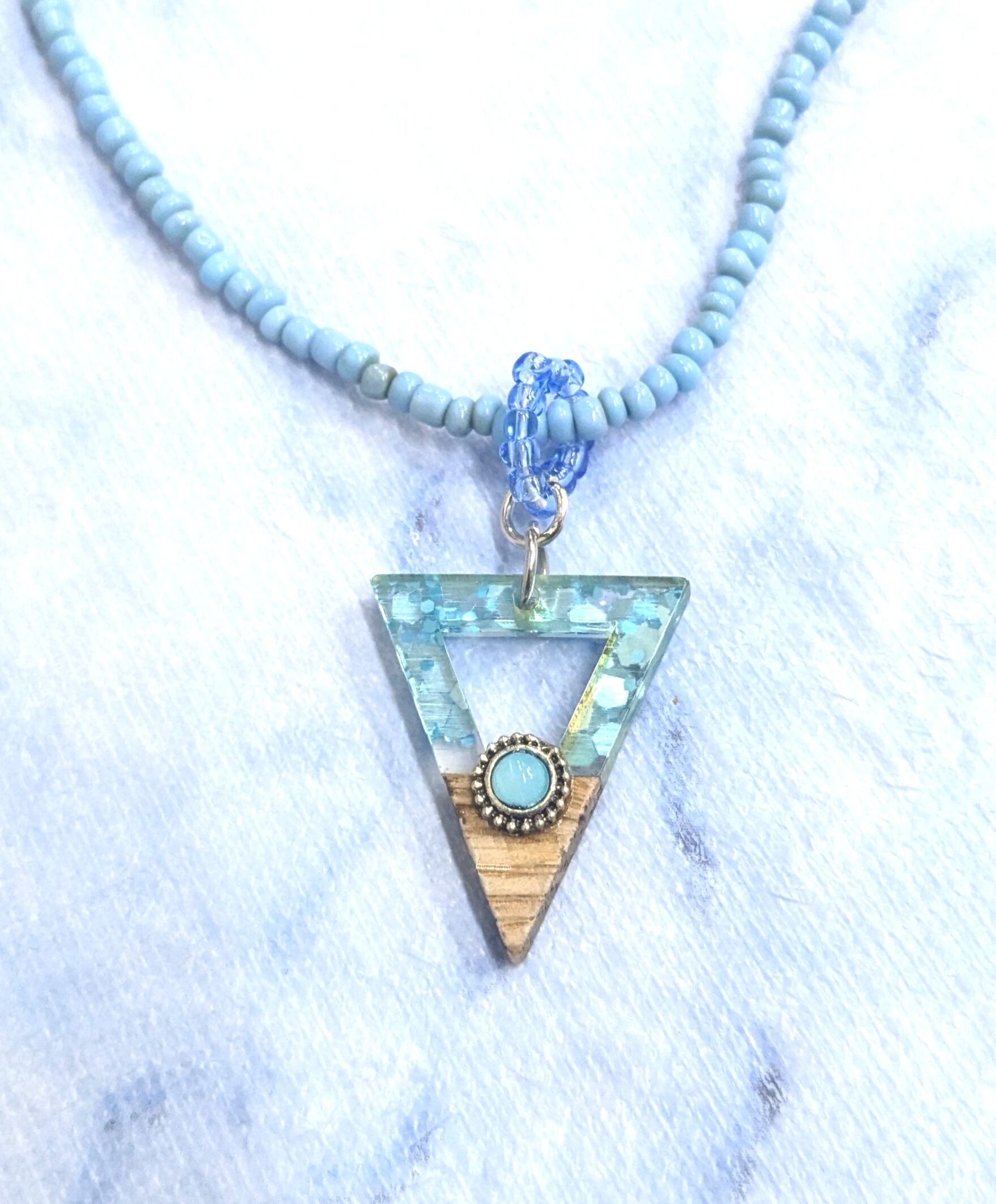 メンズネックレス アクアブルーカラー&ウッド トライアングル ターコイズビーズ Y-717