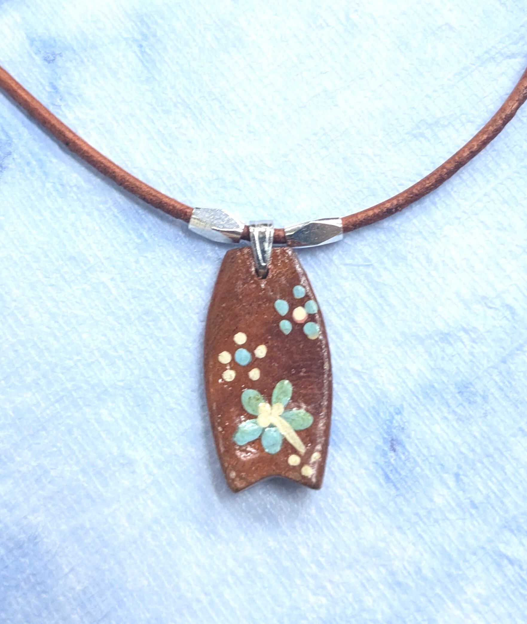 ハワイアンネックレス 天然ウッド ボディーボード & ブラウン本革紐 B-394