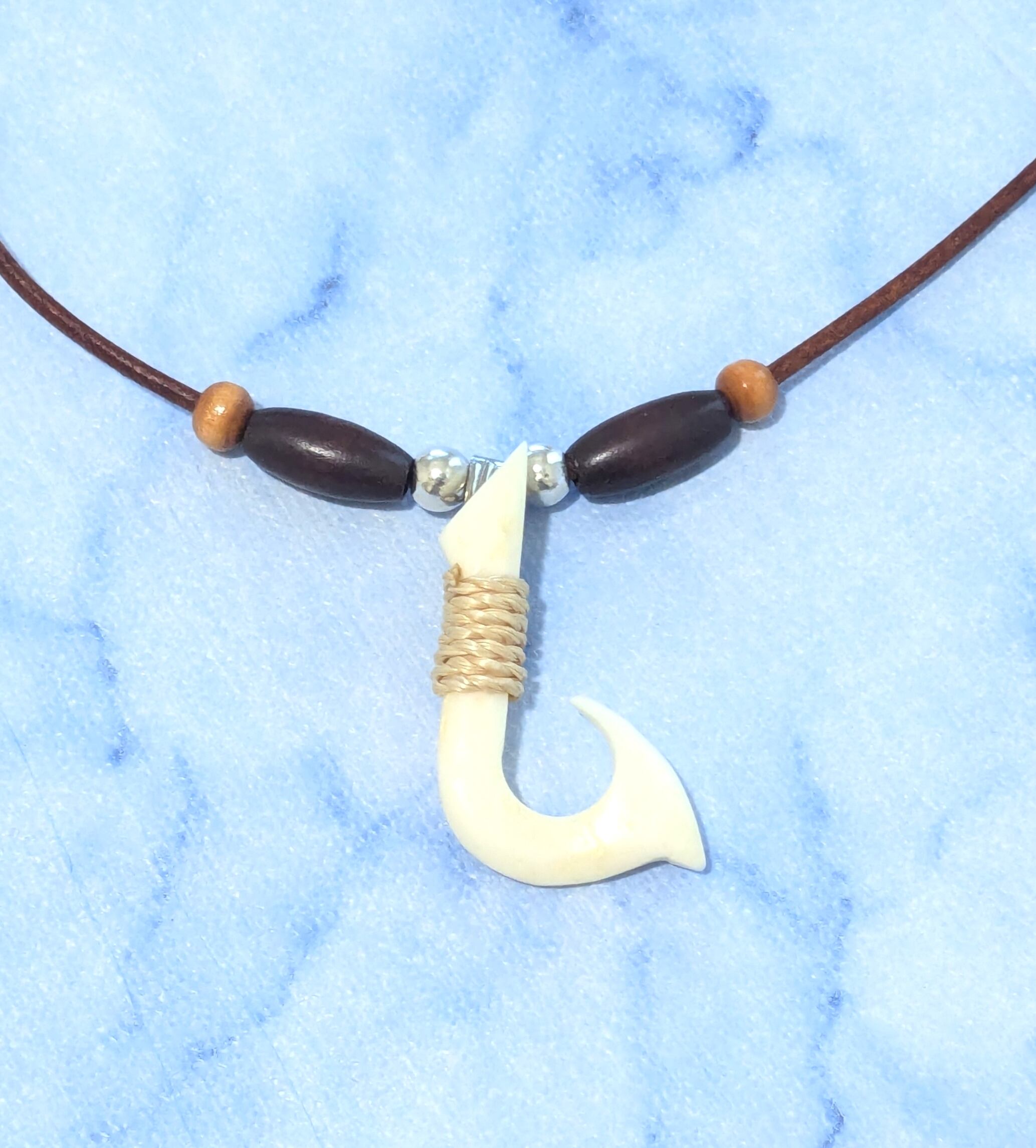 ハワイアンネックレス ホワイトカラー ボーン フィッシュフック & 本革紐 F-130
