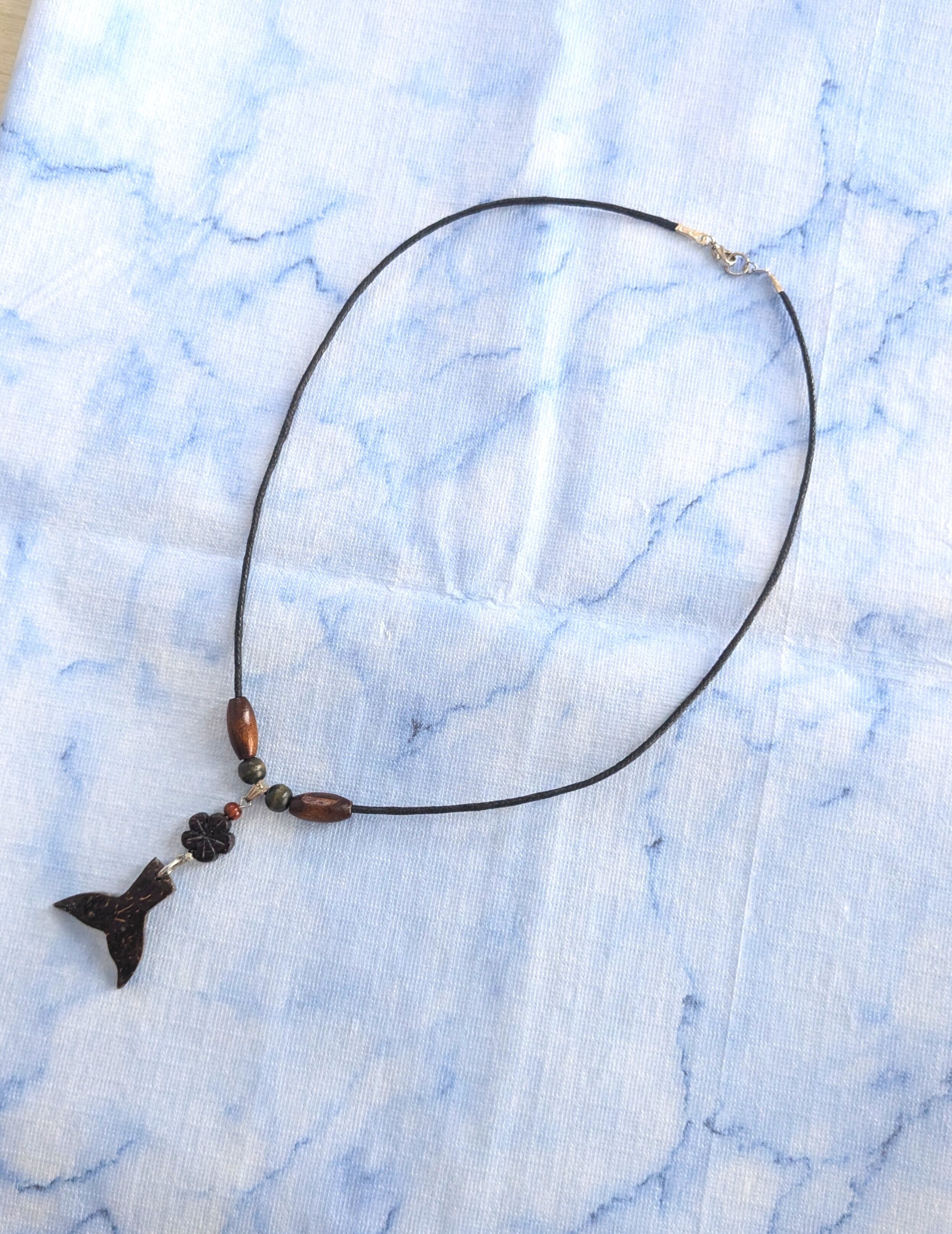ハワイアンネックレス 椰子ウッド ホエールテール & プルメリア W-900
