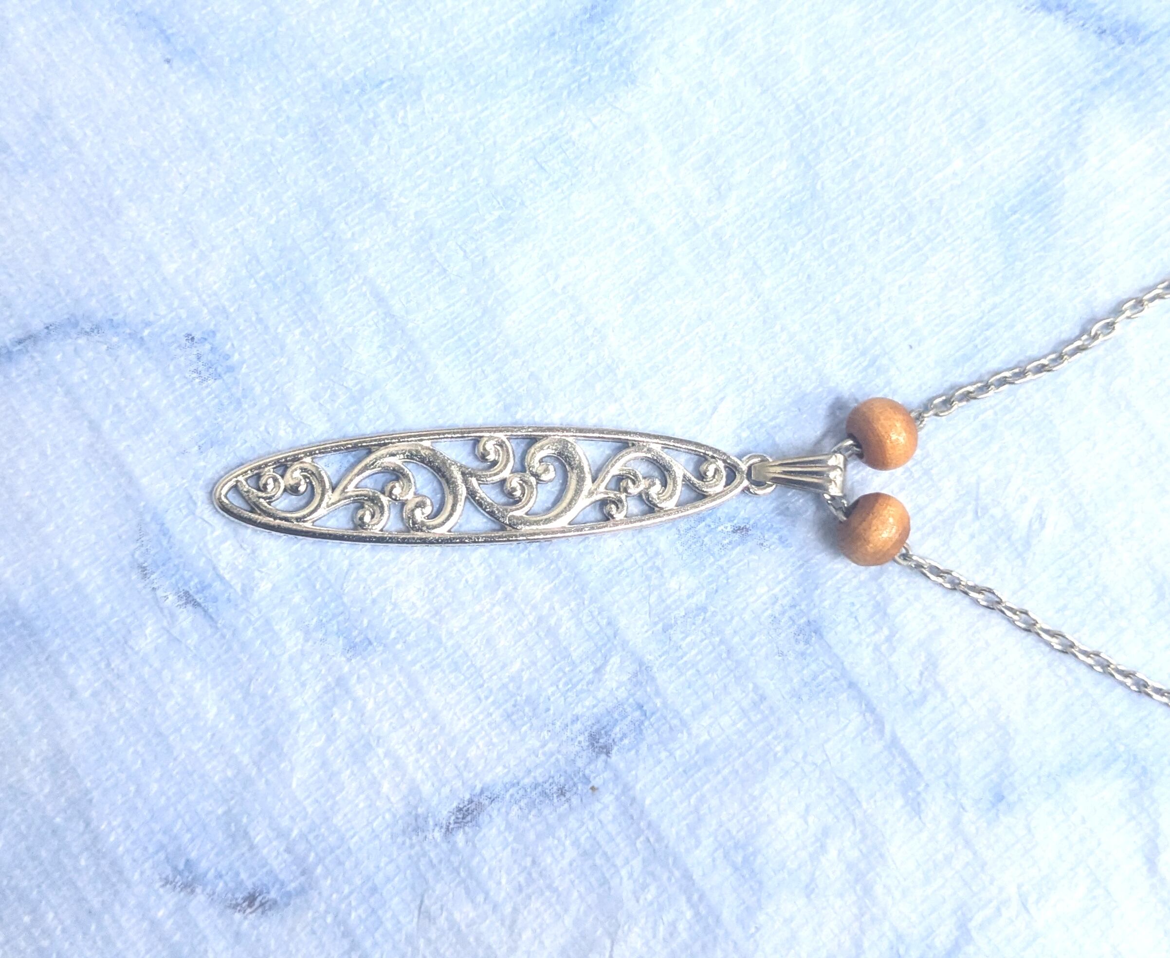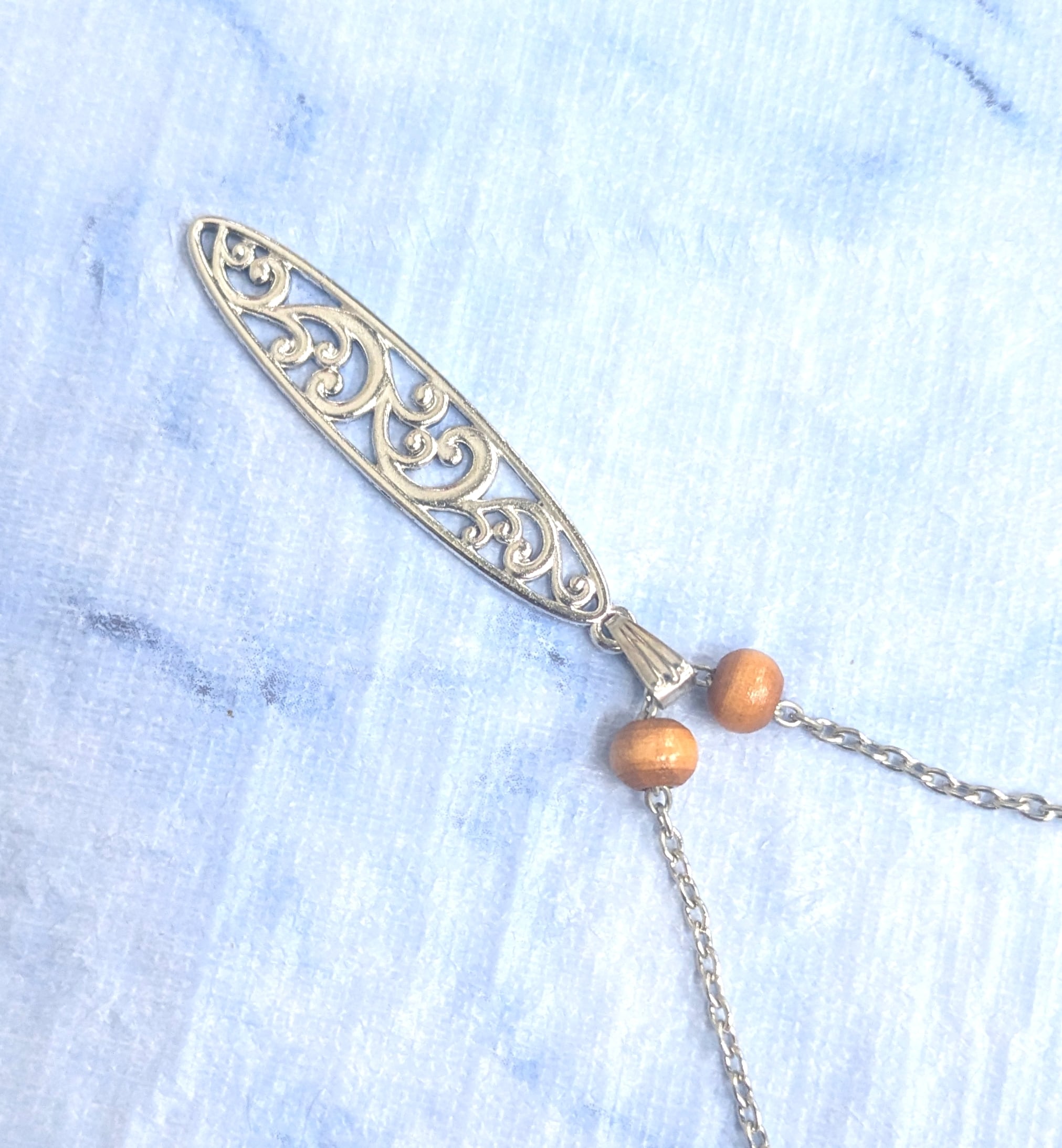 ハワイアンネックレス シルバーカラーウエーブ デザインオーバルプレート Y-813