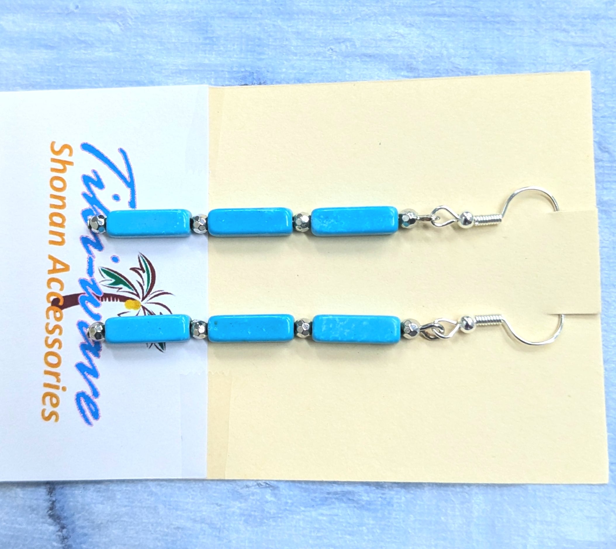 ファッションピアス ブルーカラー 3連スティック ターコイズ&シルバー A-393