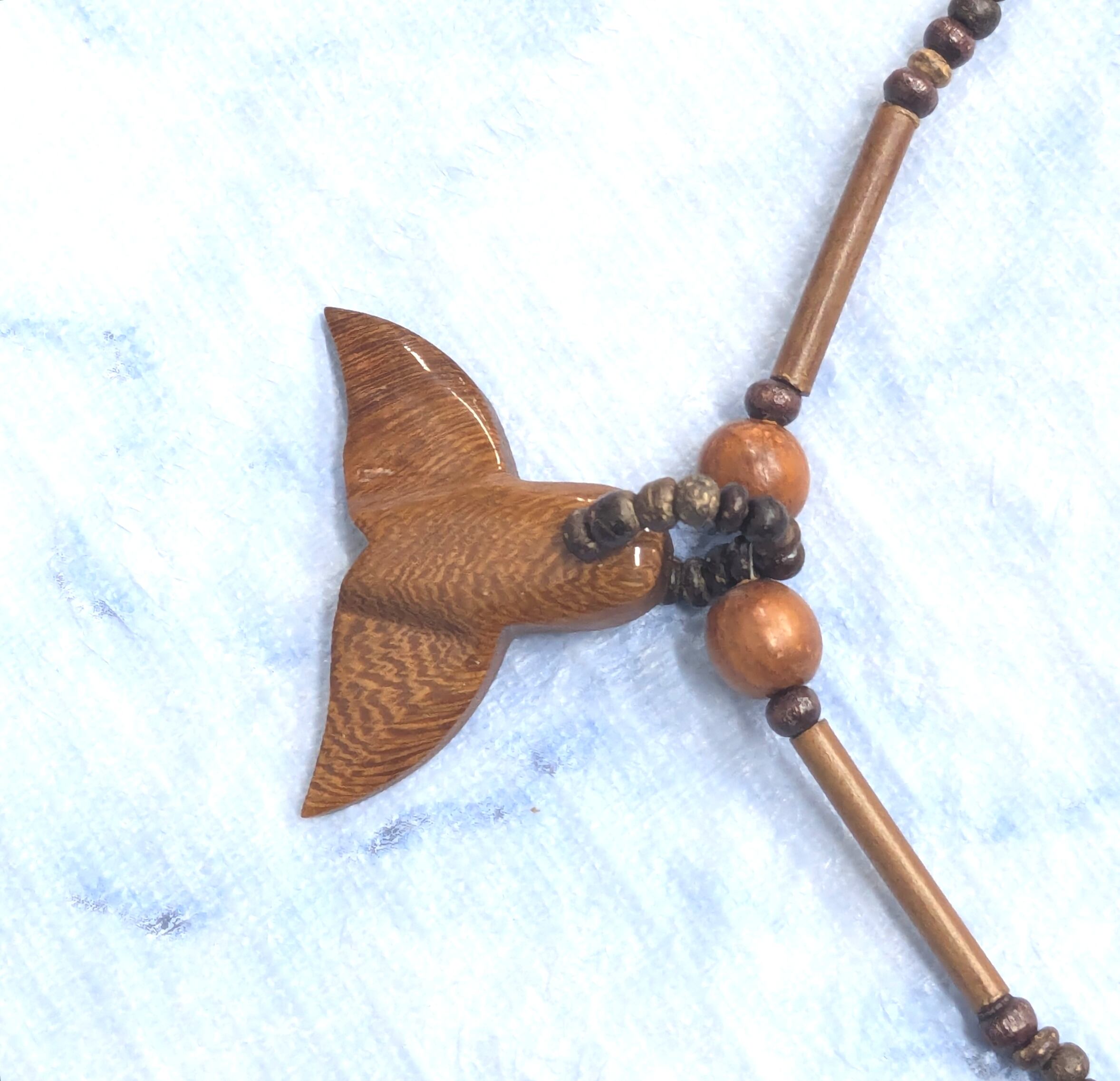 ハワイアンネックレス ハワイウッド ホエールテール & ウッドビーズ W-902