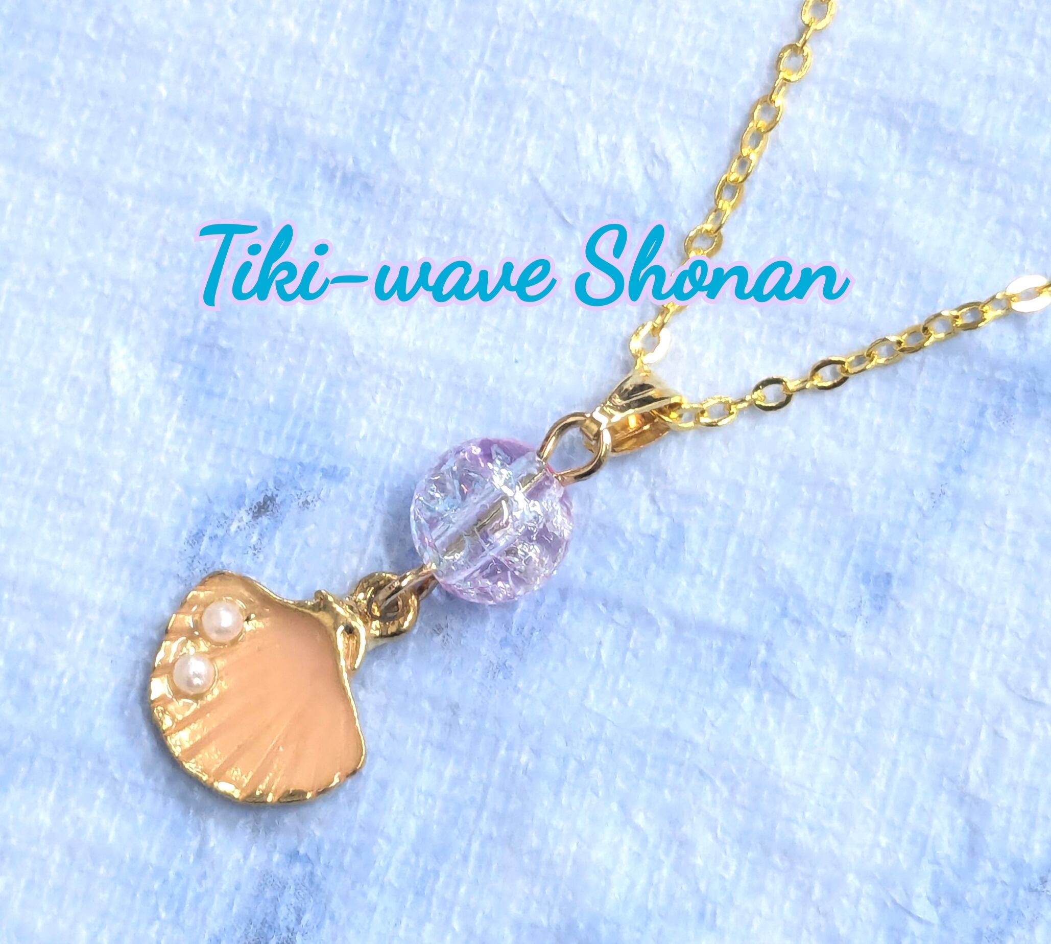 ハワイアンネックレス サーモンピンク ゴールドカラー シェル&クリスタル S-398