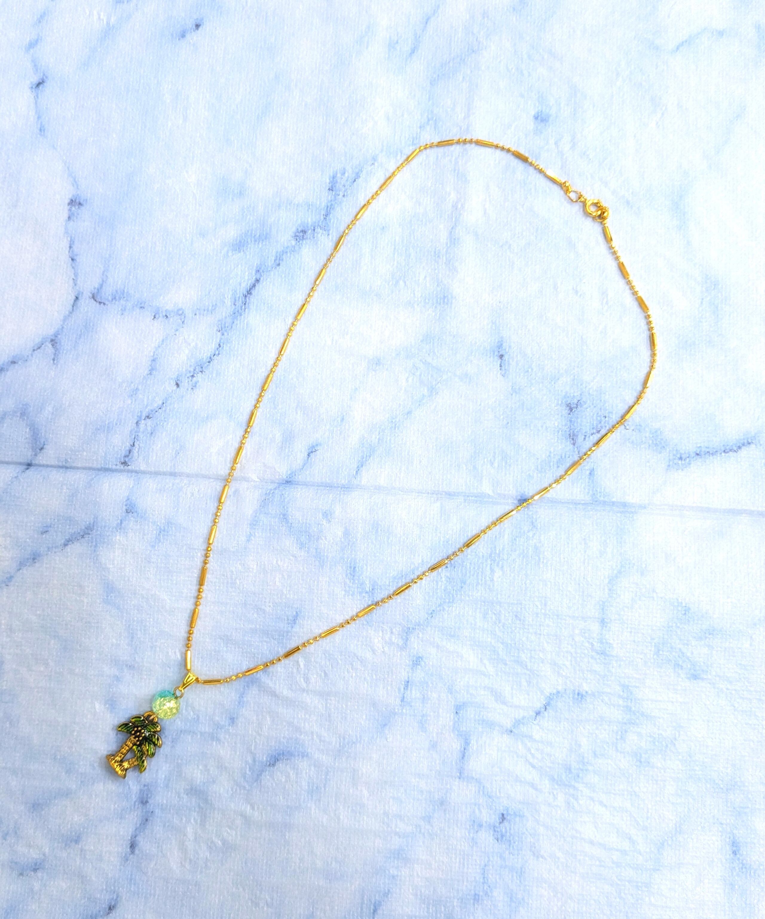 ハワイアンネックレス グリーン&ゴールドカラー 椰子 クオーツボール付き U-518