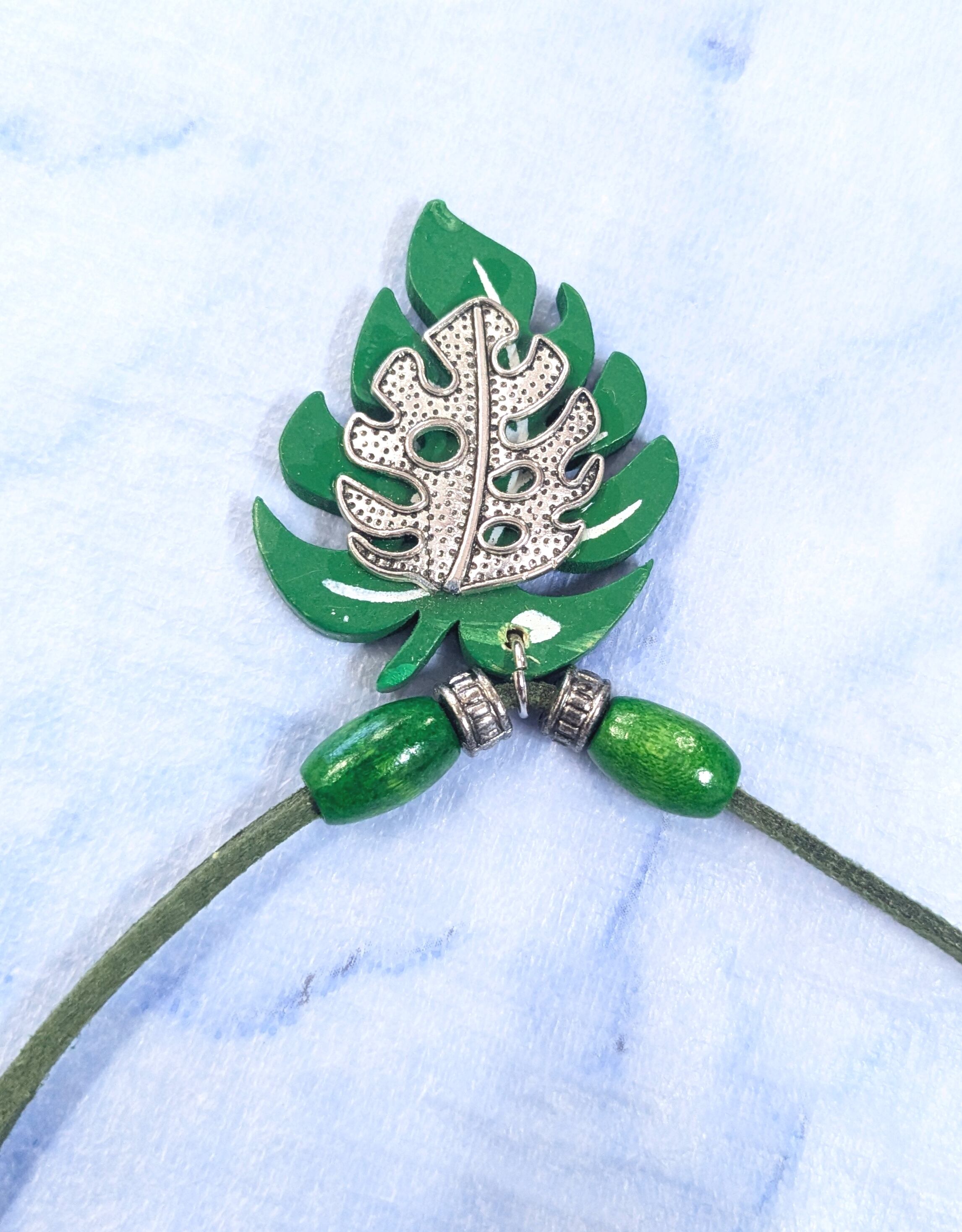 ハワイアンネックレス ナチュラルウッド & シルバーカラー 2連モンステラ M-540