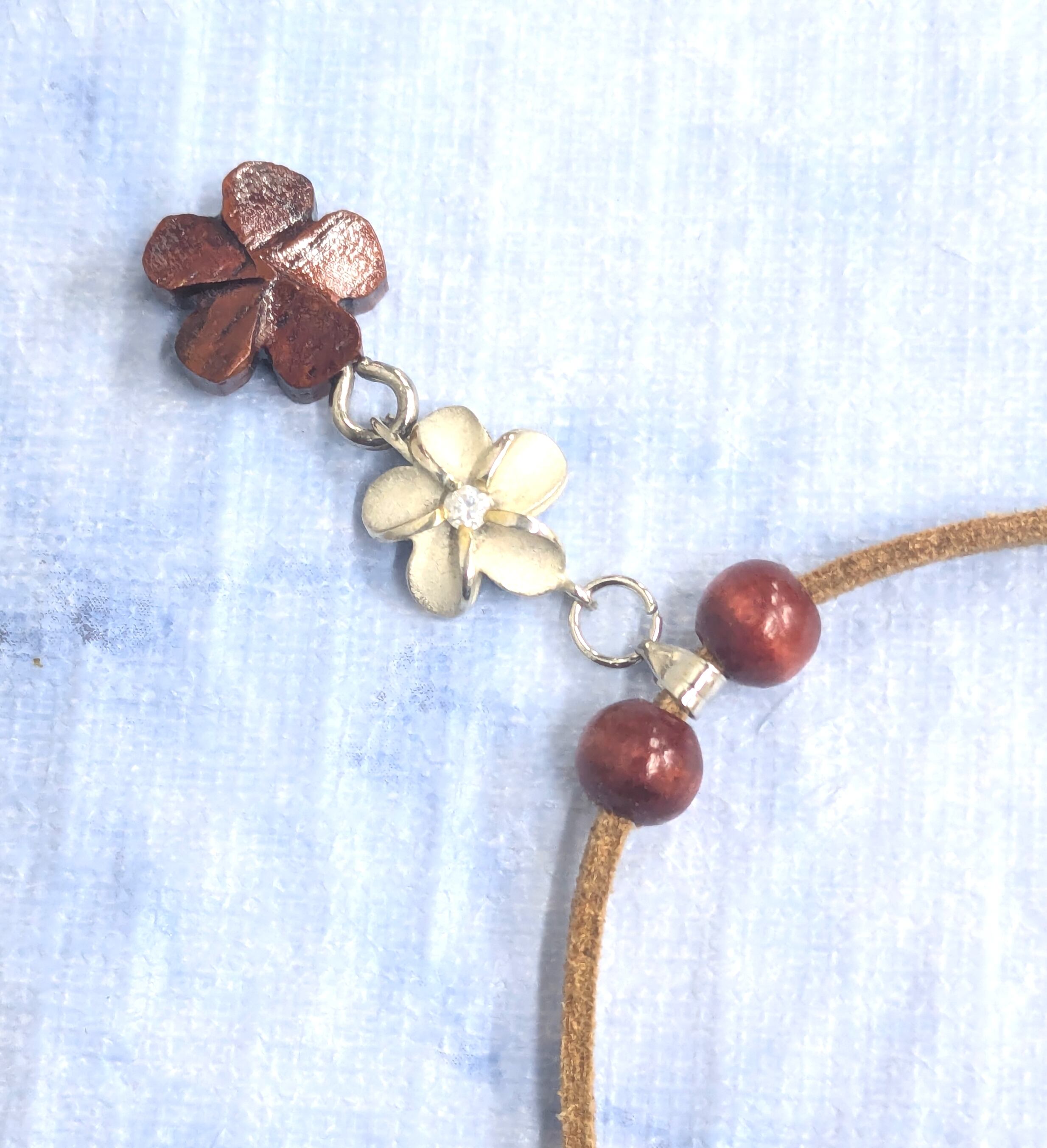 ハワイアンネックレス 天然ハワイアンウッド&シルバー 2連プルメリア P-710