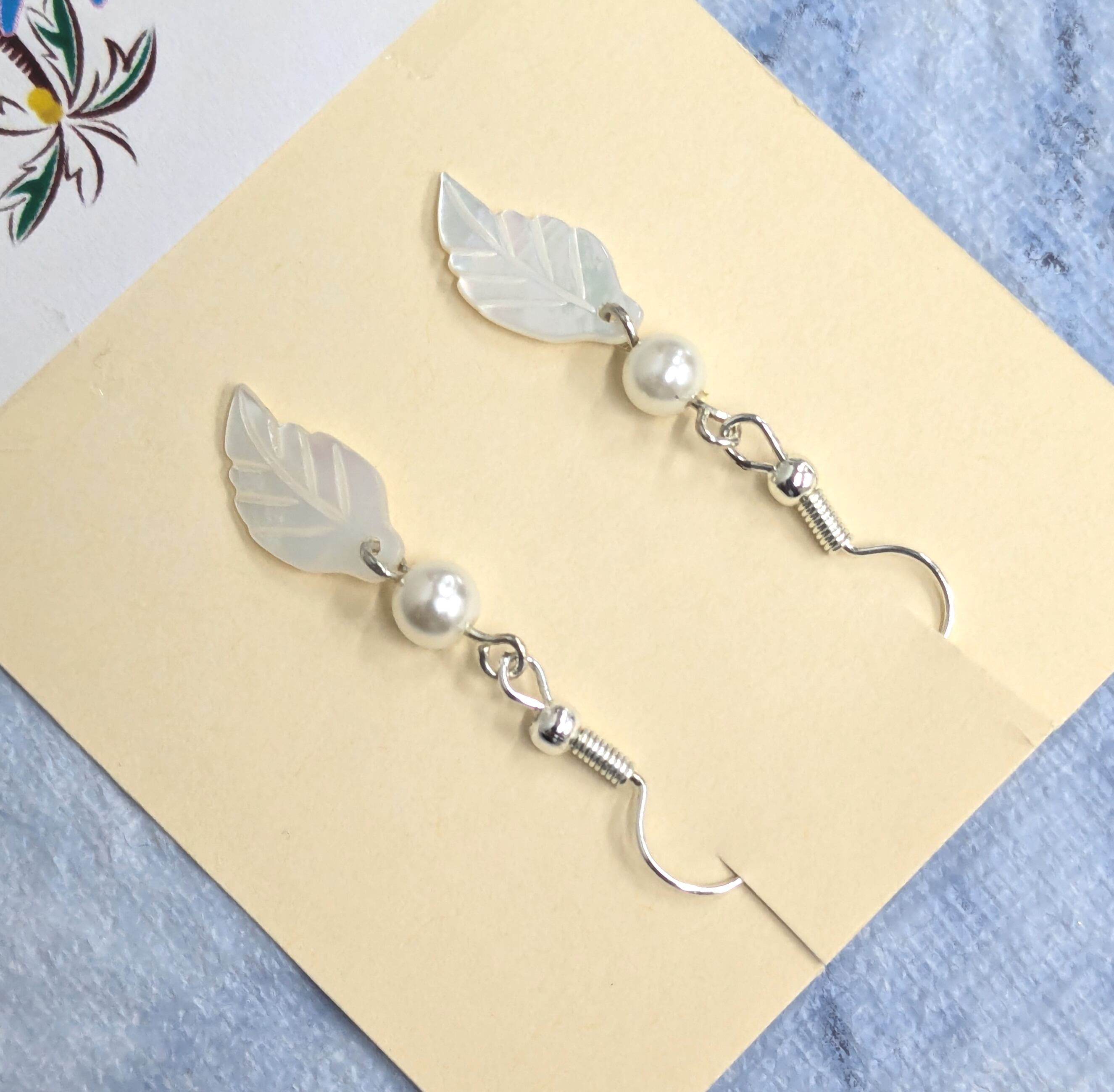 ハワイアンピアス ホワイトカラー リーフシェル & ホワイトパールボール A-280