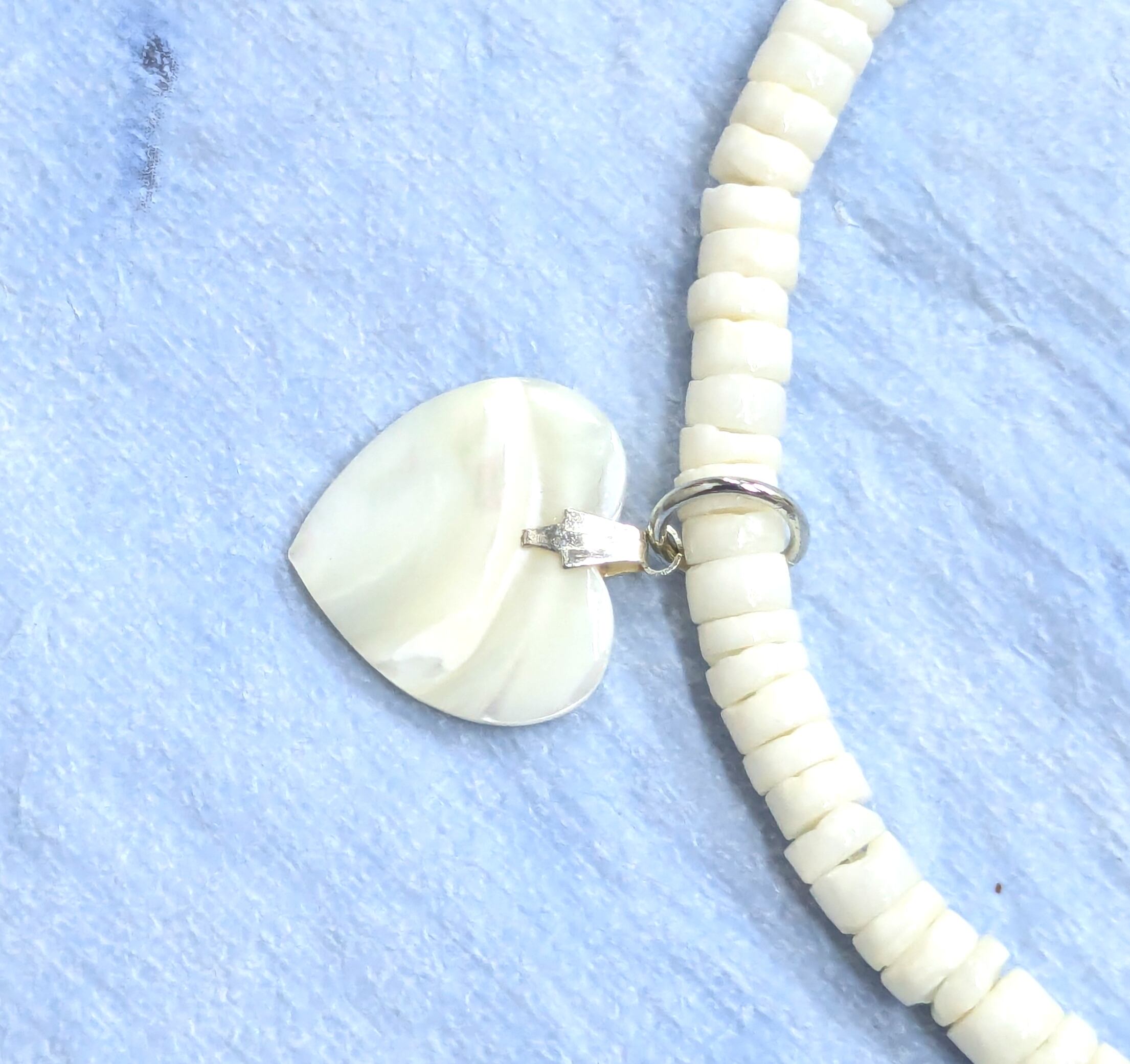 ハワイアンネックレス 天然ホワイトシェル ハートデザイン S-399