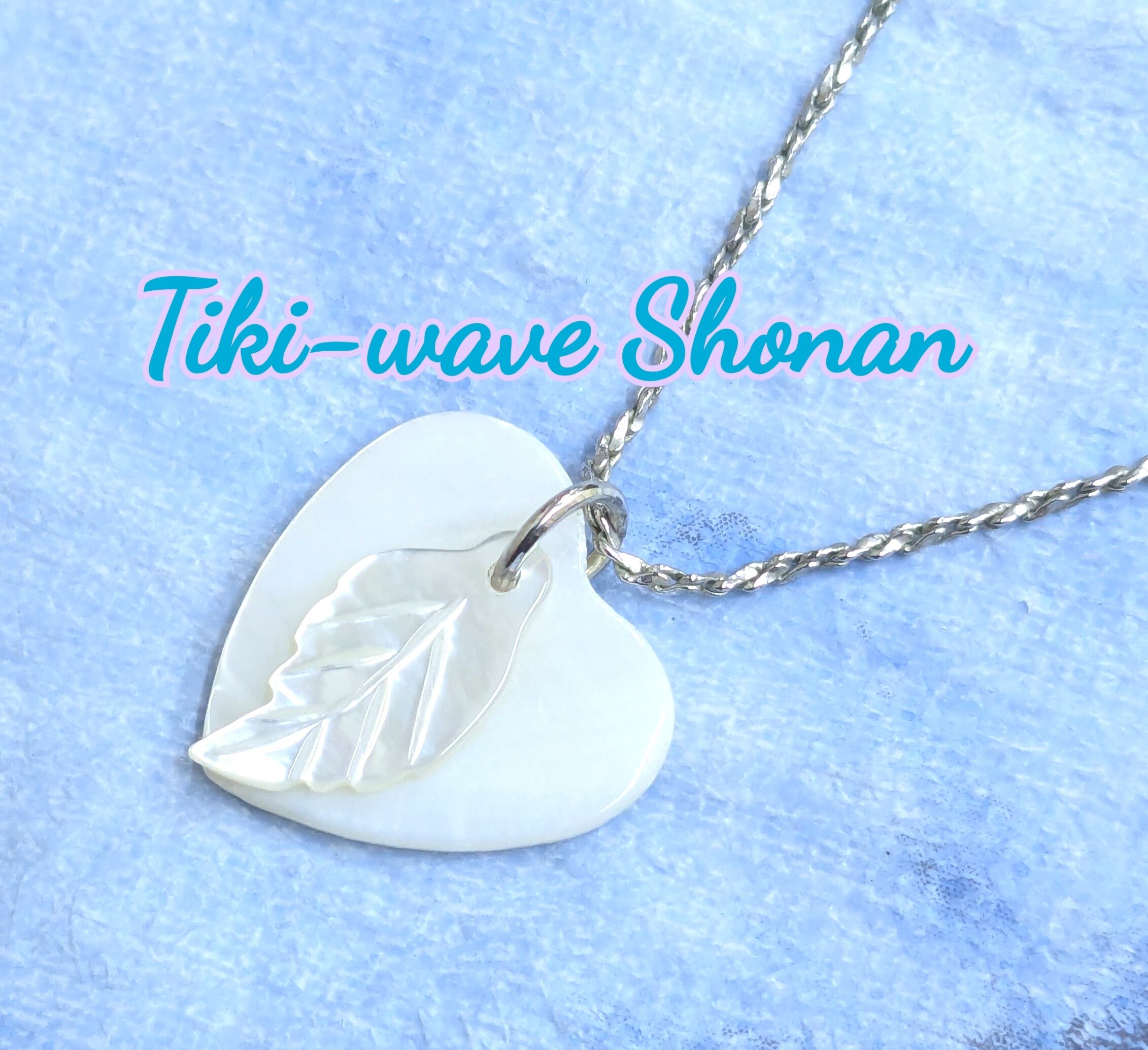 ハワイアンネックレス 天然ホワイトシェル ハート&リーフ デザイン S-401