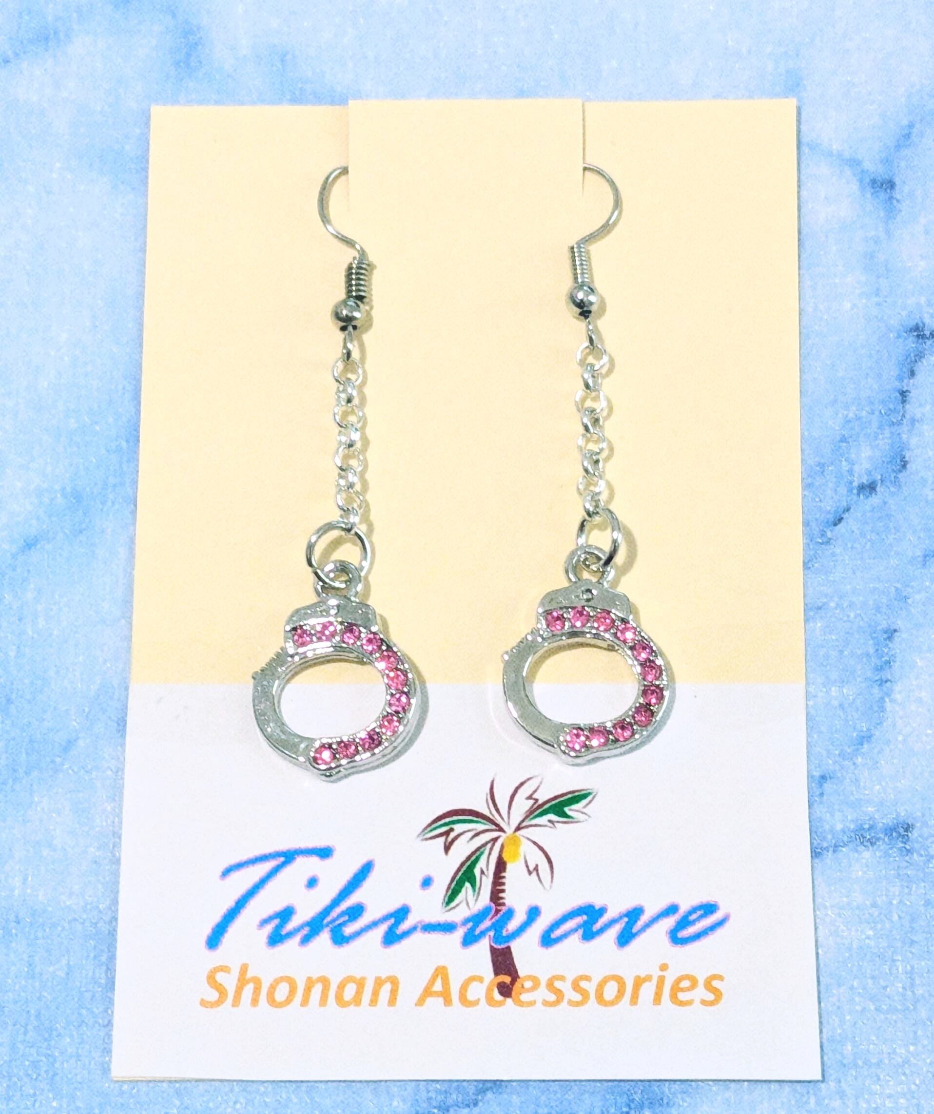 ファッションピアス ピンクカラーCZ シルバー手錠デザイン A-398