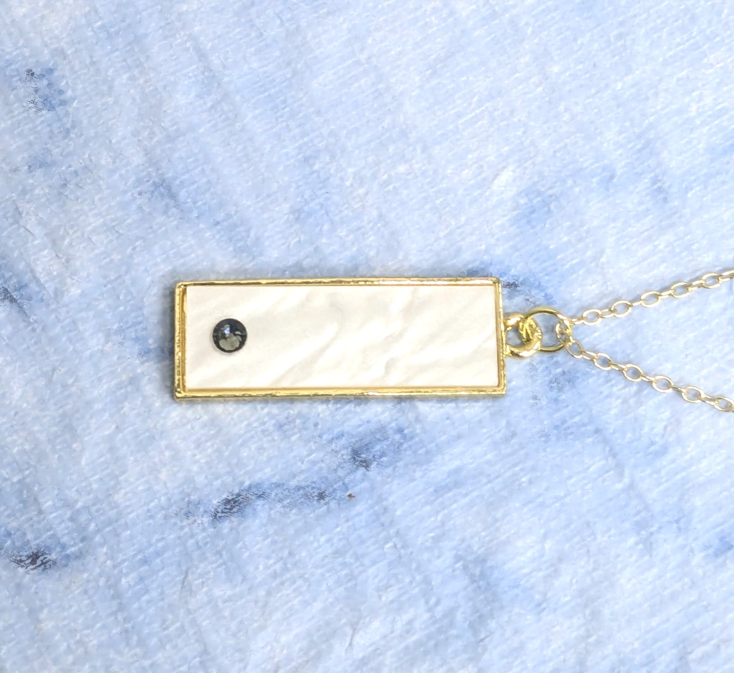 ハワイアンゴールドネックレス ホワイトパールシェル & ブラックスワロ S-404