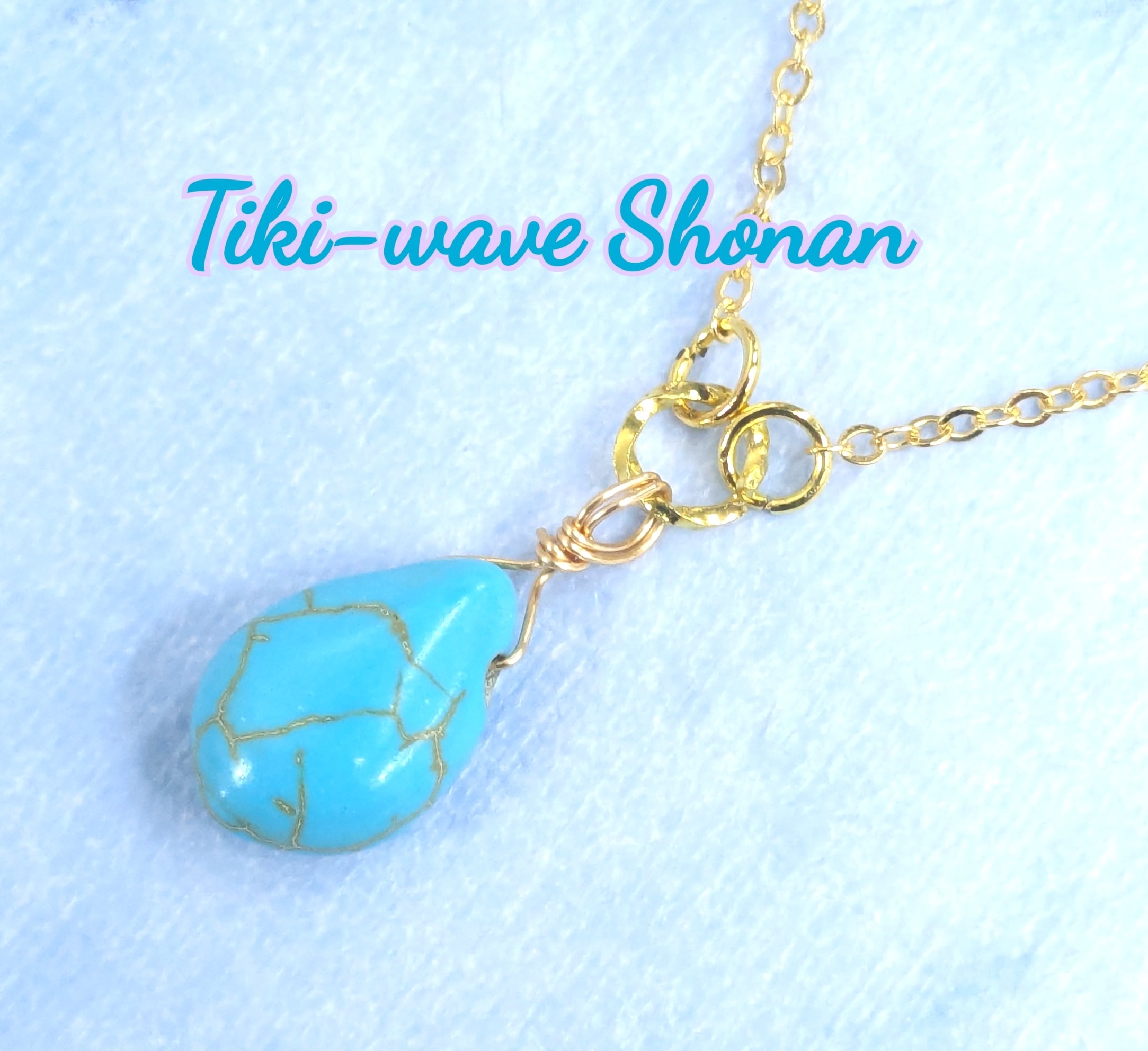 レディースネックレス ブルーターコイズ ティアドロップ&ゴールド T-947