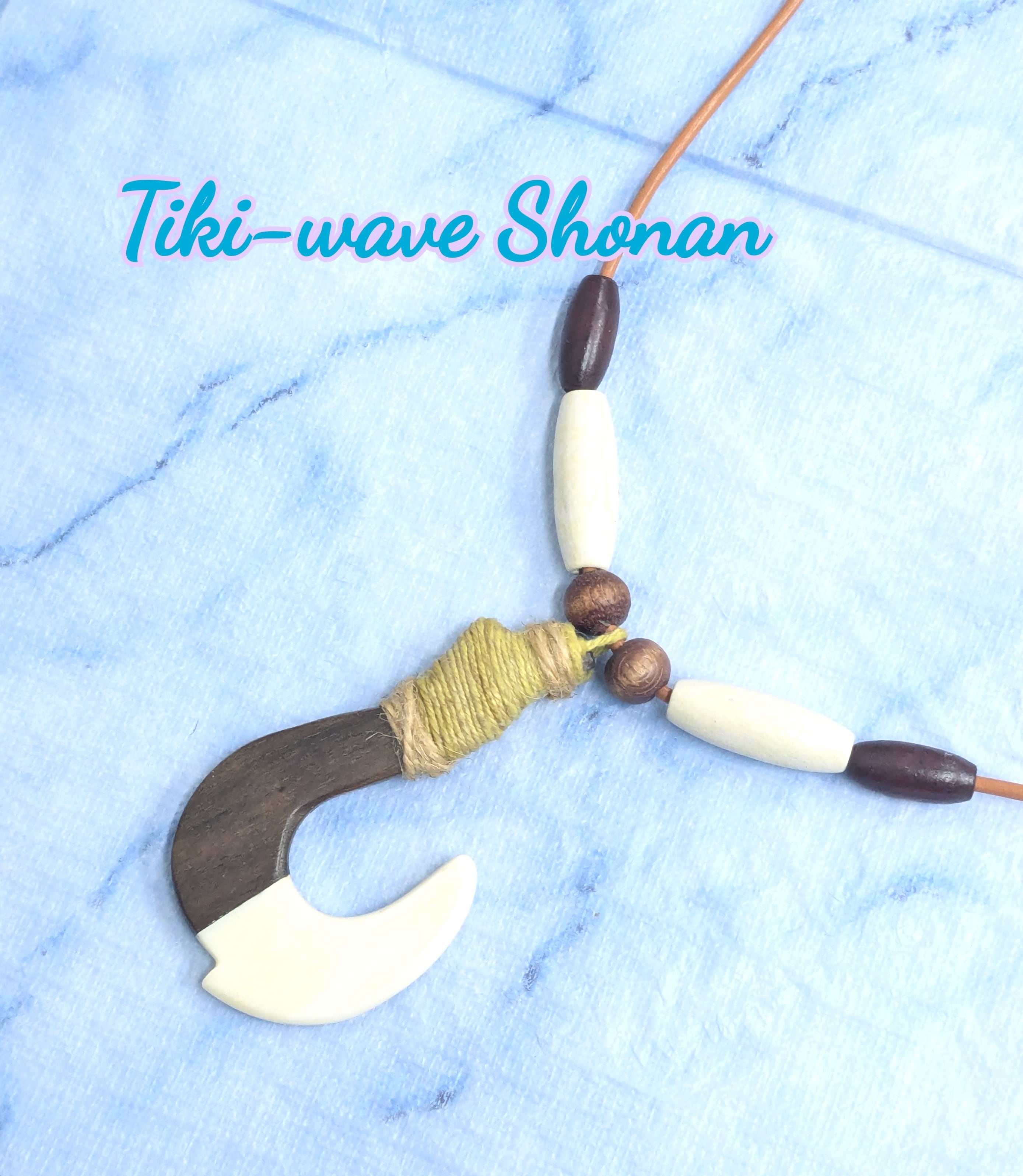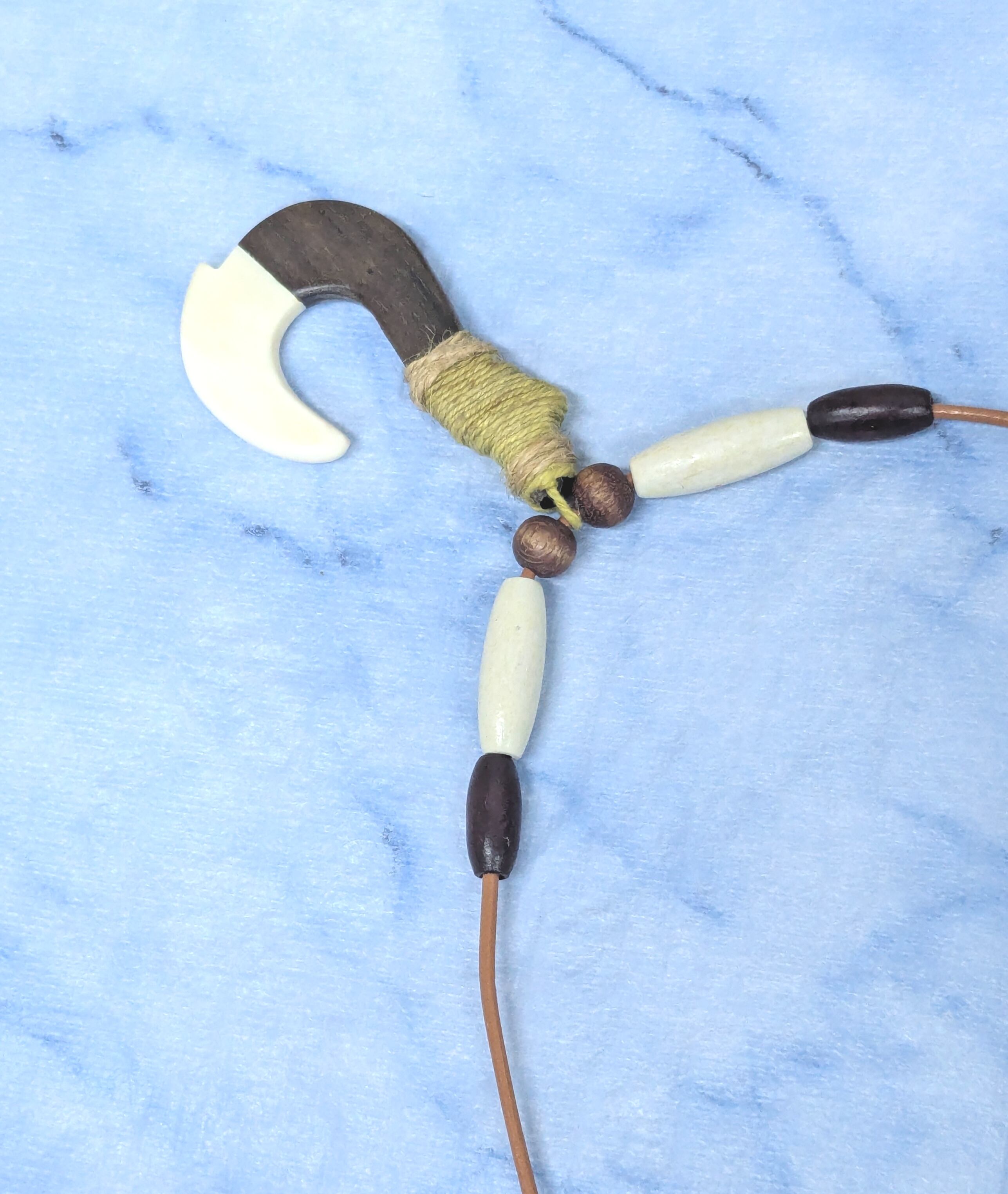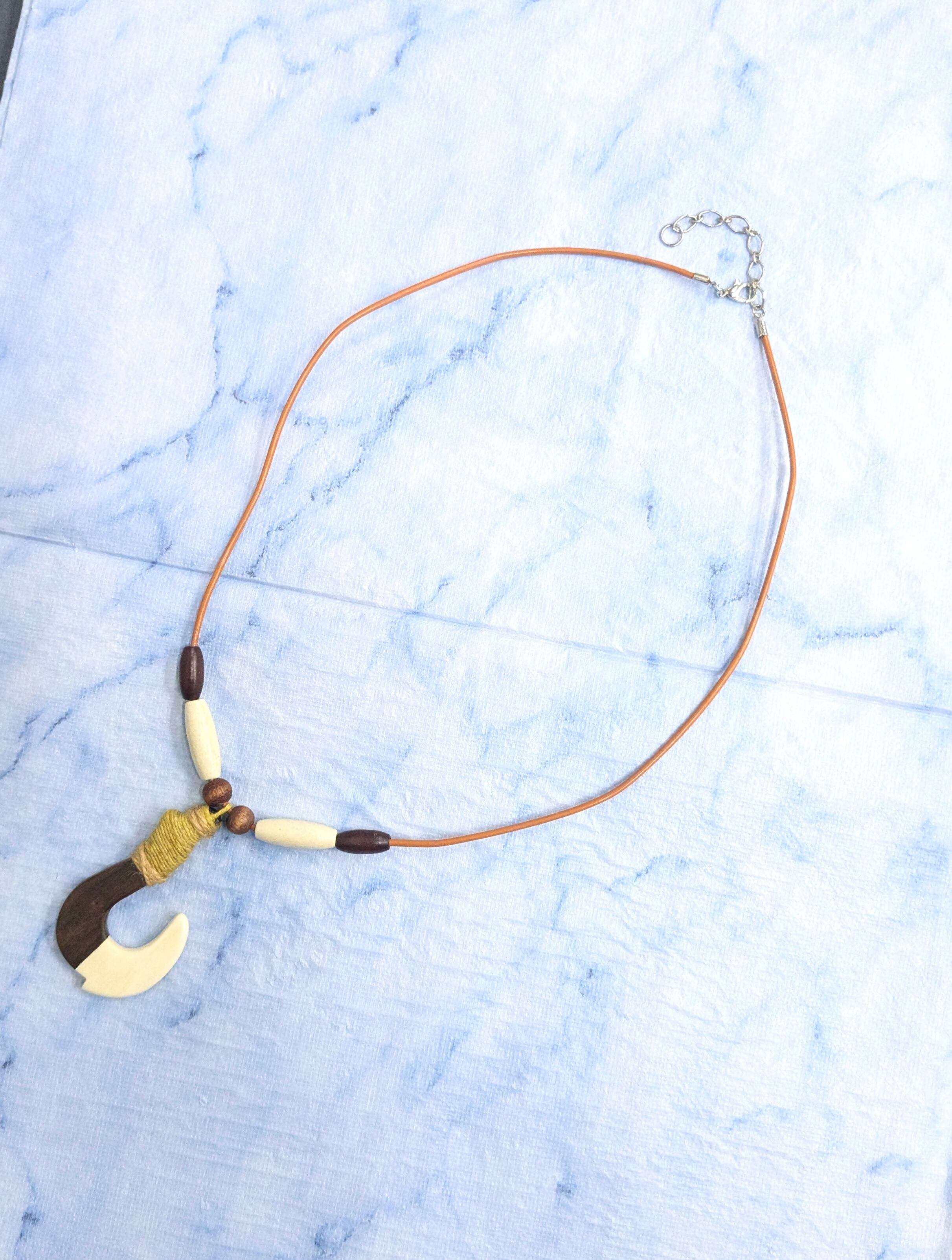 ハワイアンネックレス ハワイアンウッド & ホワイトボーン フィッシュフック F-137