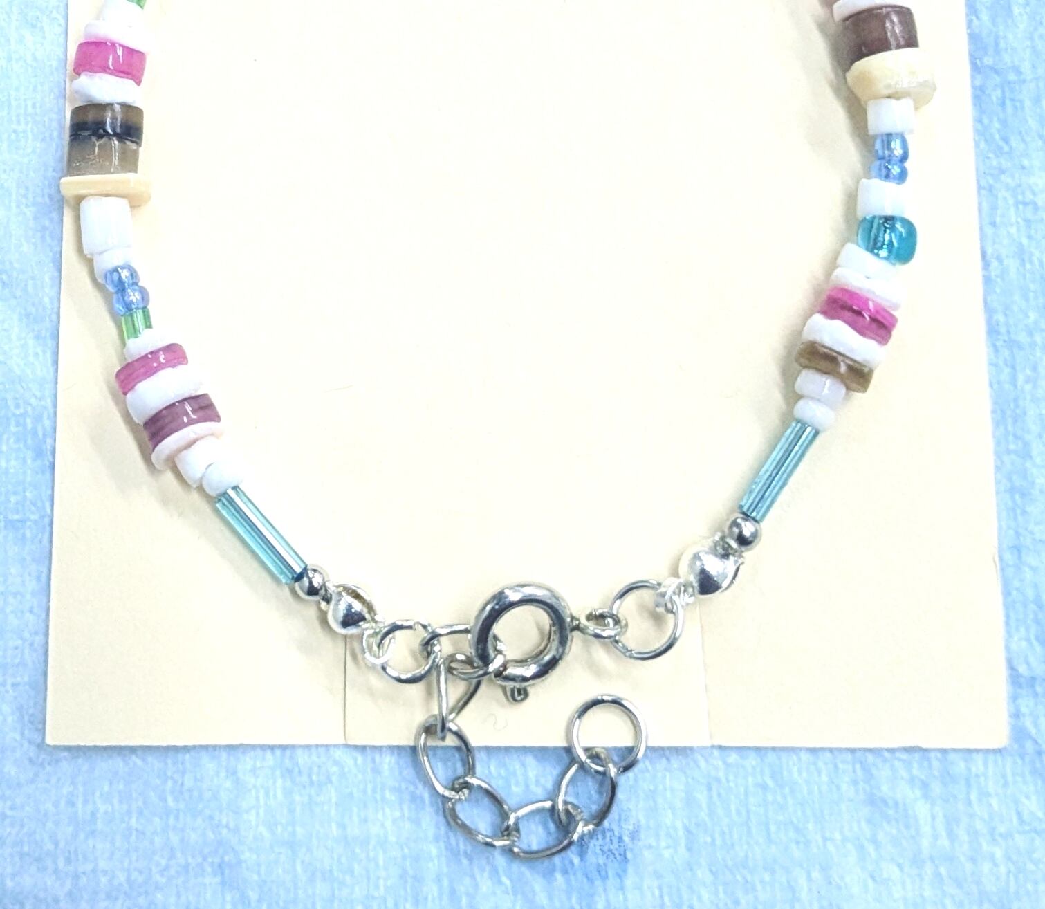 ハワイアンデザインブレス ホワイトカラーシェル ホヌ & カラービーズ R-439